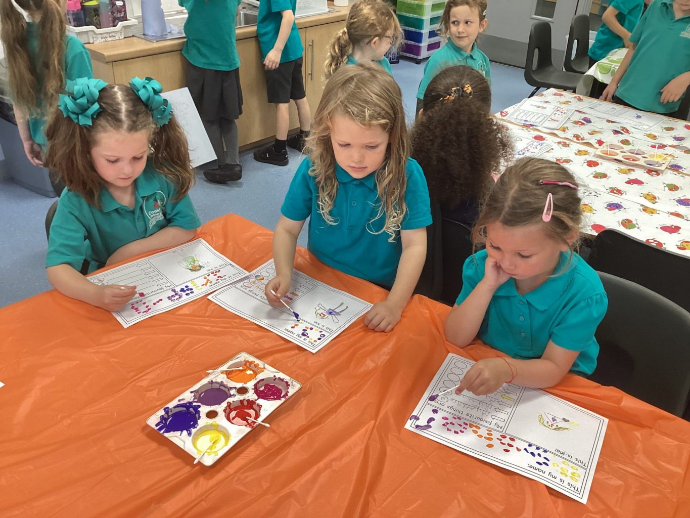 We have had a great first day in Class two. We have been learning things about each other, like our favourite colours, sports, foods etc… We have had fun painting our names, making book marks, some phonics and handwriting along with plenty of time exploring the classroom and playing together. We can’t wait for tomorrow!