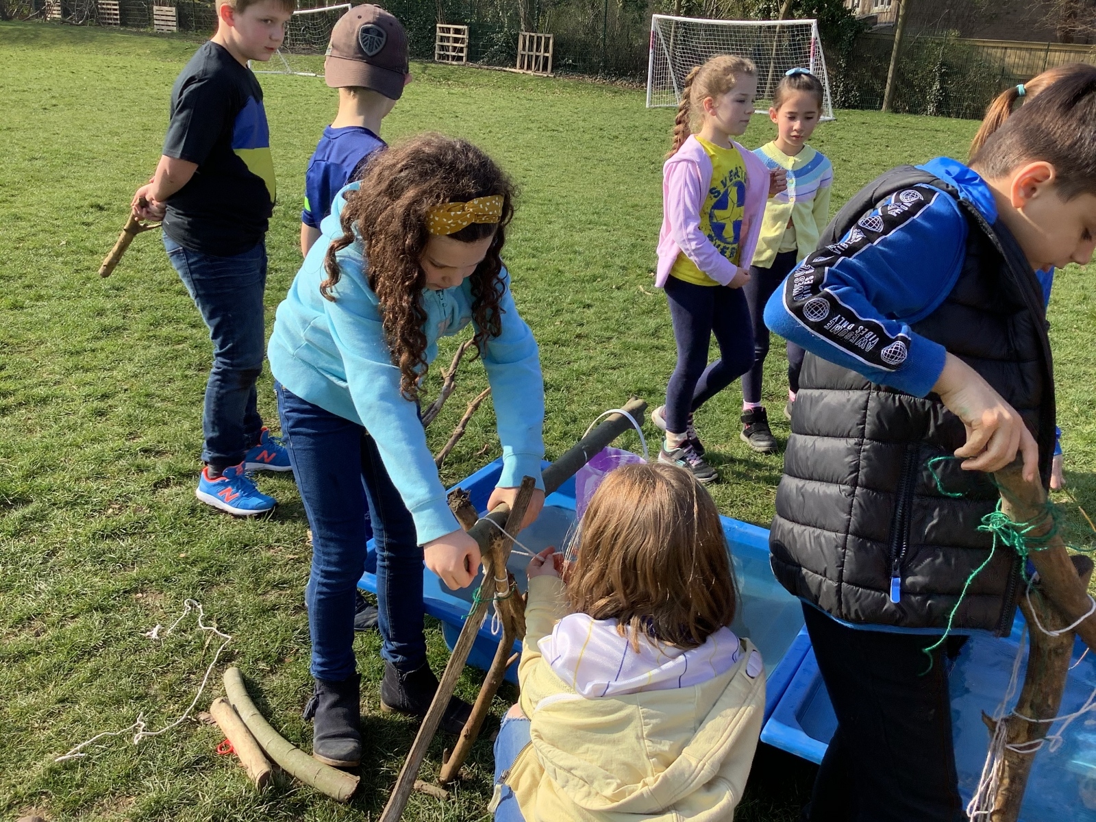 Following on from our history lesson on Ancient Egyptian farming and learning all about irrigation systems and land use, we had to create our very own shadufs. These are hand operated devices used for lifting water out of a well or reservoir. It was invented by the Ancient Egyptians and is still used today, in Egypt, India and other countries. The device is extremely efficient and easy to use and it’s estimated that it can easily, and with little effort, lift more than 2,500 litres per day. The shaduf (or shadoof) consisted of a long wooden pole balanced on a beam. The pole had a bucket attached by a rope to one end and a heavy weight acting as a counterweight on the other end. We thoroughly enjoyed cutting wood to size, using string to tie it together and operating the device to lift water out of the River Nile.
