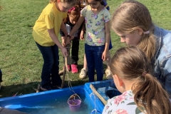 Following on from our history lesson on Ancient Egyptian farming and learning all about irrigation systems and land use, we had to create our very own shadufs. These are hand operated devices used for lifting water out of a well or reservoir. It was invented by the Ancient Egyptians and is still used today, in Egypt, India and other countries. The device is extremely efficient and easy to use and it’s estimated that it can easily, and with little effort, lift more than 2,500 litres per day. The shaduf (or shadoof) consisted of a long wooden pole balanced on a beam. The pole had a bucket attached by a rope to one end and a heavy weight acting as a counterweight on the other end. We thoroughly enjoyed cutting wood to size, using string to tie it together and operating the device to lift water out of the River Nile.