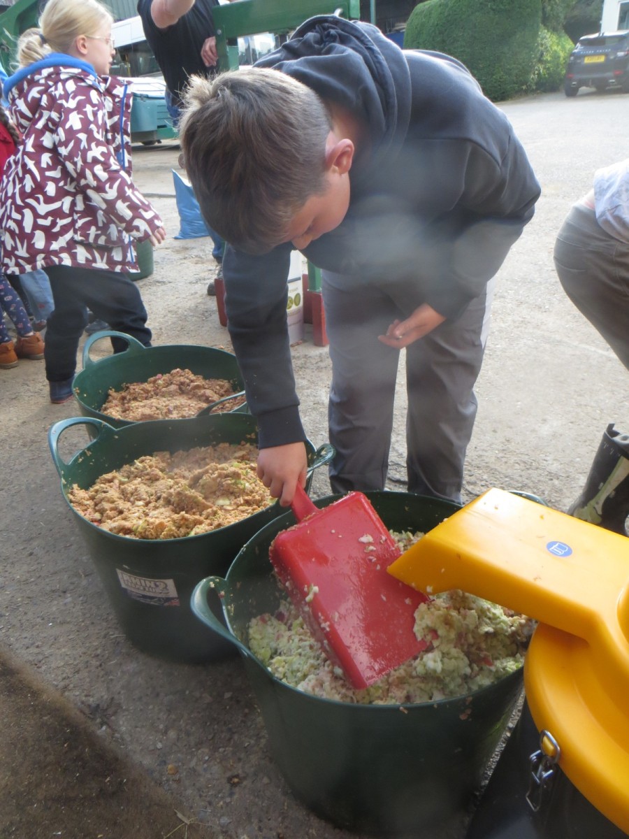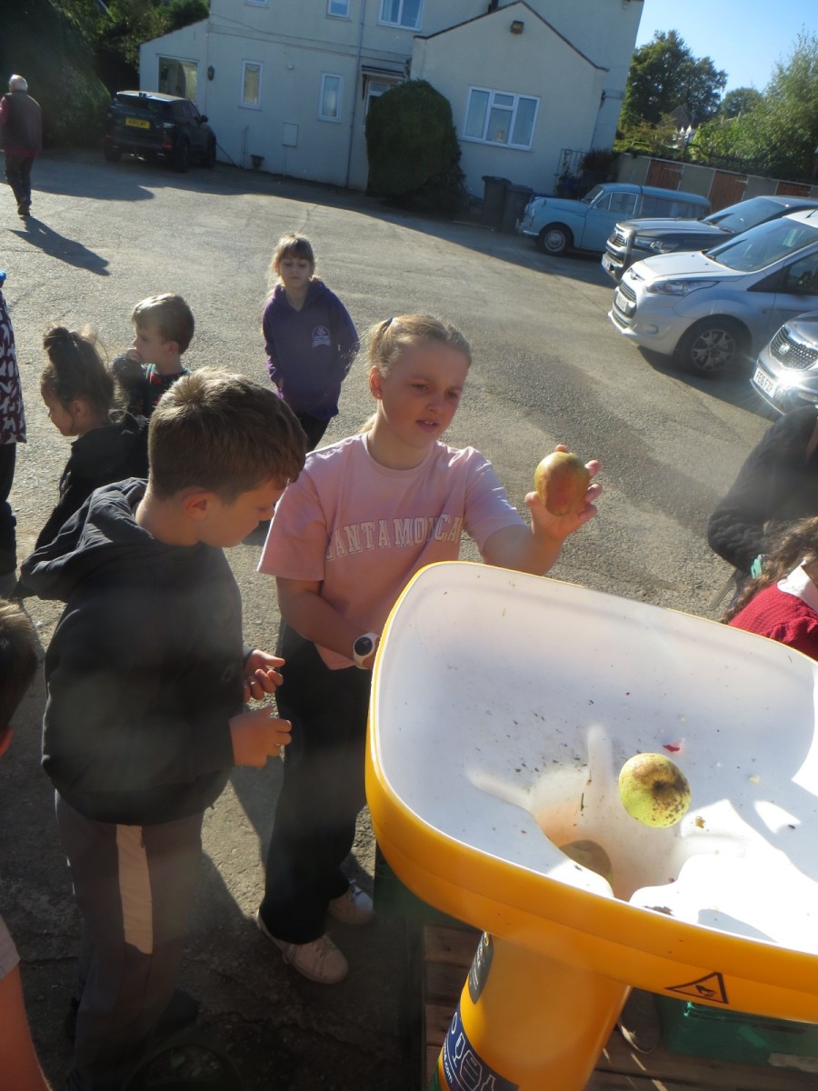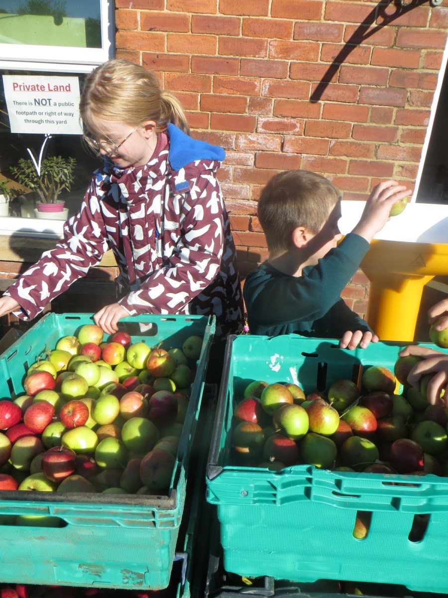 Last week, pupils from Wellbeing Wednesday Forest School visited Lilac Farm in Collingham to mill and press the amazing amount of fruit harvested from our fruit trees here at school alongside the generous donations of apples and pears from parents. The juice has now been pasteurised, bottled and collected and will be available for sale on the main playground at home time on Thursday 2nd October for £3.50 per 750ml bottle. Cash or card payments accepted. The children have been working hard today to design labels, create this webpost and posters to advertise their produce. There are 104 bottles and first come, first served – when it’s gone, it’s gone!