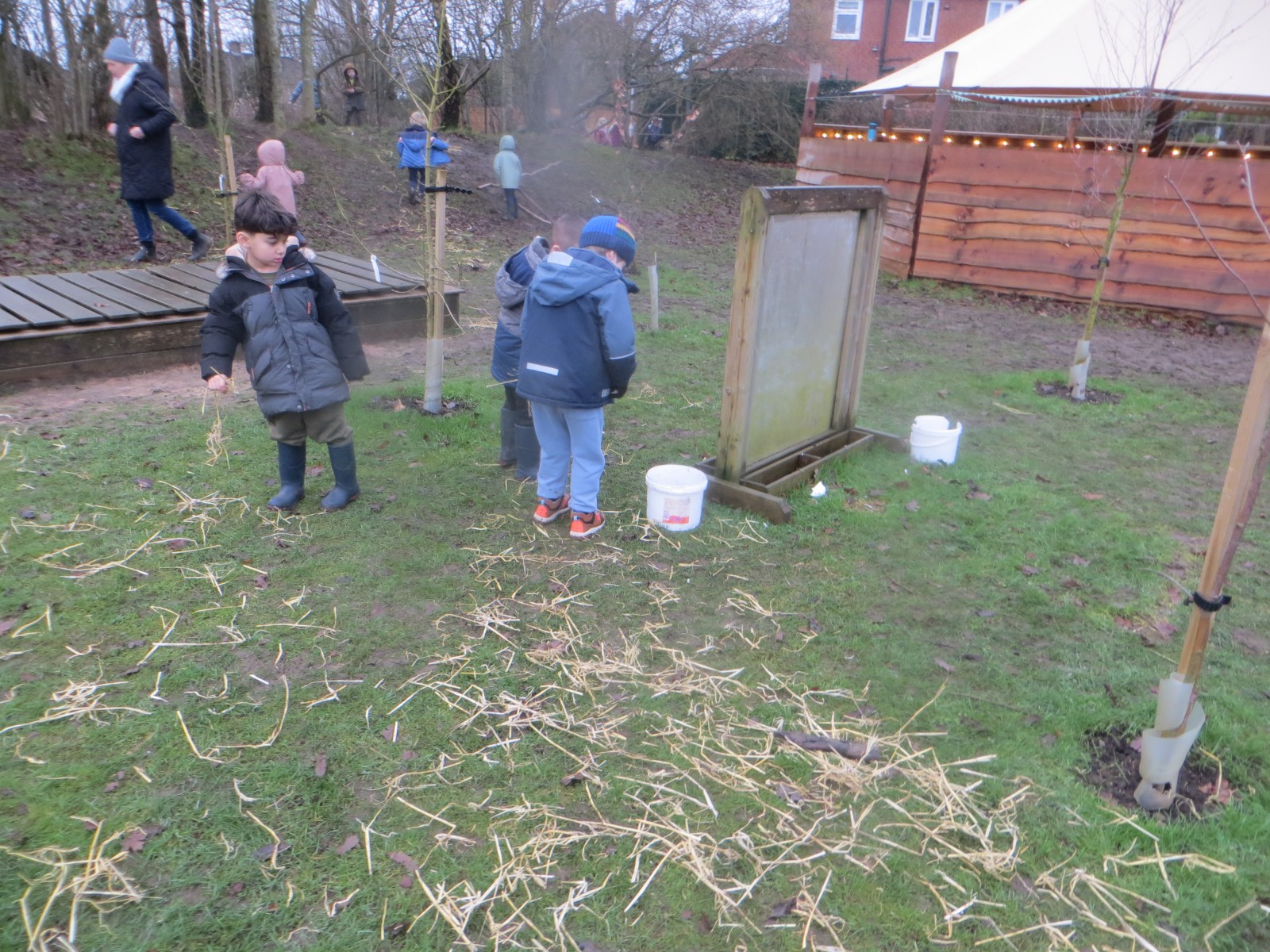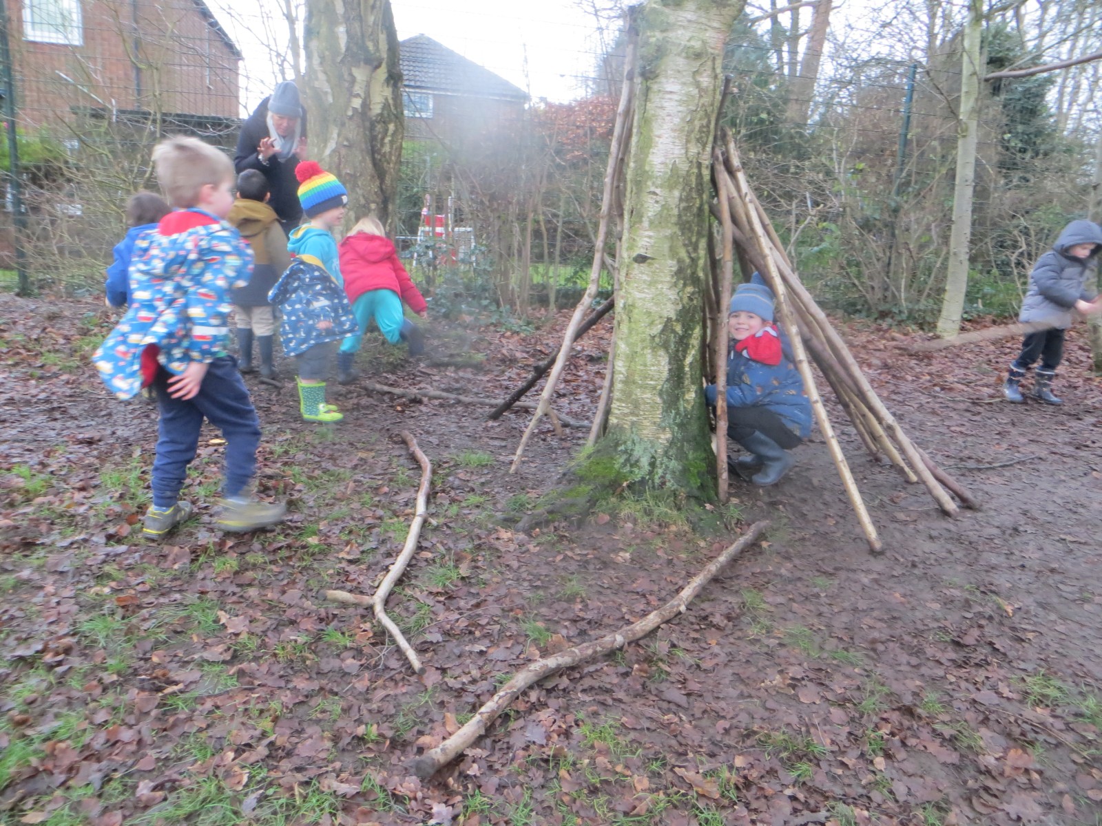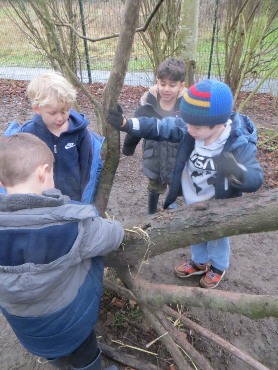 In their Forest School sessions today pupils in Reception listened to the story of the Three Little Pigs. Afterwards, they discussed the houses the pigs had made and what they had done well and what they didn’t! Children then organised themselves into teams, were given a toy pig and challenged to build a better house than those we had just read about in the book using natural resources. Once complete, the Big Bad Wolf came to visit and tried to blow the houses down with not much success – well done on some fantastic structures Reception! To finish, we played some games of What Time is it Mr Wolf, with the pupils being pigs trying to sneak up on the wolf to steal back some their belongings! What a fantastic morning we’ve had.