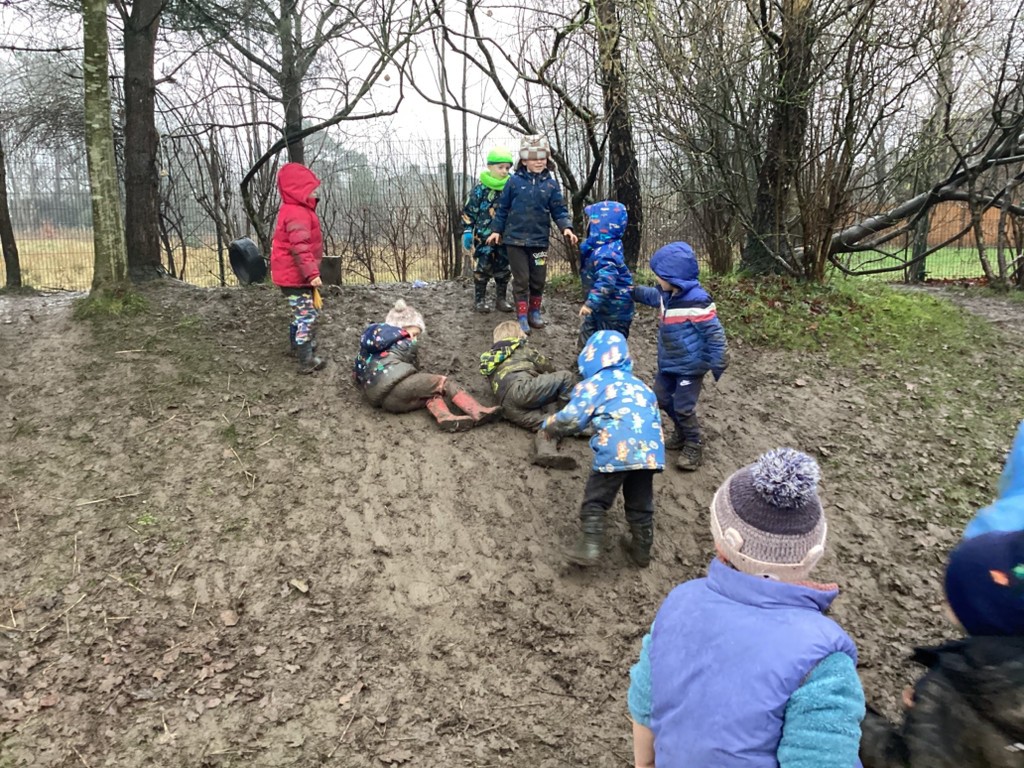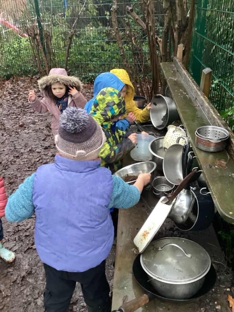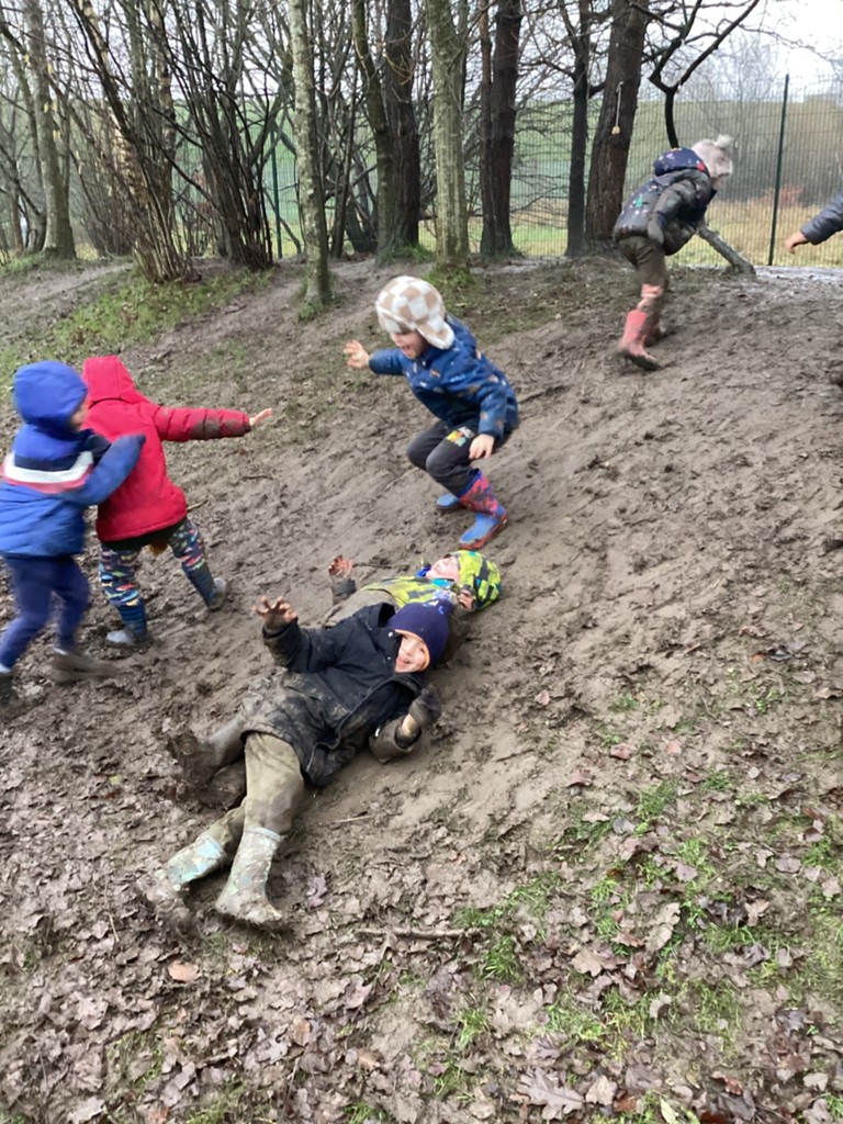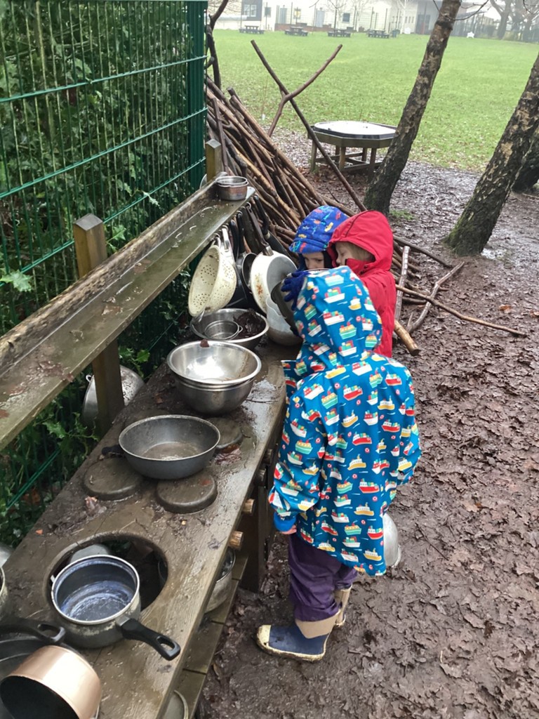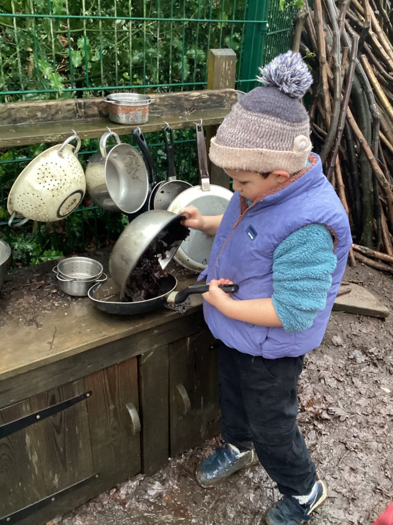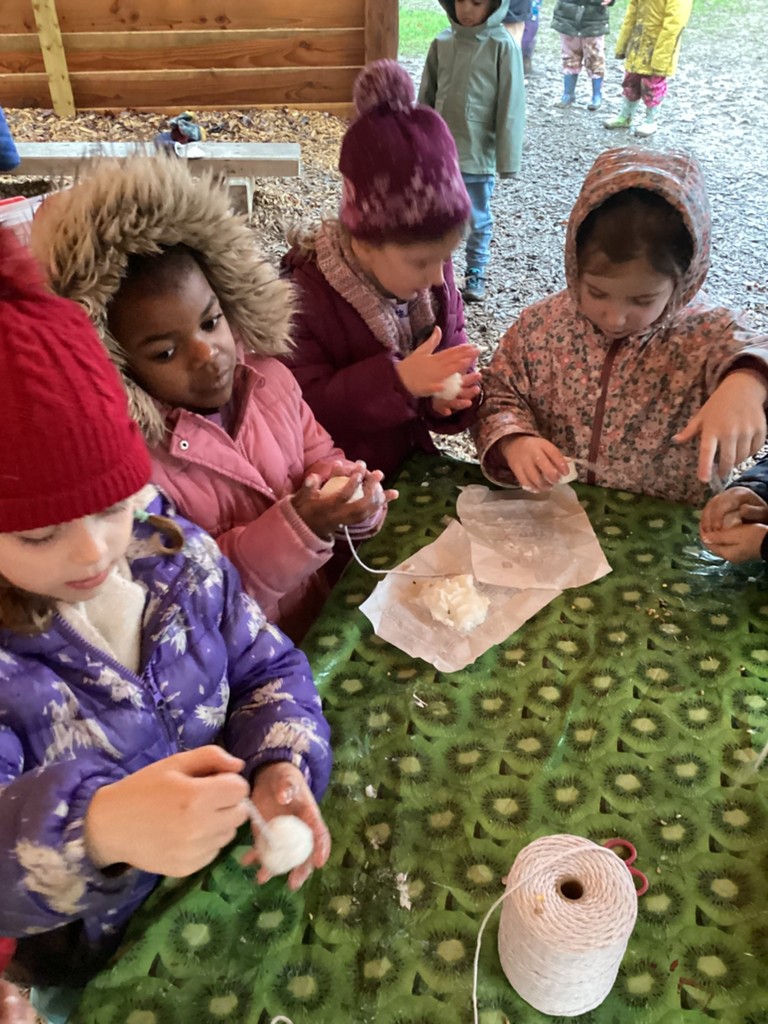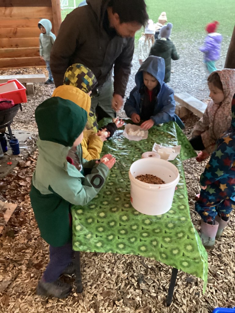 This weekend, it is the RSPB’s Big Garden Birdwatch so we have enjoyed a number of activities around birds today in our Forest School session. Lots of the children took to the challenge of completing bird pictures using paint mixed from the charcoal in our own firepit! We discussed how birds can struggle in the winter as there is less natural food for them to eat and how important it is to feed birds in gardens to help supplement their diet and help them survive the winter. Pupils then led their own learning by choosing to make bird fat balls using lard and bird seeds with string attached to hang them from trees to feed our feathered friends we have around the school site an energy boosting snack. Children also made nests using loose parts to keep our Forest School eggs safe, warm and dry. Pupils also explored other areas of our Forest School provision including the mud kitchen and the numerous large puddles which have appeared due to the heavy rain! It was so slippy and wet children created a mud slide which provided endless amounts of fun, teamwork and determination trying to make it up or down the mud bank without falling over! Sorry parents! Eventually driven back indoors, we took to some avian activities of a warmer and drier kind! The children chose to hone their colouring skills with some bird drawings as well as watching a live feed of a bird feeder where we spotted a number of different species of birds.