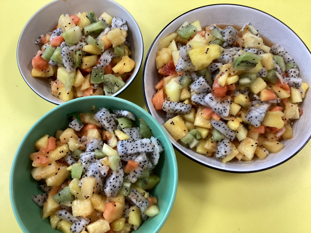 - Tropical fruit salad with a basil and lime dressing – a dish from Thailand