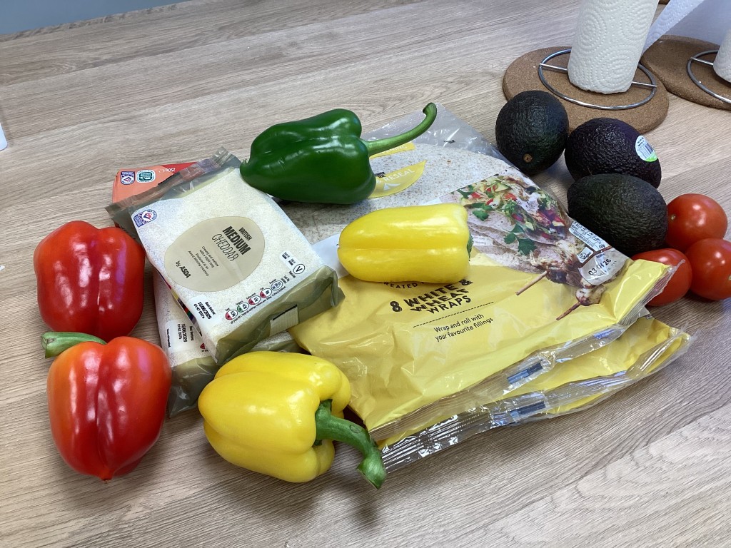 The red kitchen team were representing the continent of Europe with the Greek dip tsatsiki, which we served with some pita breads for dunking. The blue kitchen made some butter bean patties akin to falafel filled with traditional North African herbs and spices. The purple kitchen put together some Mexican inspired quesadillas. And the green kitchen peeled and chopped a selection of exotic fruits to produce a Thai-inspired fruit salad.