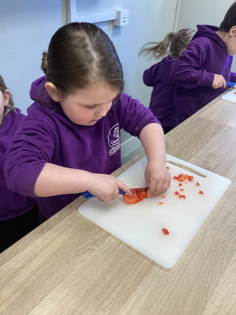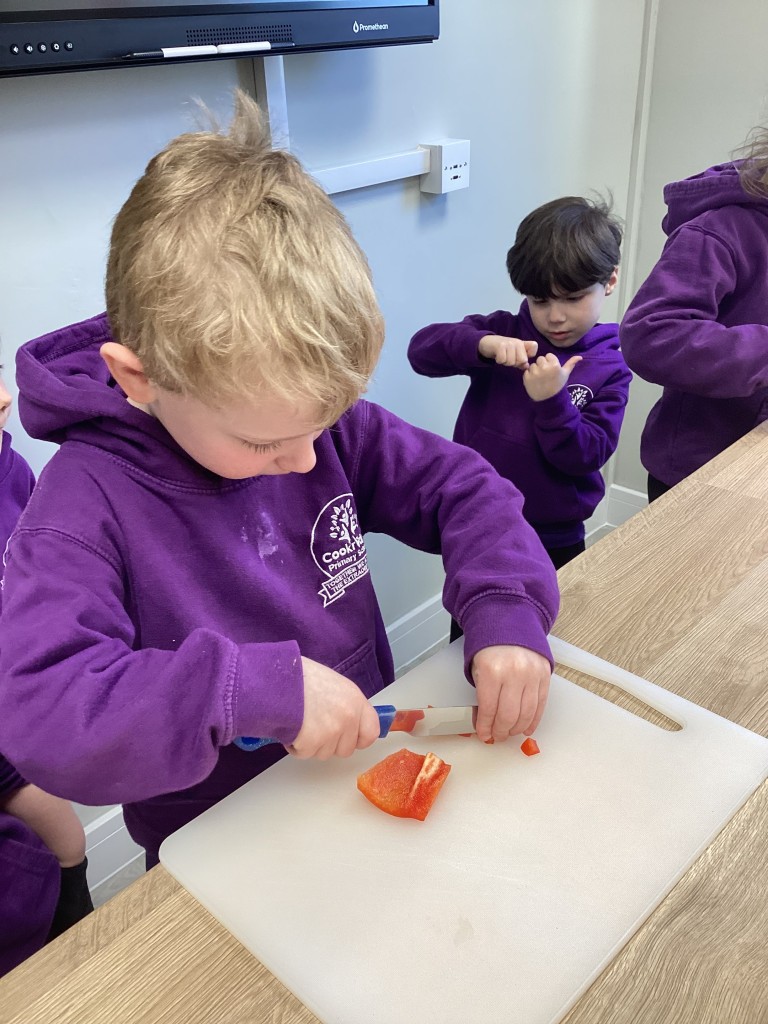 On Thursday, as a fun way to end our Around The World topic, we have held our Foods Around the World celebration event. The children have loved getting to know all about the world we live in, and so we thought it would be nice to try making some different foods from countries around the world. To do this we split into four kitchens, with each producing their own dish to share with the class and all our family members. The children all began by washing their hands thoroughly and rolling up their sleeves to begin the peeling, chopping and mixing needed for their chosen foods. Well done to all our mini-chefs!