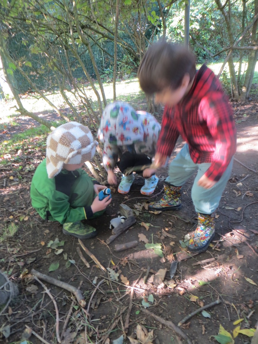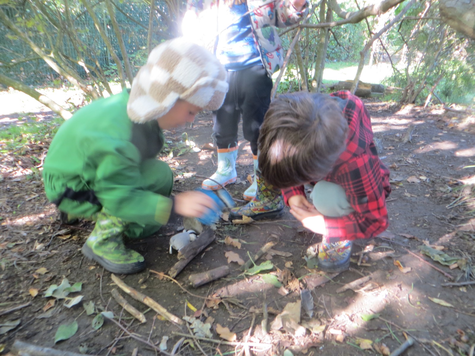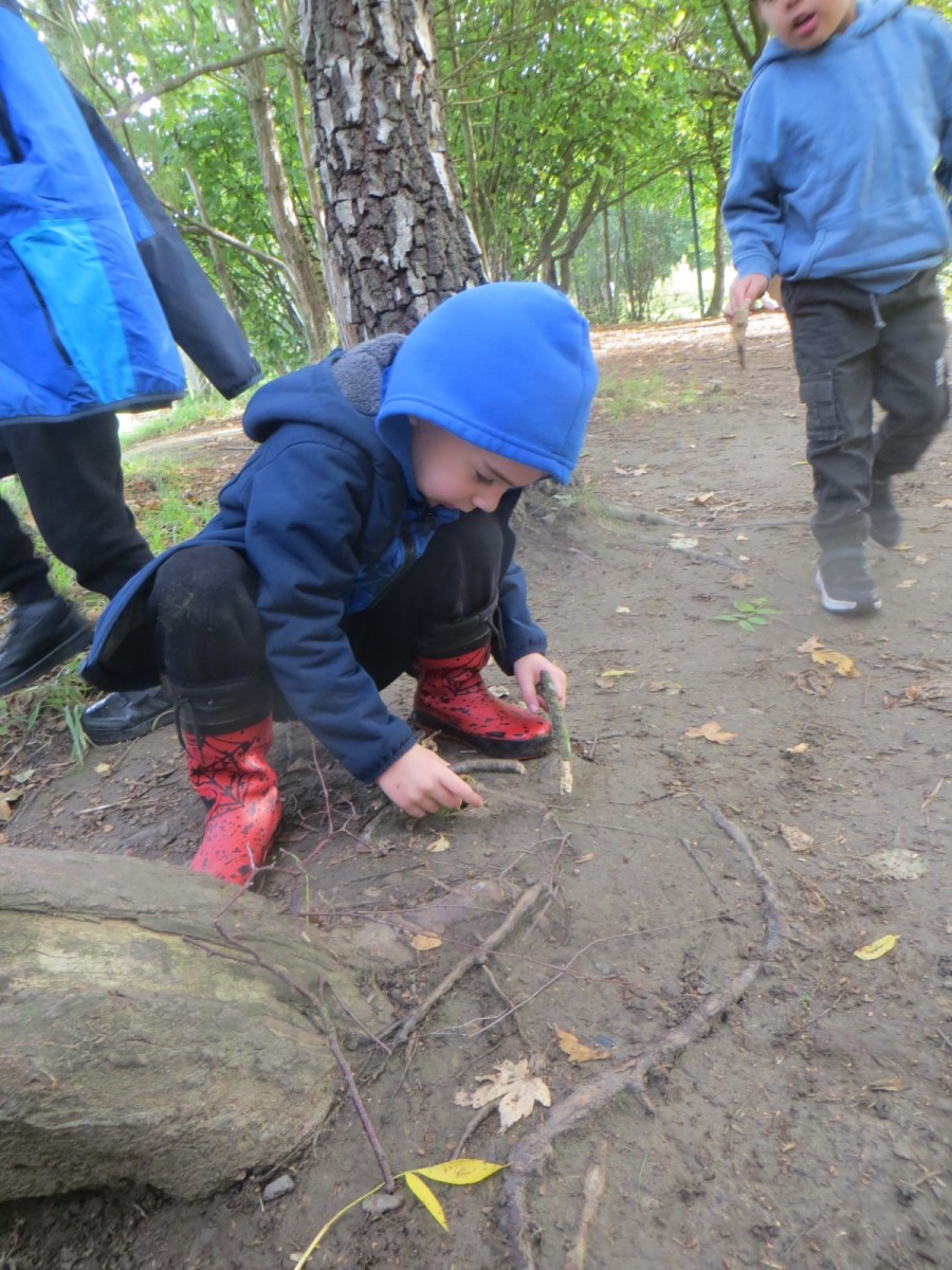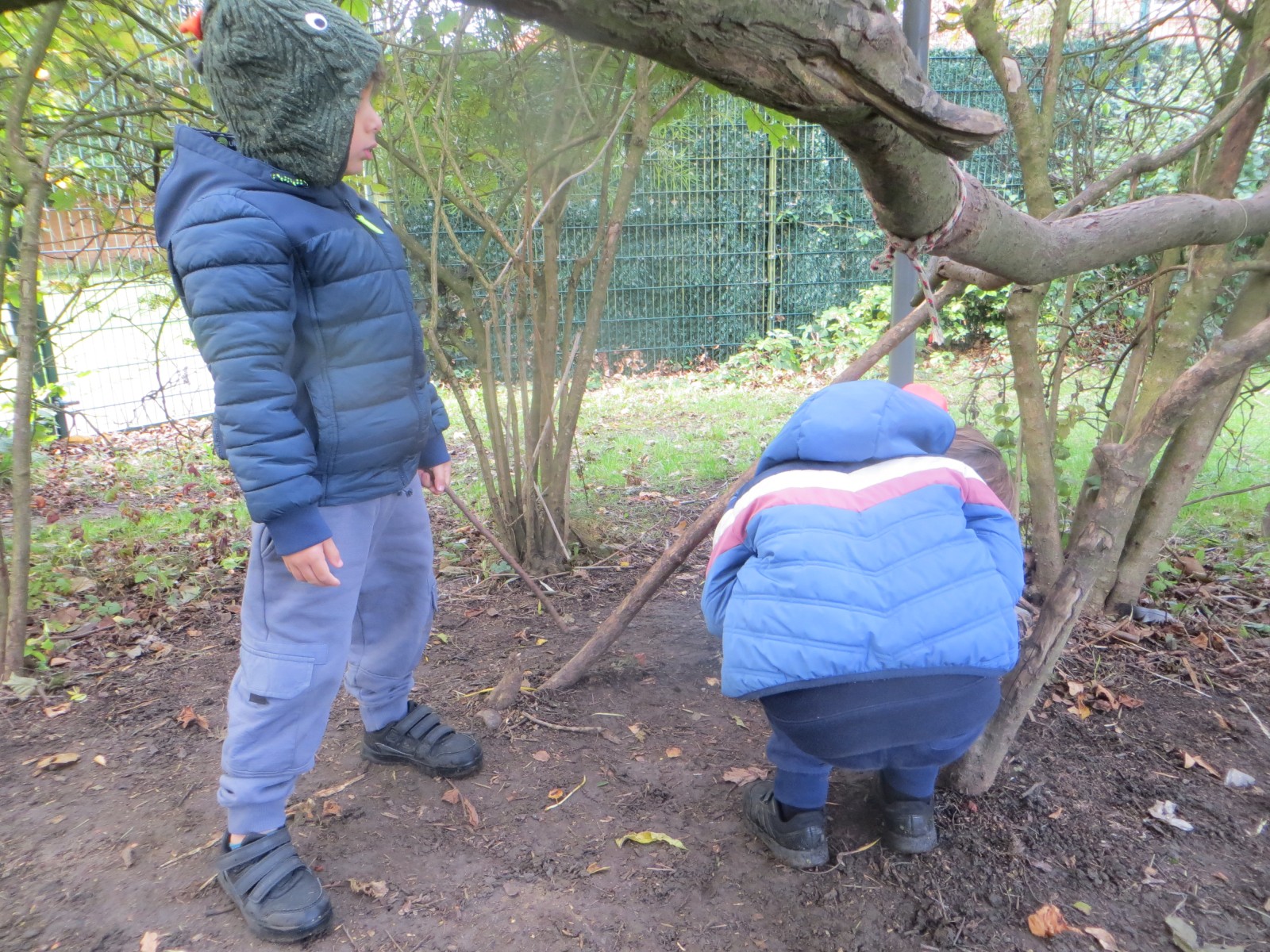This morning in Forest School we began our session by reading ‘The Cave’ by Rob Hodgson. The book is about a creature who lives in a cave but never comes out because of a wolf but there is an exciting twist and surprise in the tale! After reading and discussing the book, the children were set a task of creating a cave for an animal puppet. Children chose their animal, a sensible place to build the cave and used natural resources to create a safe home. For their next challenge, pupils were asked to include items inside the cave, such as a bed and food for the animals.