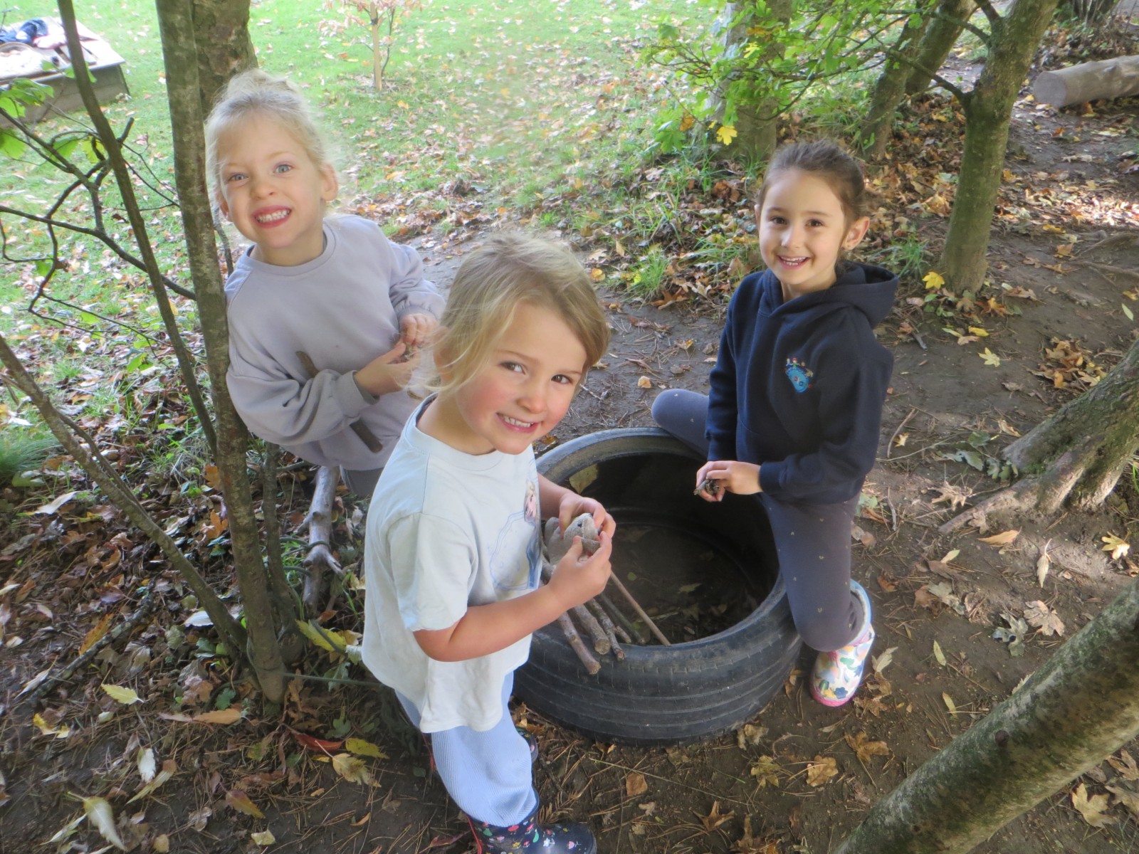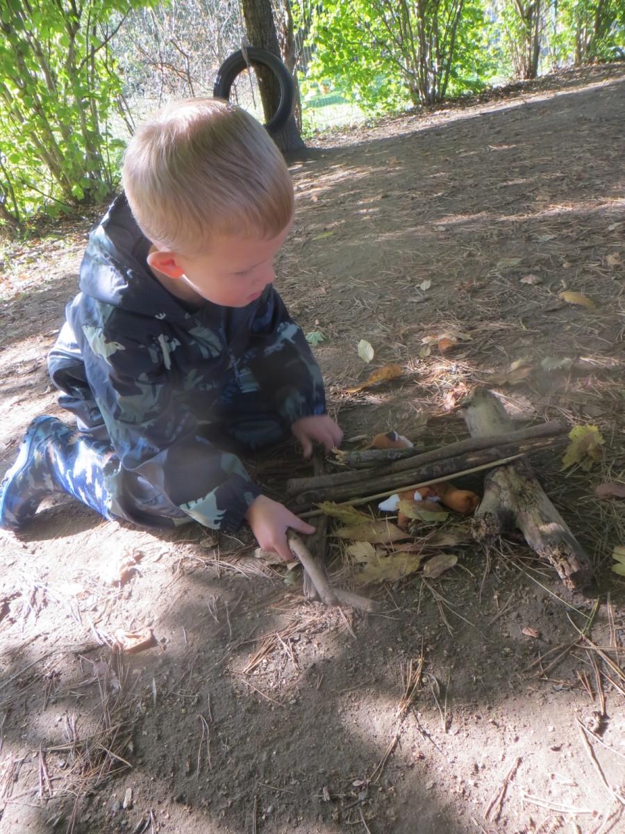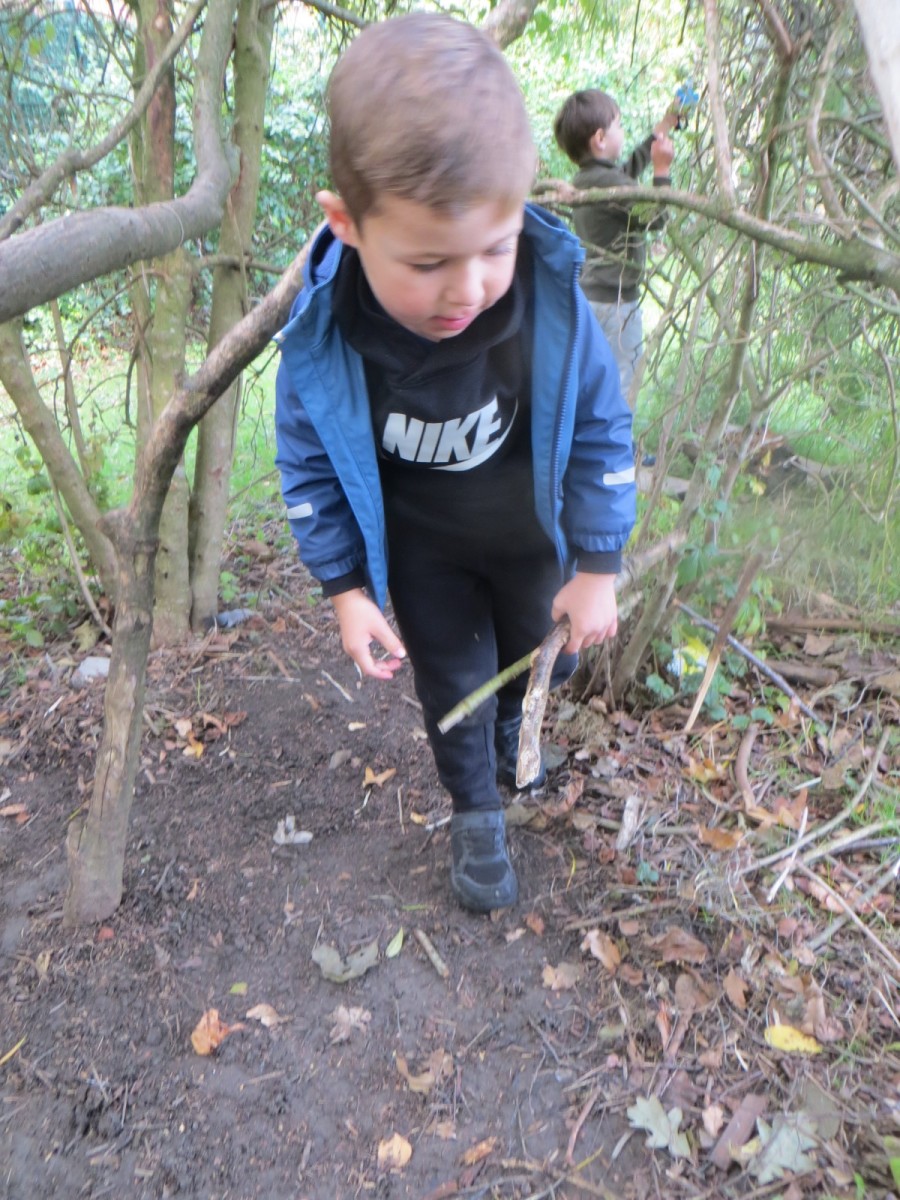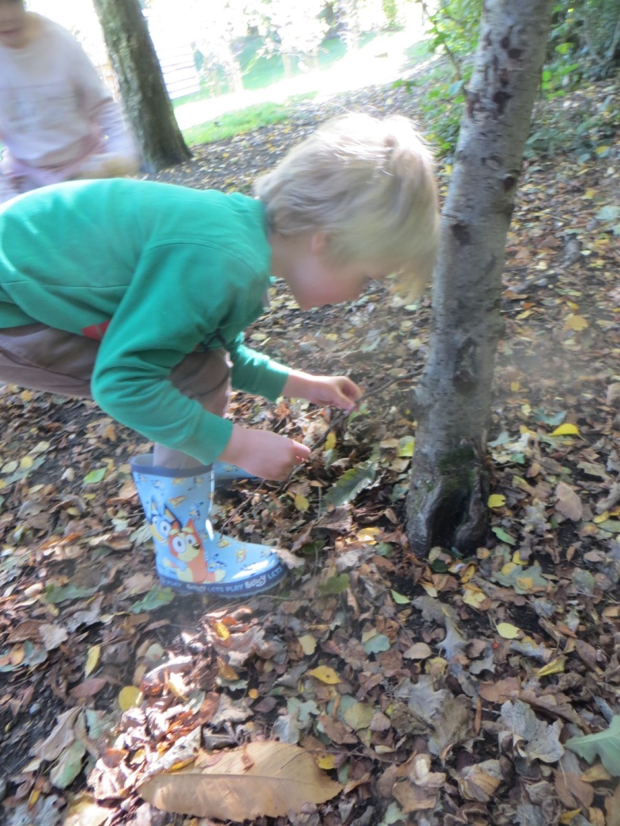 This morning in Forest School we began our session by reading ‘The Cave’ by Rob Hodgson. The book is about a creature who lives in a cave but never comes out because of a wolf but there is an exciting twist and surprise in the tale! After reading and discussing the book, the children were set a task of creating a cave for an animal puppet. Children chose their animal, a sensible place to build the cave and used natural resources to create a safe home. For their next challenge, pupils were asked to include items inside the cave, such as a bed and food for the animals.