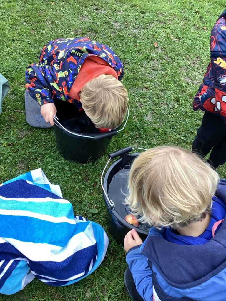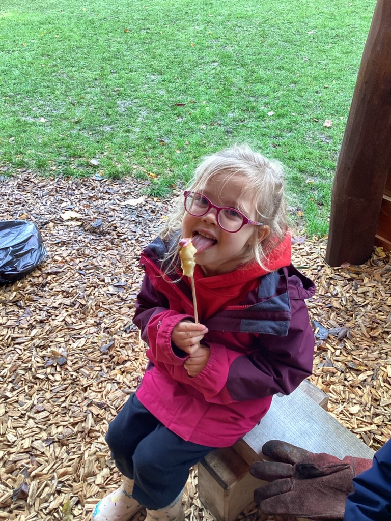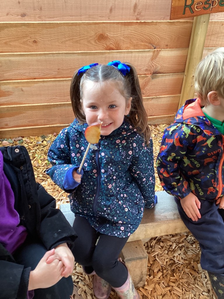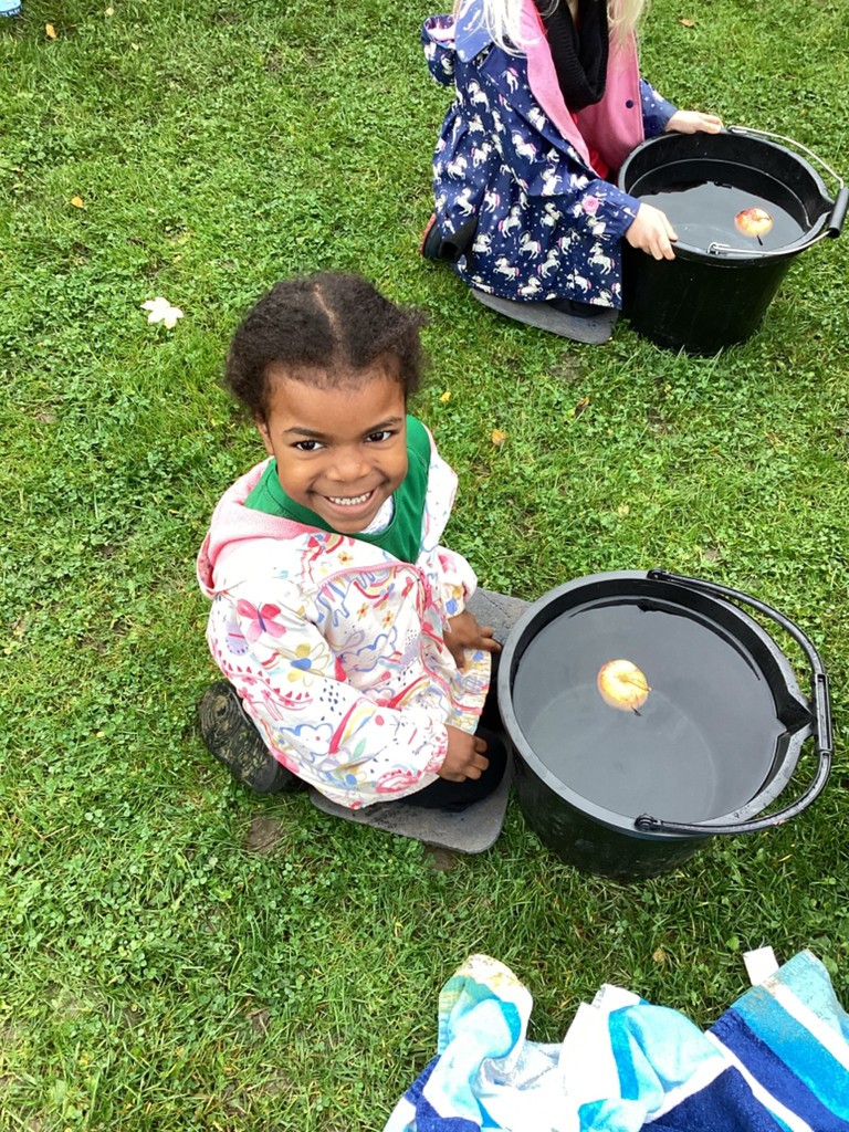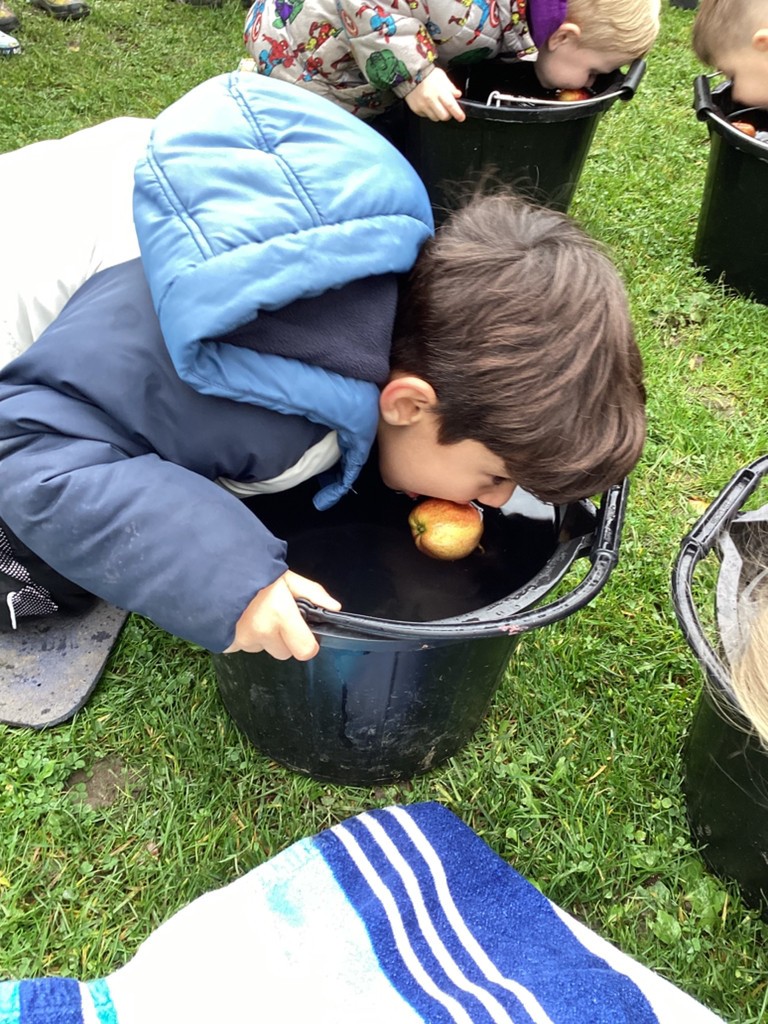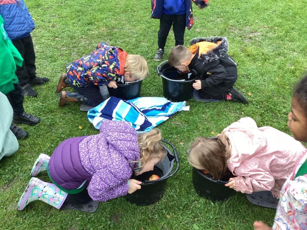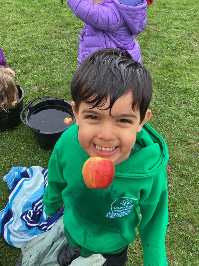 What a fun morning we’ve had at Forest School in Reception! To round off our school’s celebrations on harvest and National Apple Day (held annually on 21st October), children in EYFS had apple themed activities to take part in outside. First of all, children took turns in playing a traditional autumn game – bobbing for apples! After listening carefully to the rules and how to play, children took turns in playing against each other – and the teachers – to grab the apple the quickest. We had so much fun and learnt that taking part is the most important element in games! In the canopy, children helped Mr Gamble and Mr Verdi light and maintain a fire as well as cutting up apples to roast over the fire using skewers. All of the pupils were super sensible and safe around the fire and enjoyed a delicious roasted apple snack. Finally, children also had the chance to show off their amazing teamwork by constructing dens using our den building sticks. They communicated, problem solved and listened well to each to create some wonderful structures. Well done EYFS!