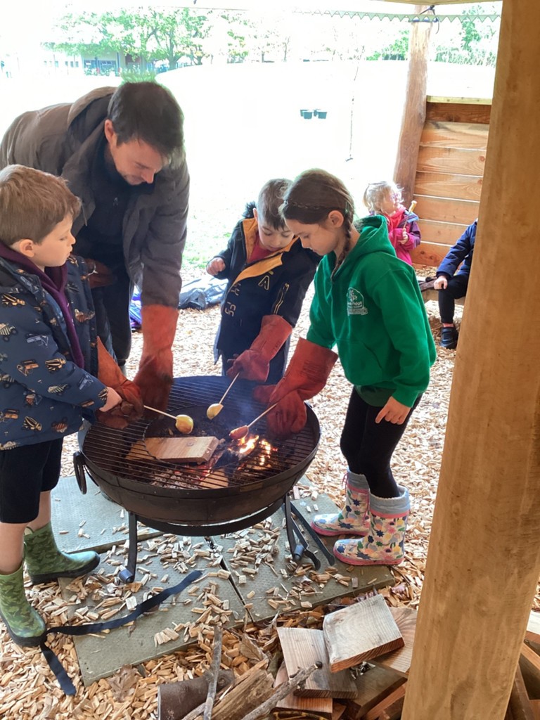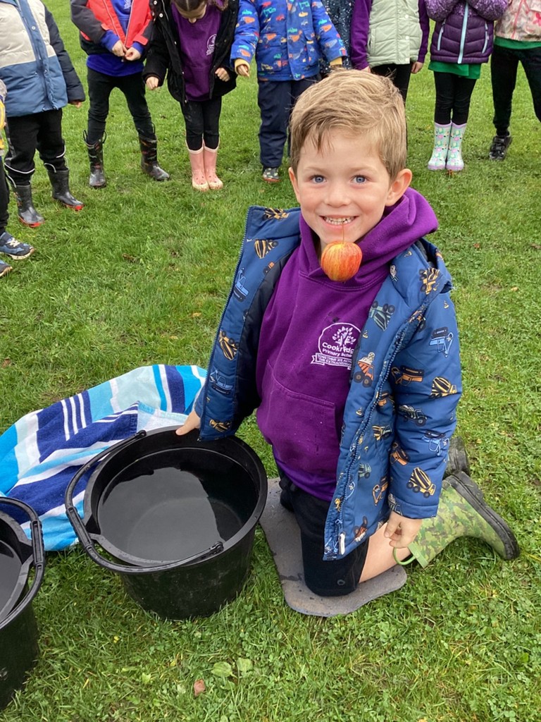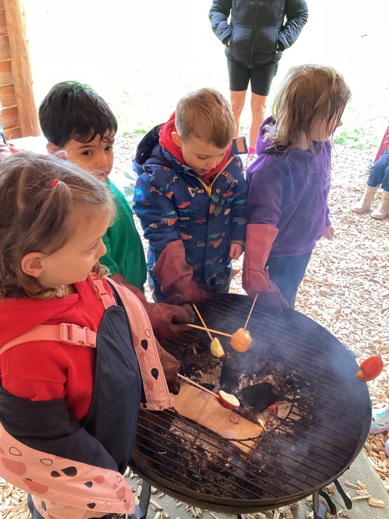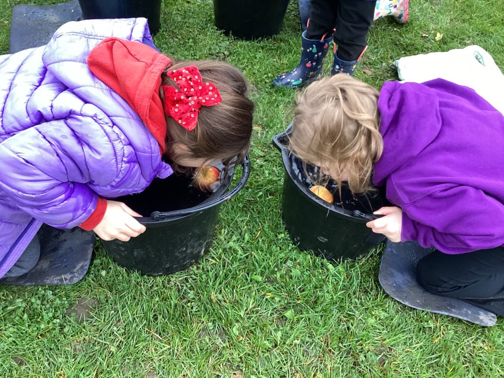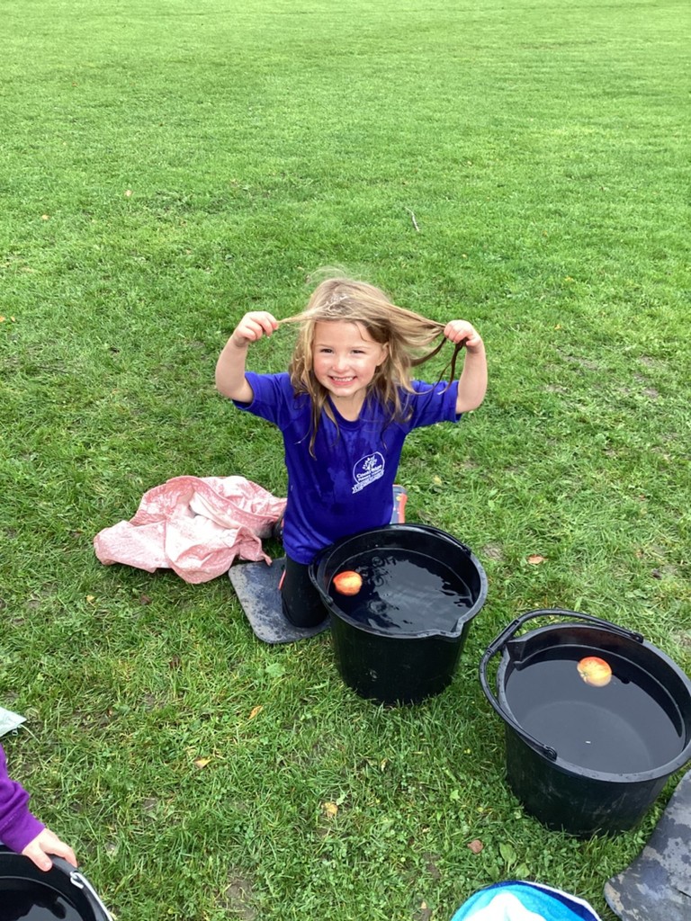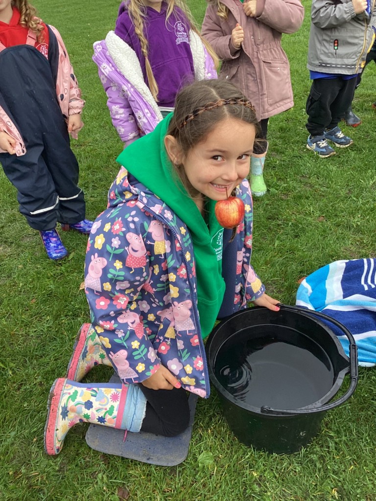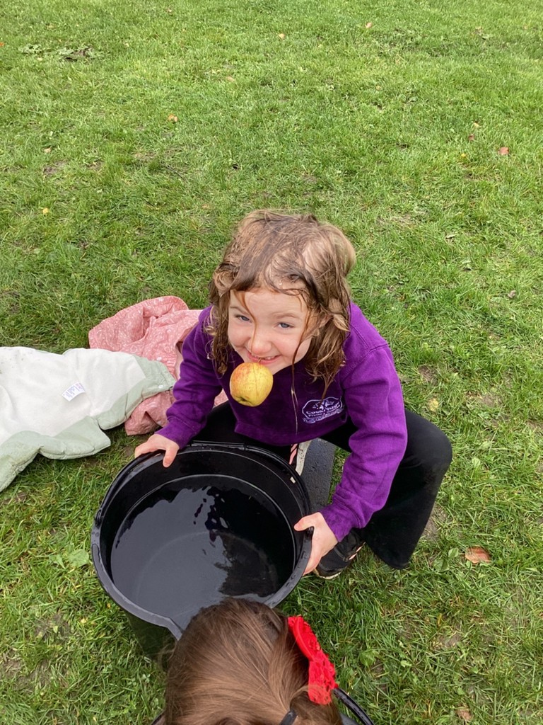 What a fun morning we’ve had at Forest School in Reception! To round off our school’s celebrations on harvest and National Apple Day (held annually on 21st October), children in EYFS had apple themed activities to take part in outside. First of all, children took turns in playing a traditional autumn game – bobbing for apples! After listening carefully to the rules and how to play, children took turns in playing against each other – and the teachers – to grab the apple the quickest. We had so much fun and learnt that taking part is the most important element in games! In the canopy, children helped Mr Gamble and Mr Verdi light and maintain a fire as well as cutting up apples to roast over the fire using skewers. All of the pupils were super sensible and safe around the fire and enjoyed a delicious roasted apple snack. Finally, children also had the chance to show off their amazing teamwork by constructing dens using our den building sticks. They communicated, problem solved and listened well to each to create some wonderful structures. Well done EYFS!