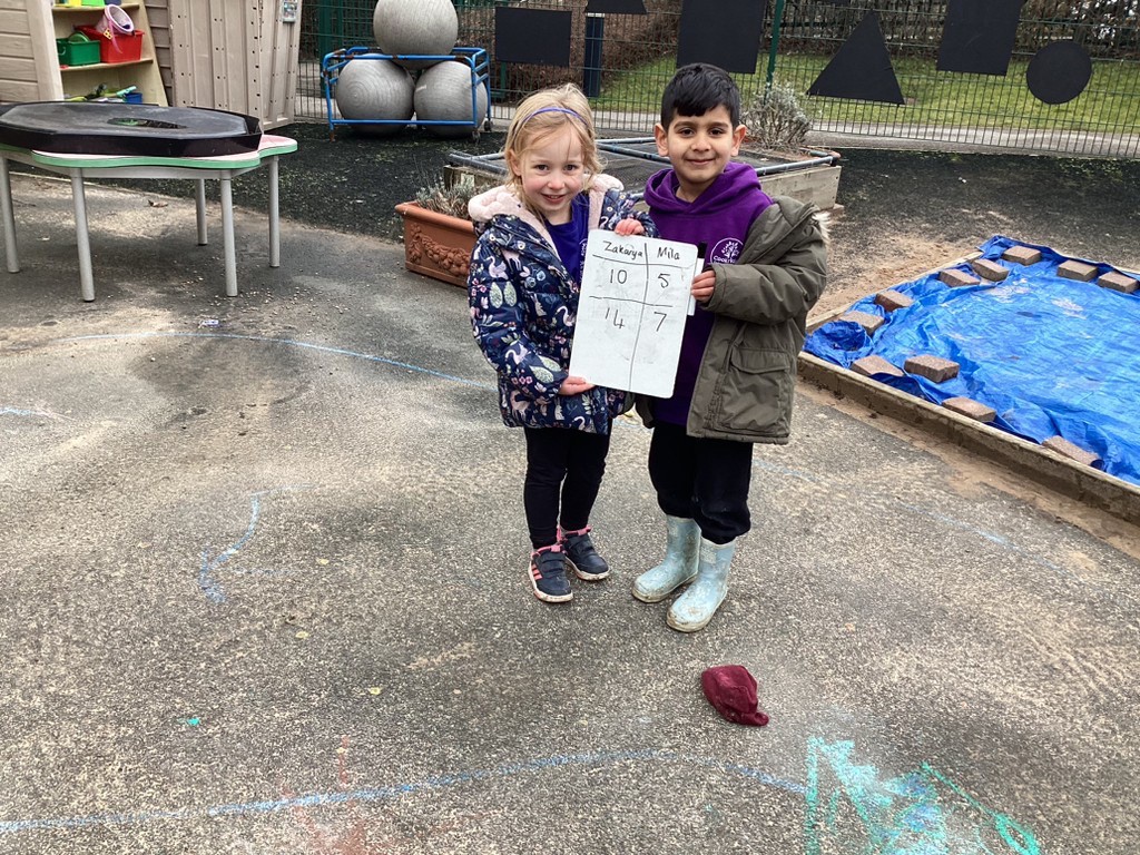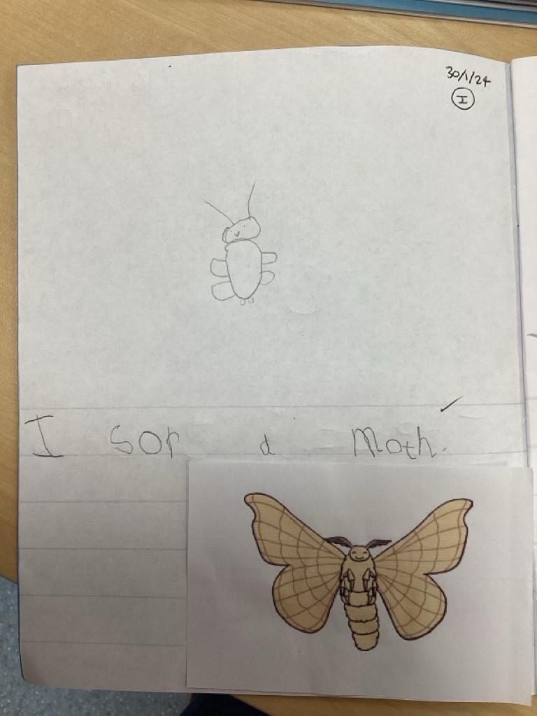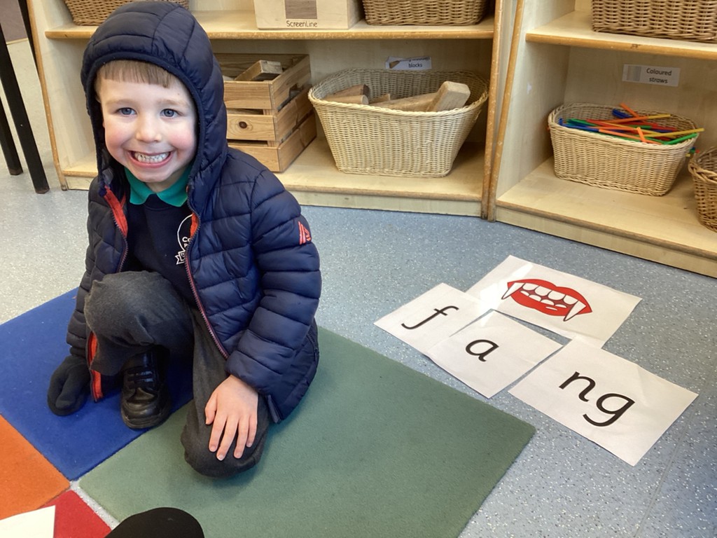 Phonics had us learning the phonemes ‘ng’ (ring) ‘th’ (feather – voiced) and ‘th’ (moth – unvoiced). The children have been going from strength to strength in their reading and writing and are beginning to show more independence in applying their phonics knowledge. To rehearse using the ‘ng’ phoneme in words and phrases we played the game that is sweeping the nation – Thing-in-a-ring! The children had to compete to throw an object into a hoop to win phonemes for their team to help them build words containing ‘ng’.