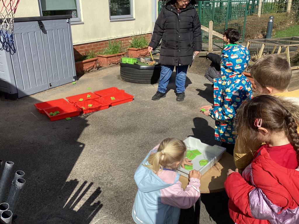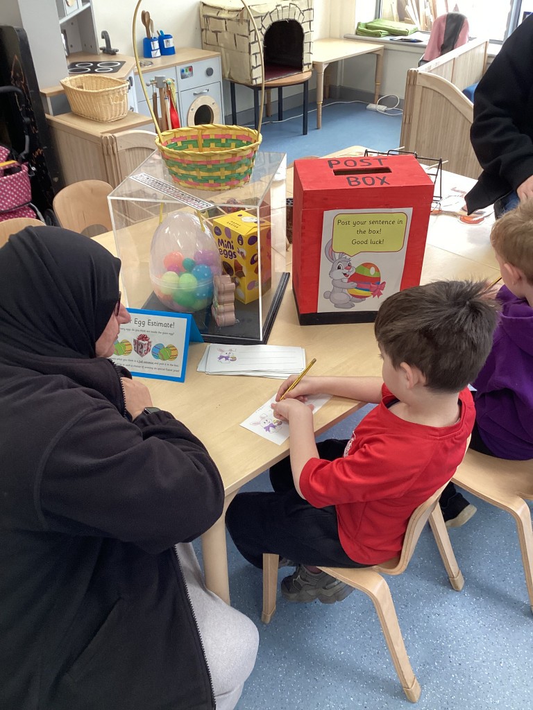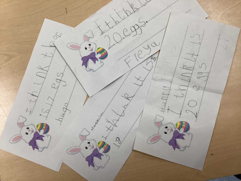 One popular challenge this week was our Easter competition. We showed the children a large transparent egg filled with smaller eggs and the children were asked to estimate how many eggs they thought were inside. If they could write their guess in a sentence (with capital letters, fingers spaces and full stop!) and then post it in the box they were in with a chance of winning an Easter Egg prize. The lucky winner will be announced in the first week back.