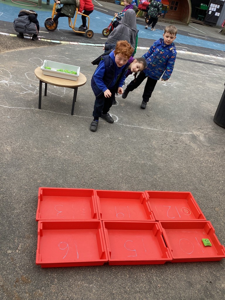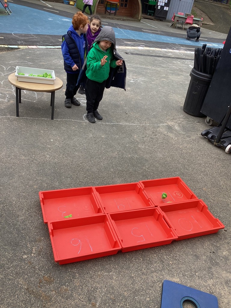 Our Maths work this week has been spent investigating two-digit numbers all the way up to 100. The children are becoming more familiar with the number system and spotting patterns of how numbers are composed of tens and ones. We have gotten to grips with these larger numbers in fun games involving working out hidden numbers on a hundred square and counting down from 30 by rolling a dice and taking cubes away from tens frames. This will all help strengthen the children’s deeper understanding of the number system and the patterns that can found within it.