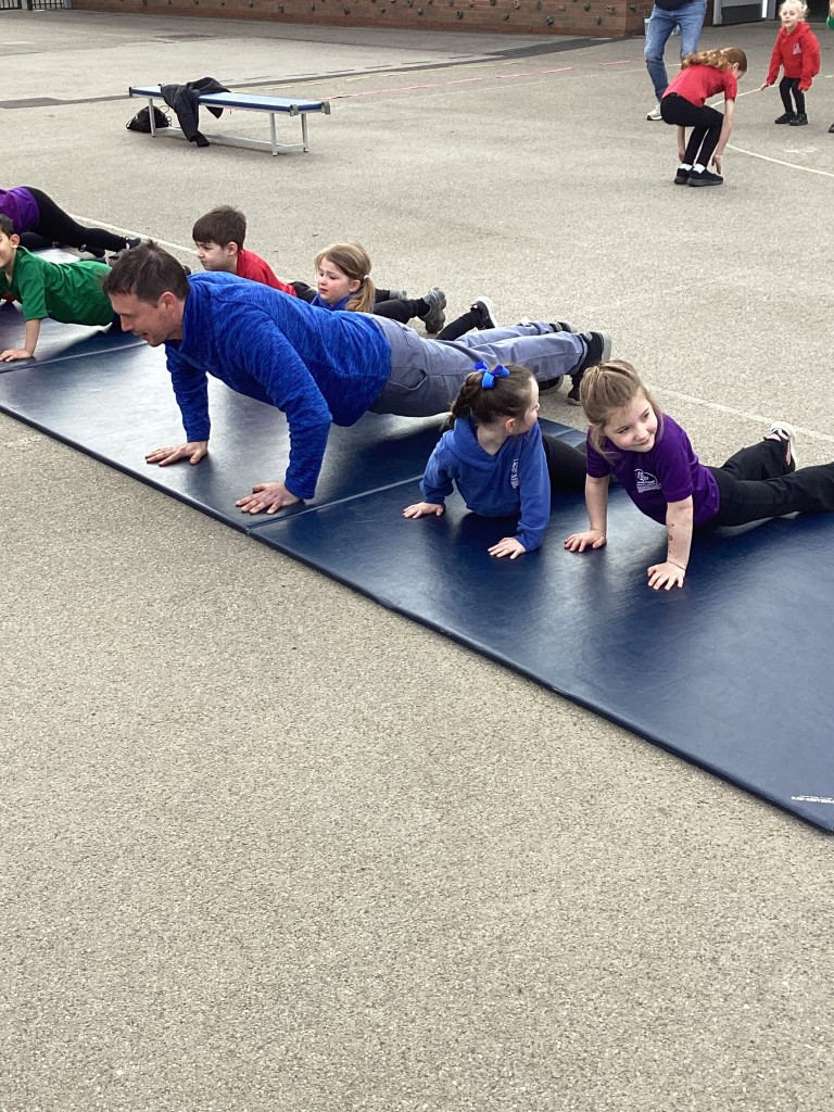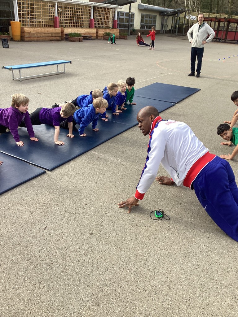 On Tuesday, the whole school had a fantastic day taking part in Sports for Champions. James Dasaolu came to the school to take part in some fitness circuits with the children. He started the day by introducing himself in an assembly and talking to the children about his journey and experience in competing. He talked about being resilient throughout his journey and being open to new opportunities when he was younger to find a love and talent for running. Afterwards, each class took part in a warm up that was led some of our Reception children in a series of exercises which they enjoyed thoroughly!