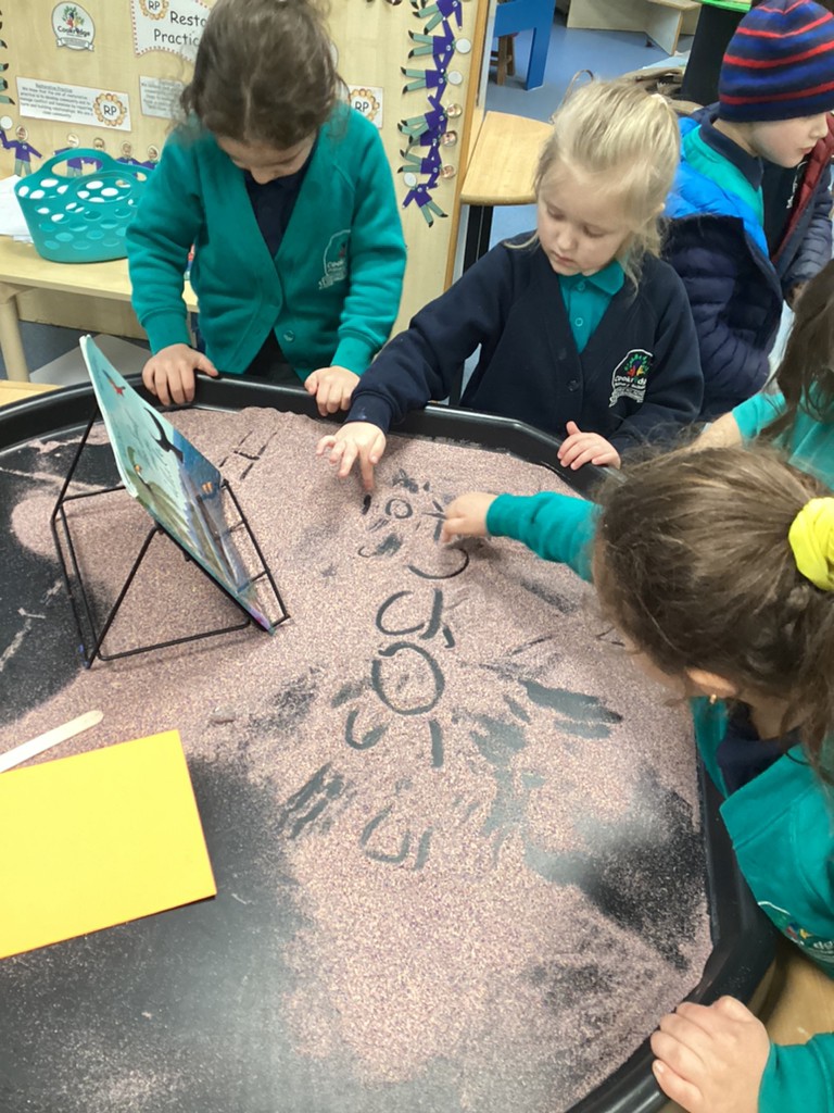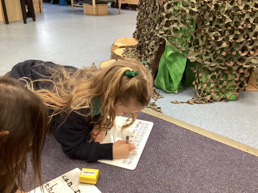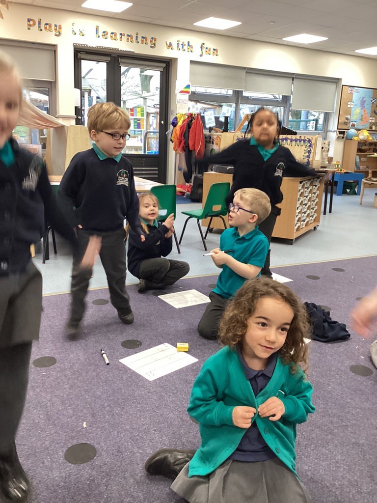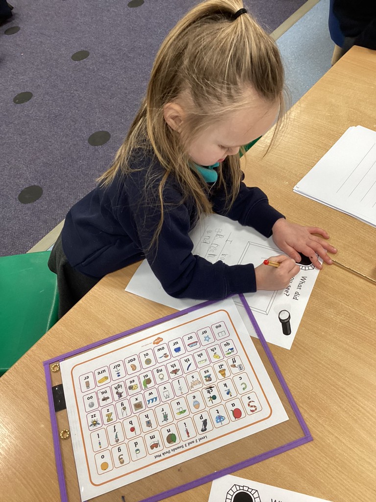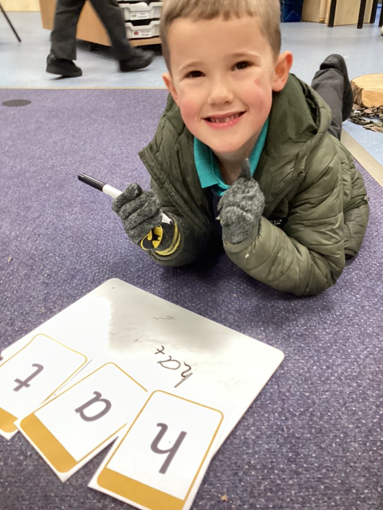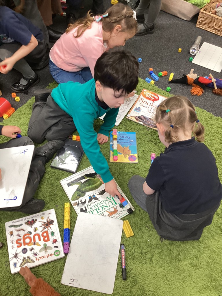Our phonics work has introduced the long vowel sounds ‘ai’ ‘ee’ and ‘igh’ and given the children opportunities to explore hearing, reading and writing this sounds in words and sentences. Playing a snail-themed phonics board game was a lot of fun, as was going outside on a word hunt!