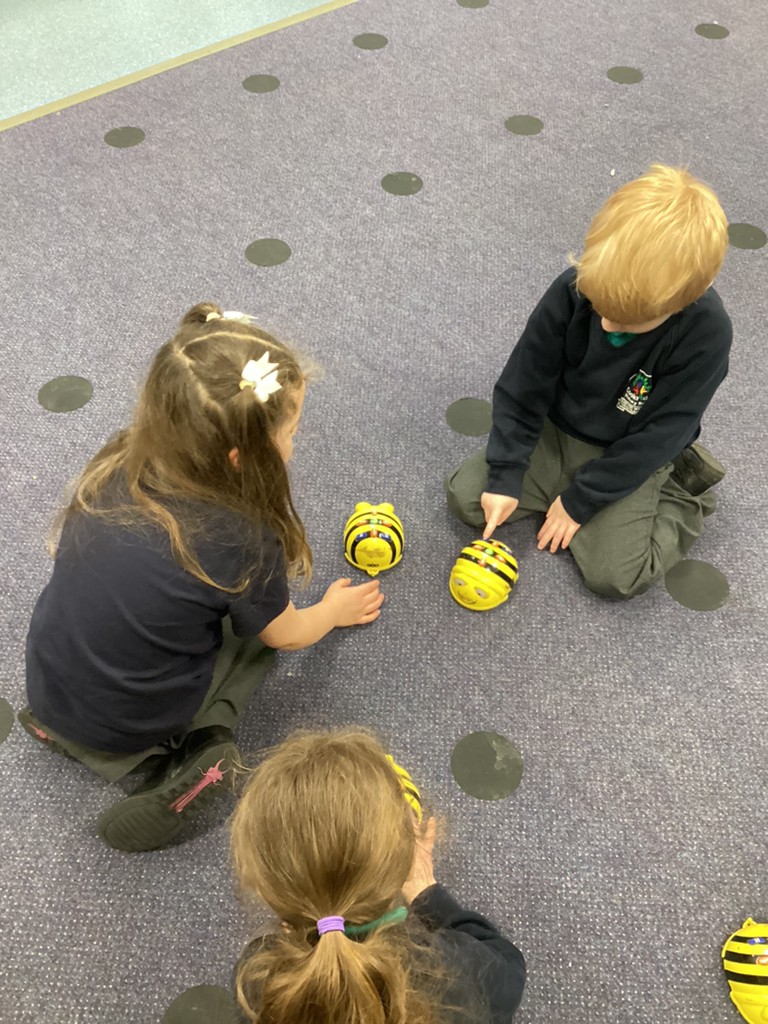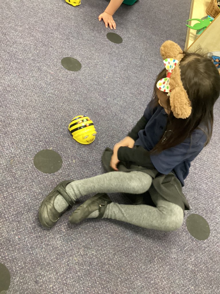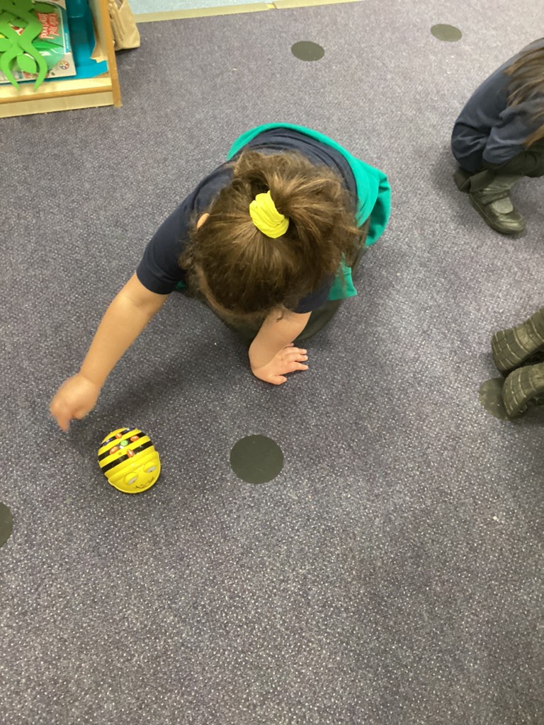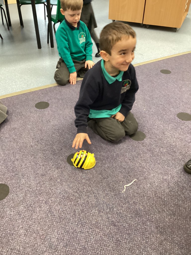 The children also very much enjoyed an opportunity to spend more time with our class pet Tortellini as he came our for some exercise. Then the class were also introduced to some digital animals in the form of the programmable Bee-bot robots and some chose to have a go at setting some directions via the on-board controls.