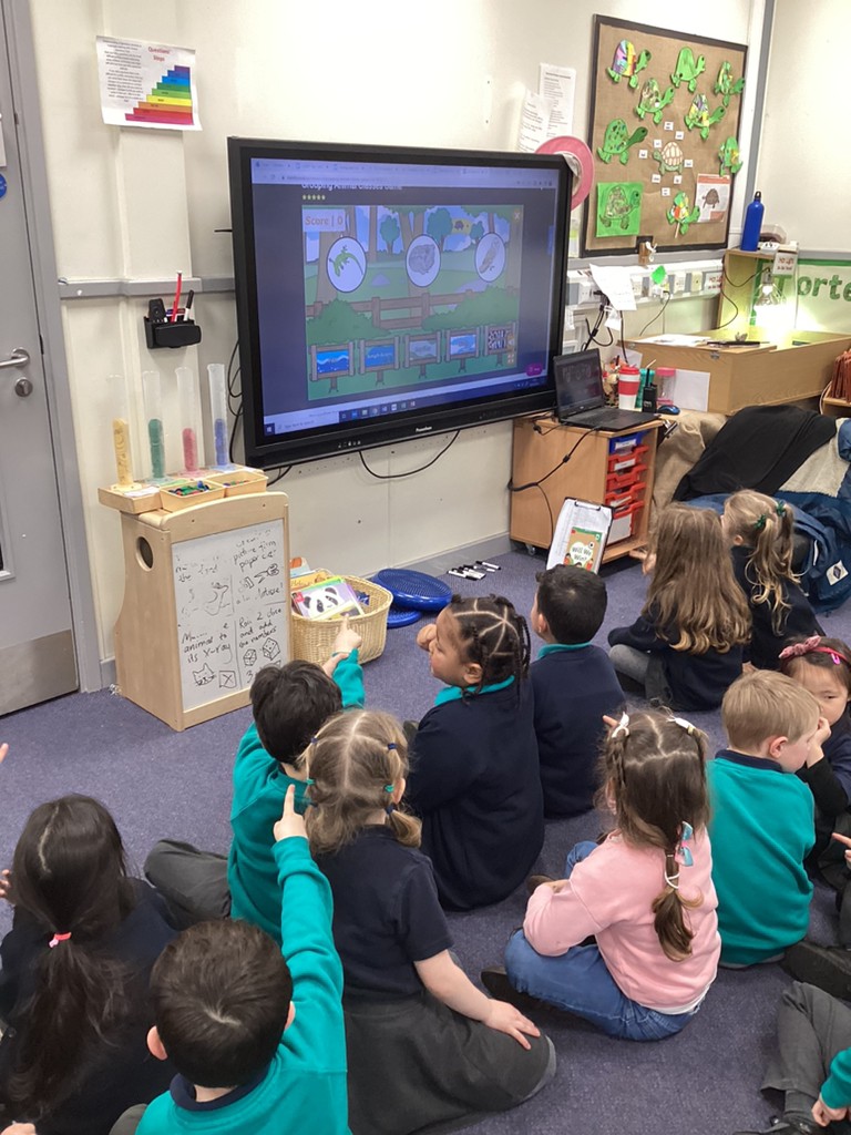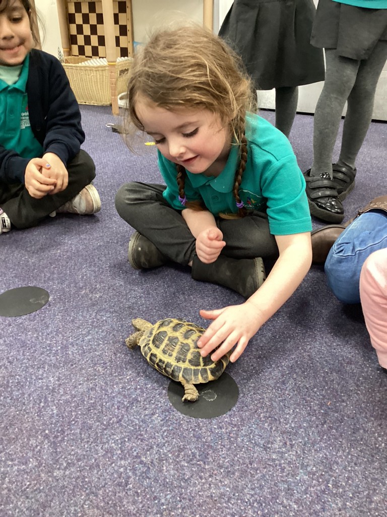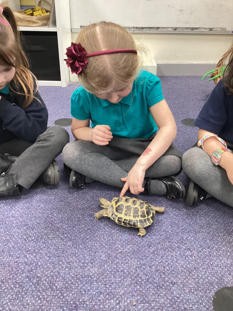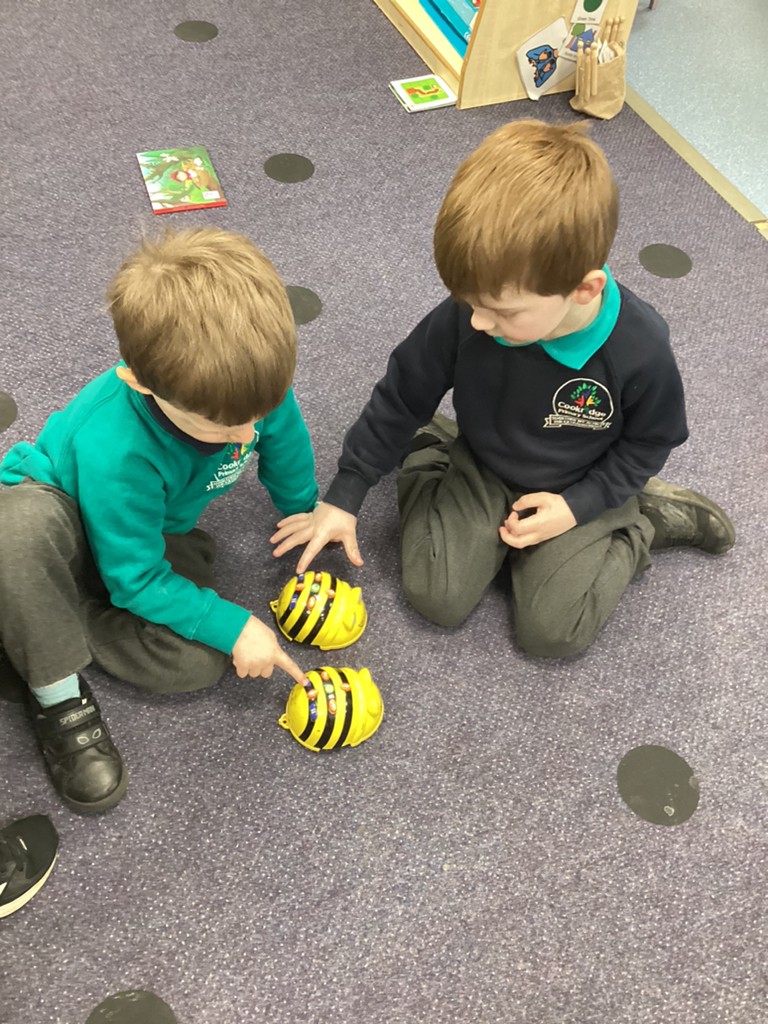 The children also very much enjoyed an opportunity to spend more time with our class pet Tortellini as he came our for some exercise. Then the class were also introduced to some digital animals in the form of the programmable Bee-bot robots and some chose to have a go at setting some directions via the on-board controls.