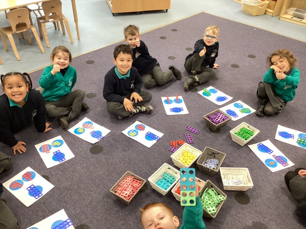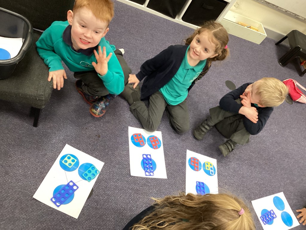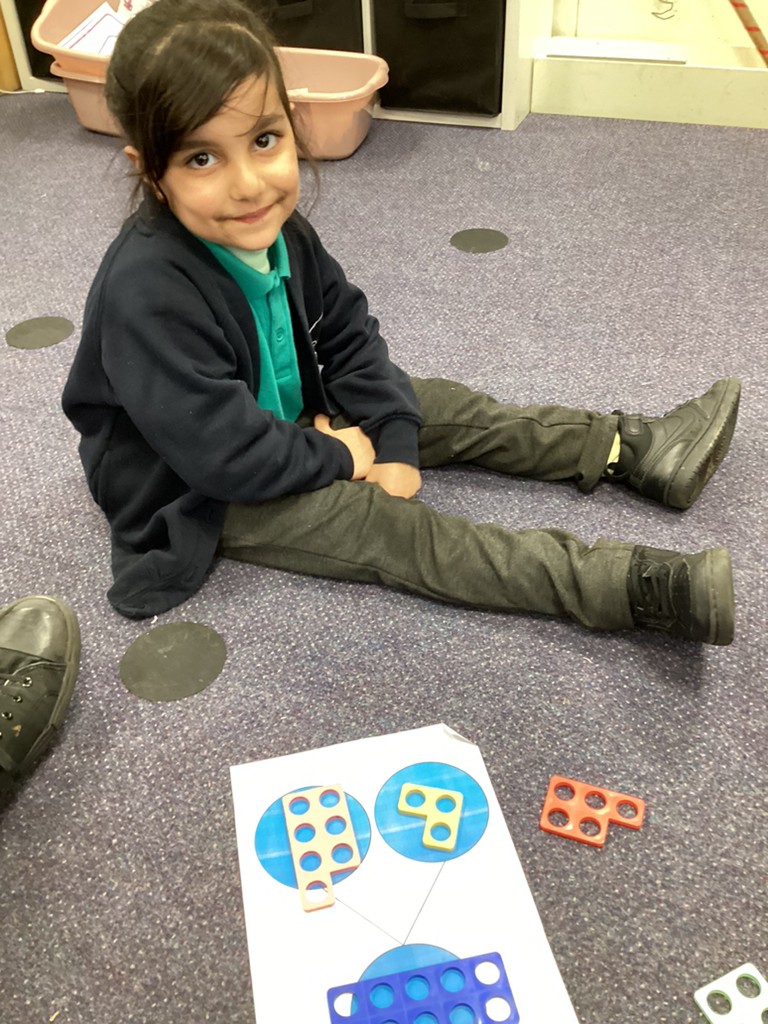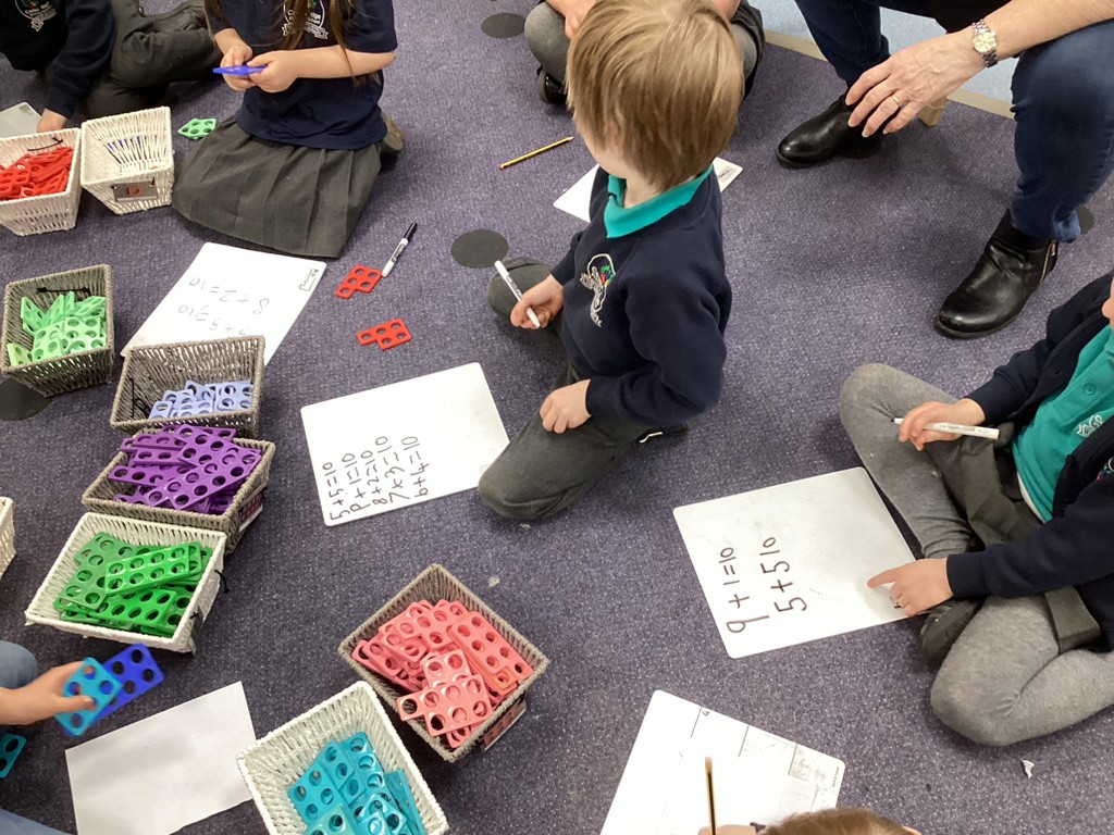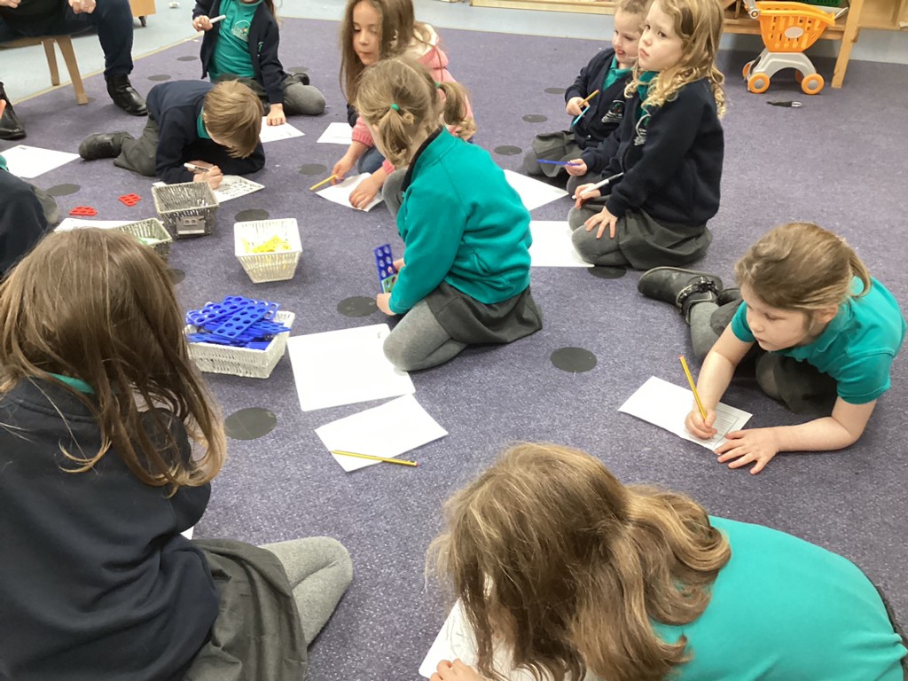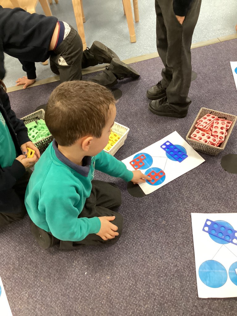 In maths we have been looking at number bonds for the numbers 9 and 10. We used tens frames and part whole models to break numbers into two parts and then, both verbally and using written number sentences, state the different number bonds we found.