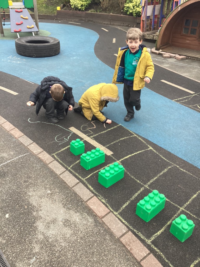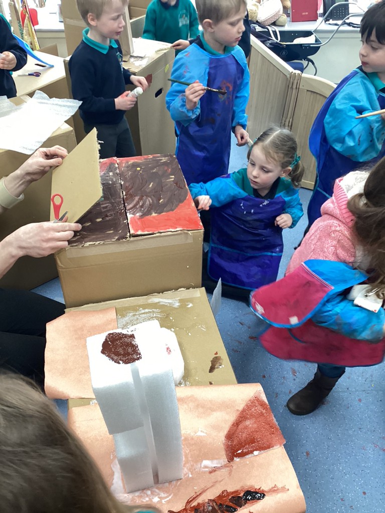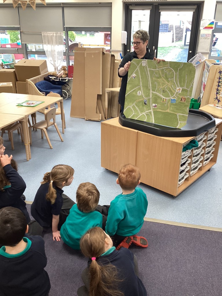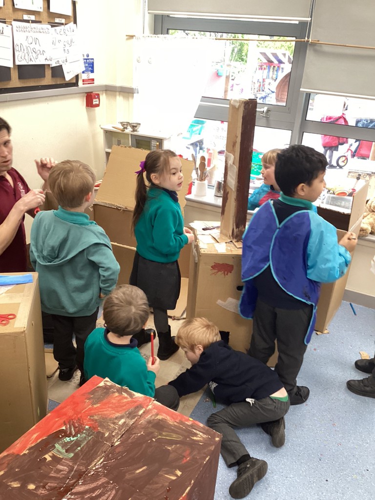 We also talked about our local area and listed different buildings we could find nearby. The children then had a go at creating large models of buildings in Cookridge such as the fire station, church and swimming pool!