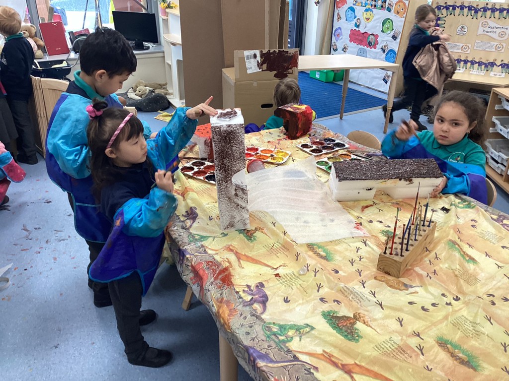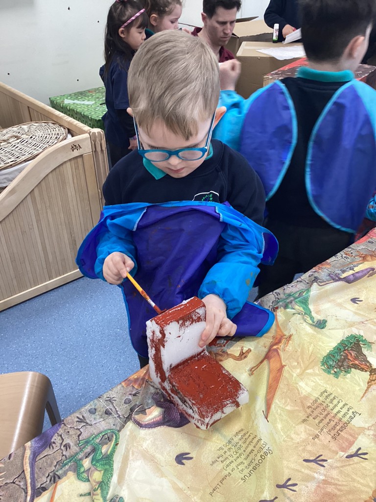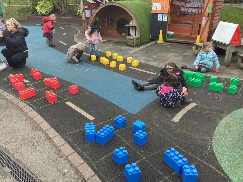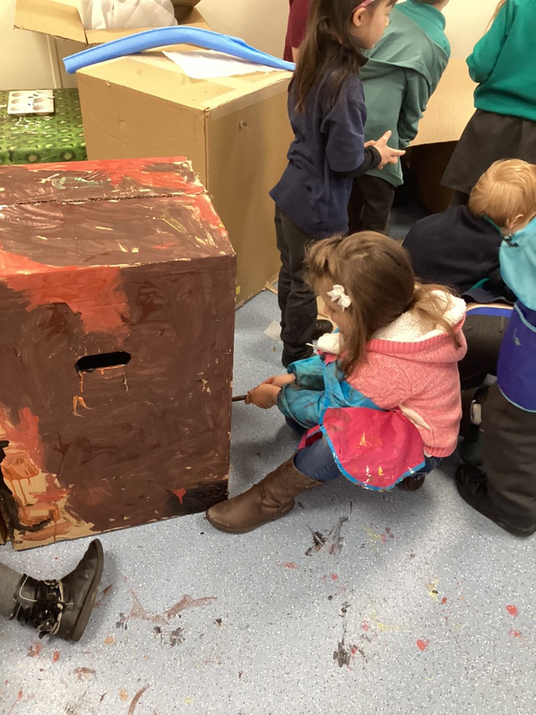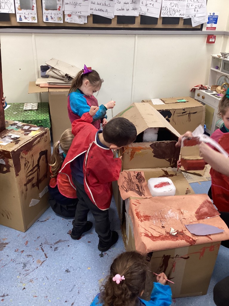 We also talked about our local area and listed different buildings we could find nearby. The children then had a go at creating large models of buildings in Cookridge such as the fire station, church and swimming pool!
