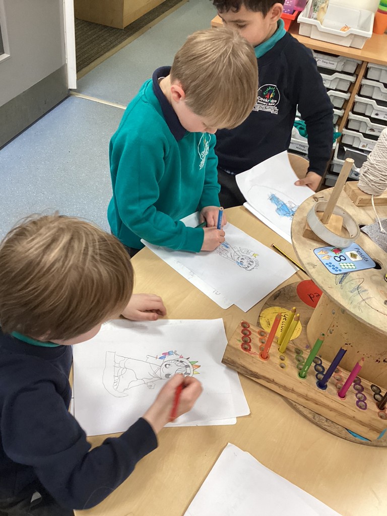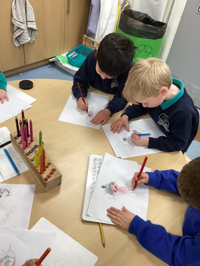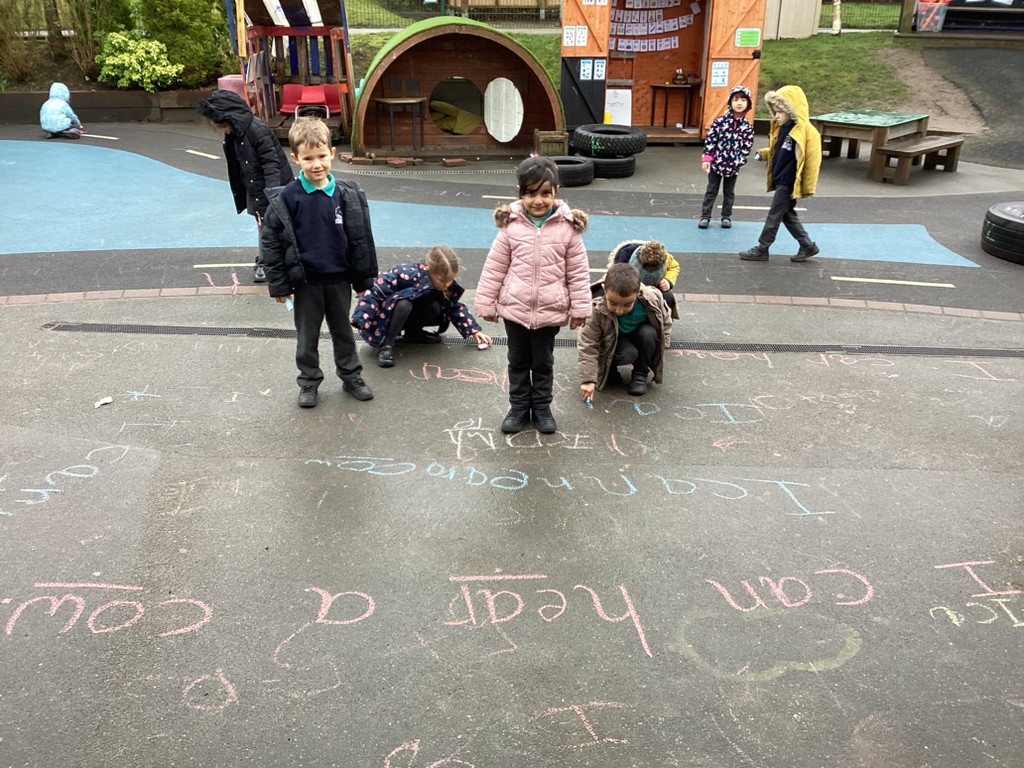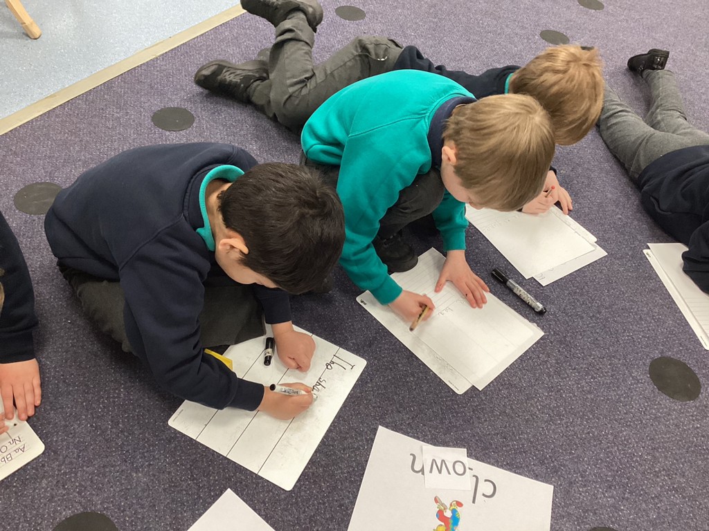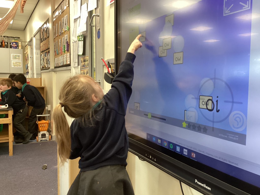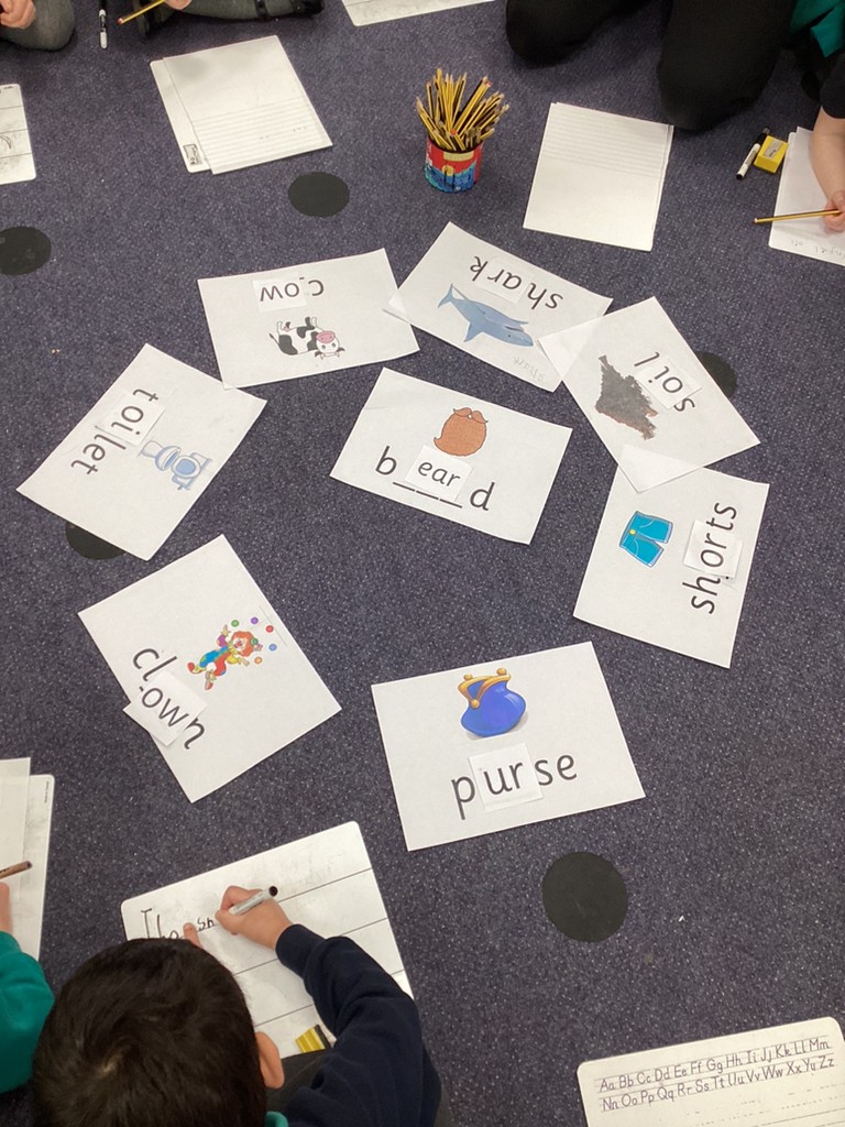In Phonics we have been looking at the graphemes ‘ow’, ‘oi’ and ‘ear’. The children worked hard to fill in the missing digraphs and trigraphs to make labels for different pictures. Some children then took up the challenge to use these words in sentences. Outside, we played lots of different animal noises and everyone had a go at using the ‘ear’ sound to explain what they heard using the sentence starter ‘I hear a…’ and write this in chalk.