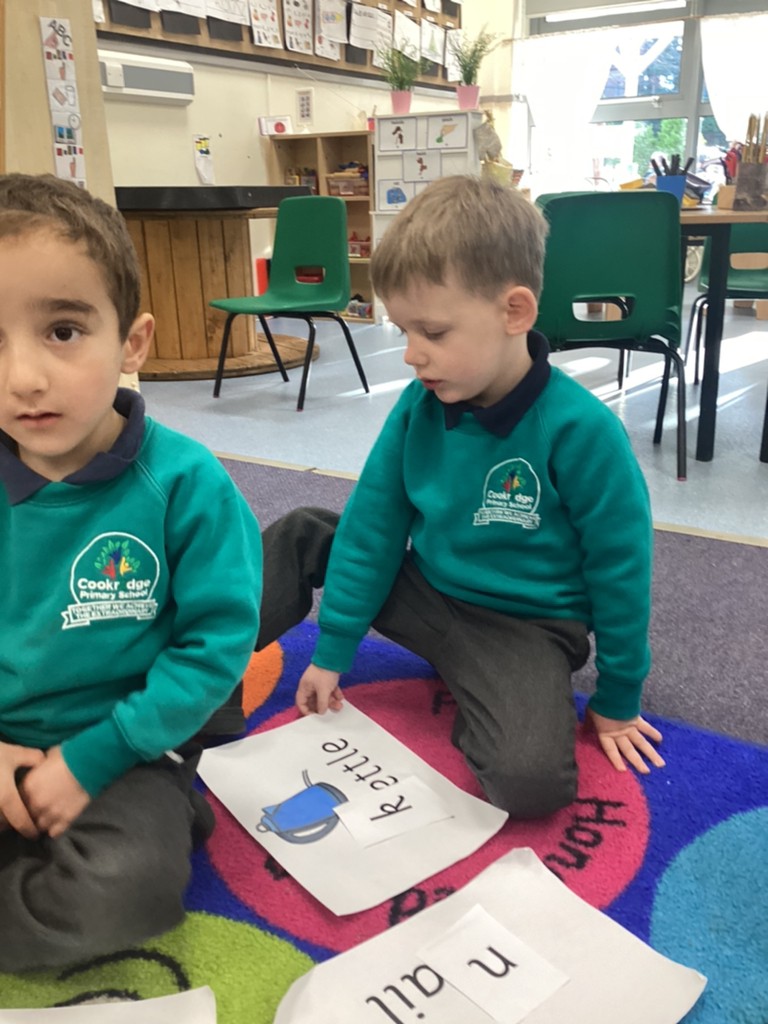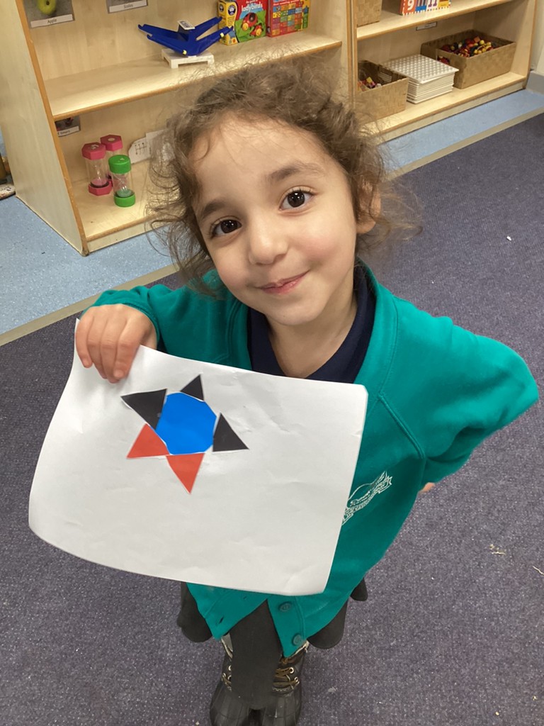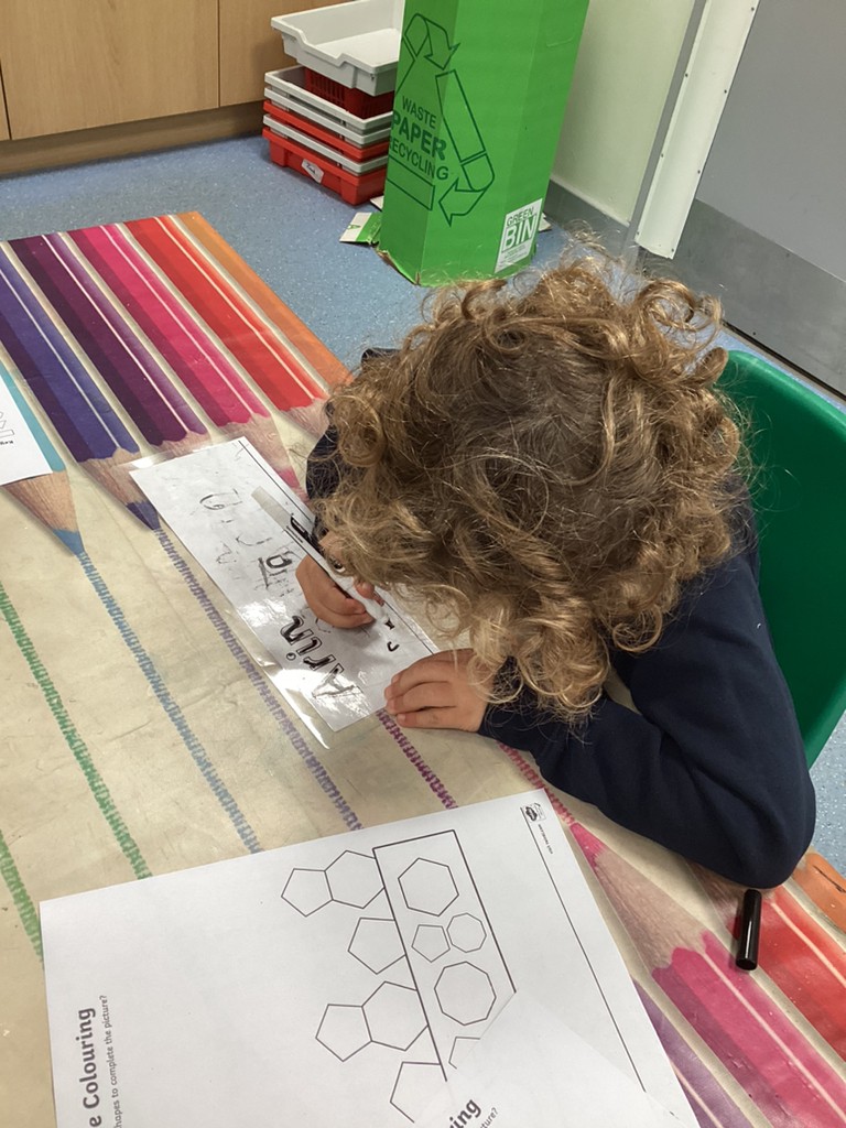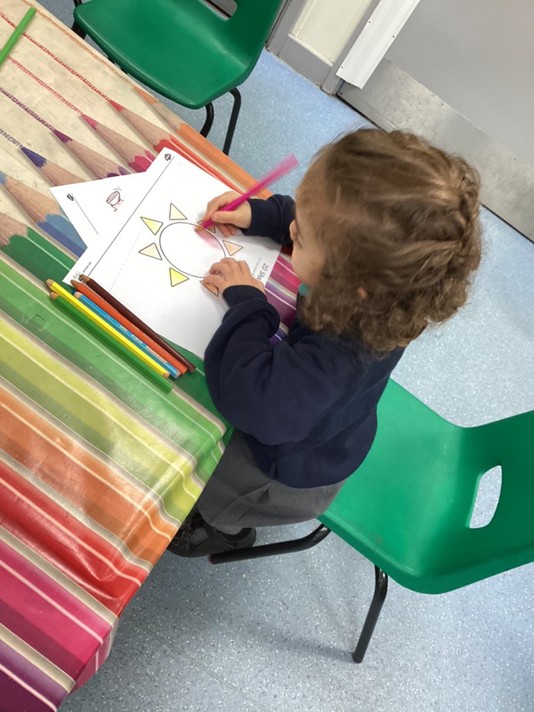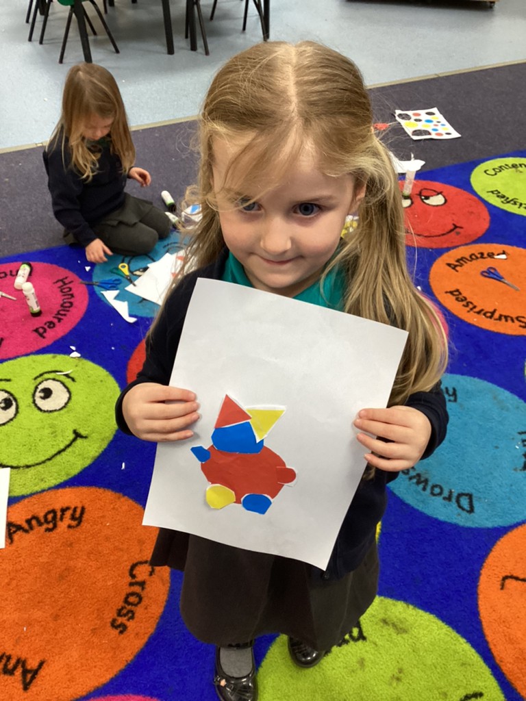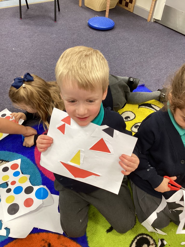 Phonics sessions have introduced the new phonemes ‘o’ ‘c’ and ‘k’ and the children have had opportunities to explore hearing, reading and writing these letter sounds in a number of ways. Maths this week has focused on 2D shapes, with the children discussing their properties (edges, corners) and taking part in games to help identify and explore circles and triangles.
