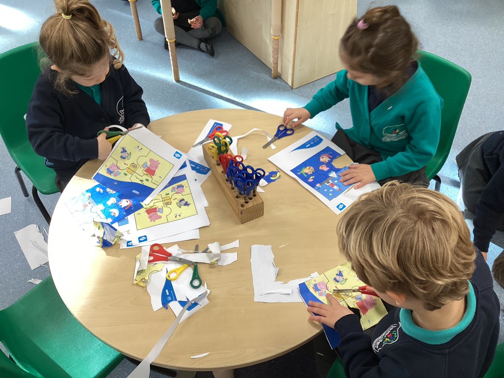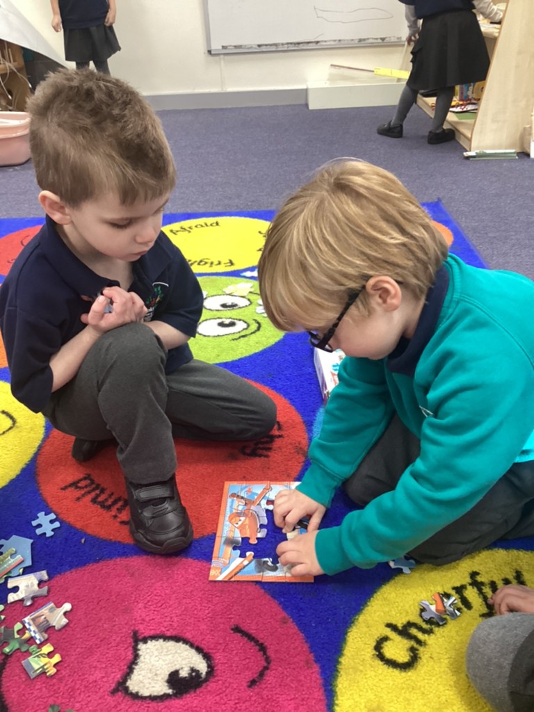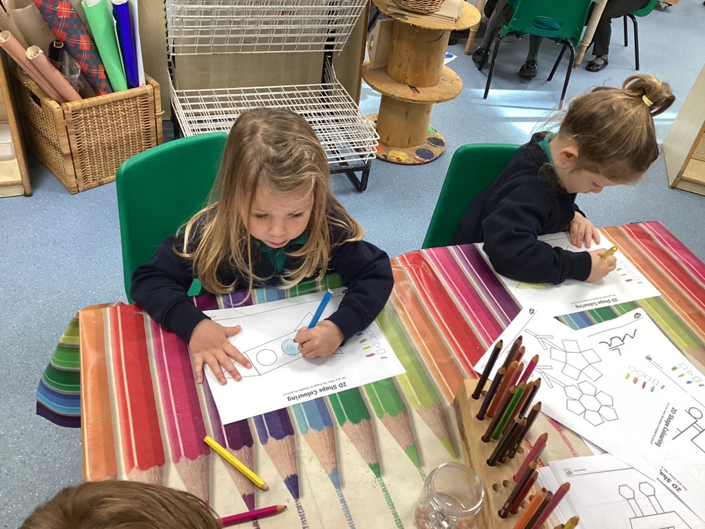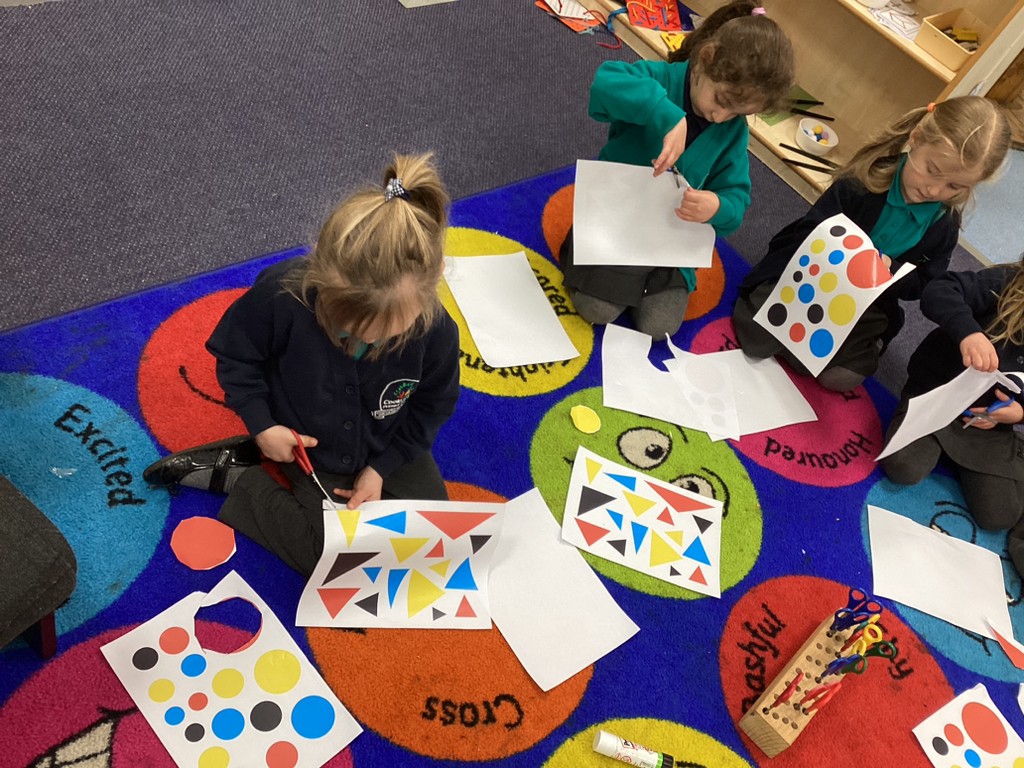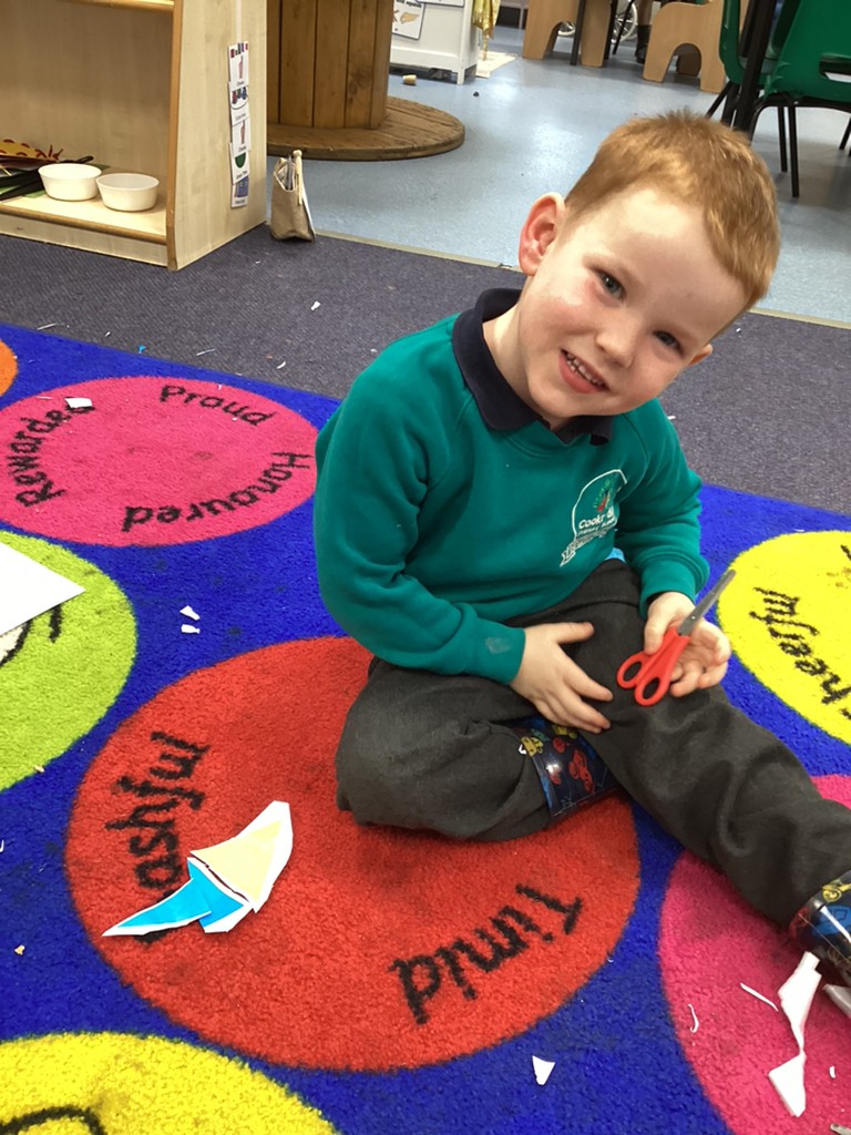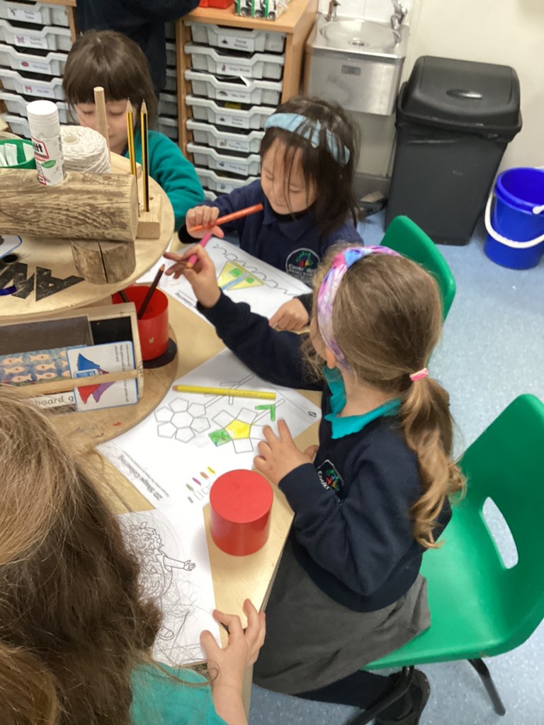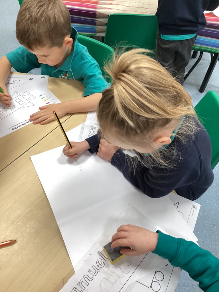 Phonics sessions have introduced the new phonemes ‘o’ ‘c’ and ‘k’ and the children have had opportunities to explore hearing, reading and writing these letter sounds in a number of ways. Maths this week has focused on 2D shapes, with the children discussing their properties (edges, corners) and taking part in games to help identify and explore circles and triangles.
