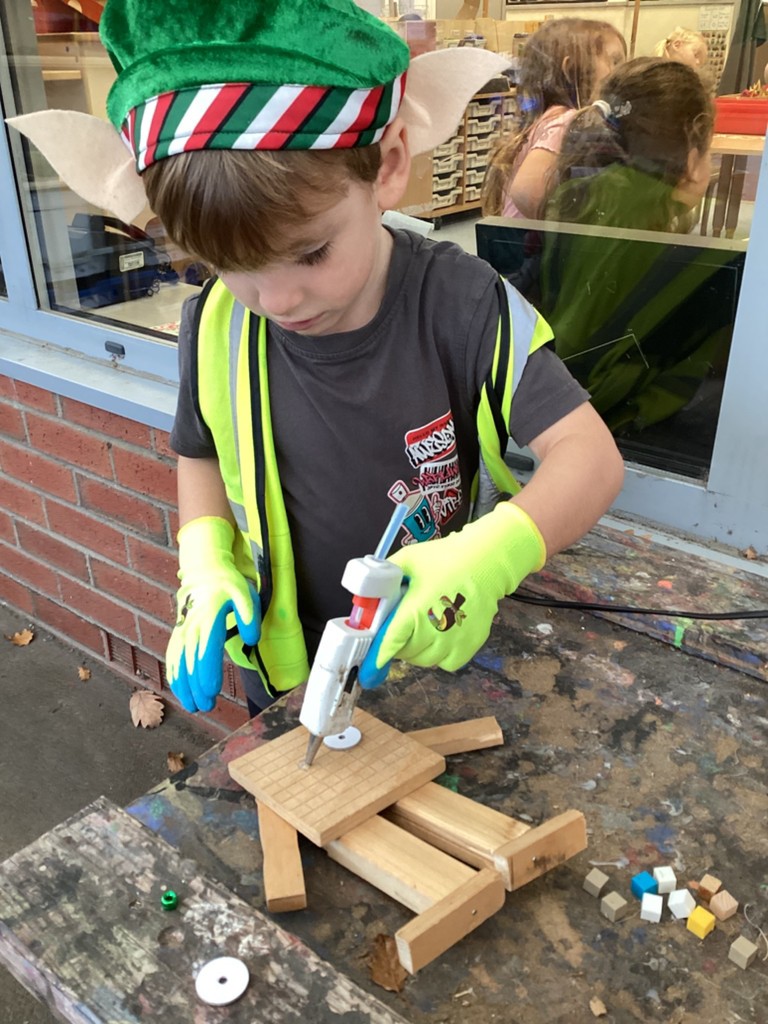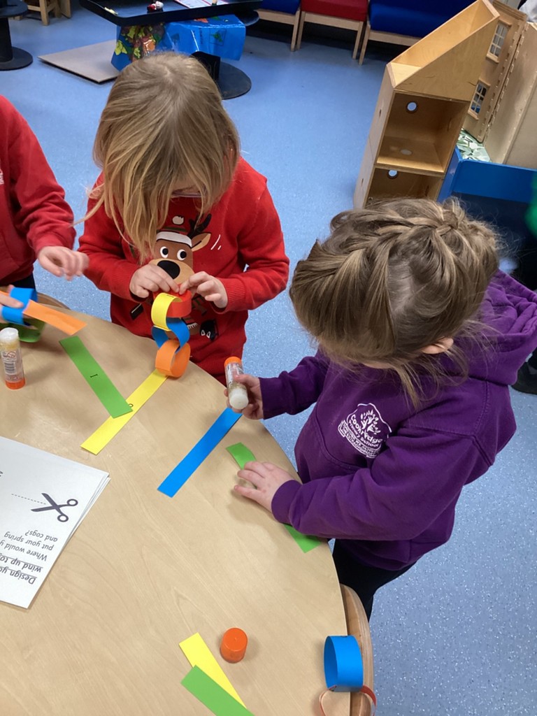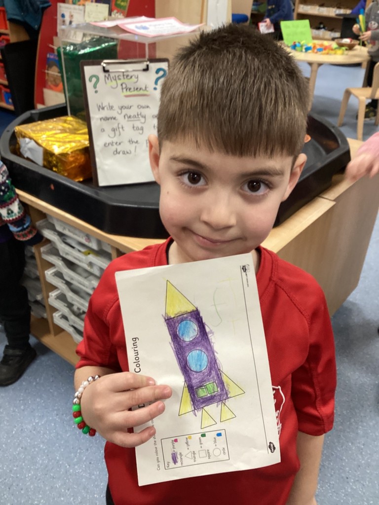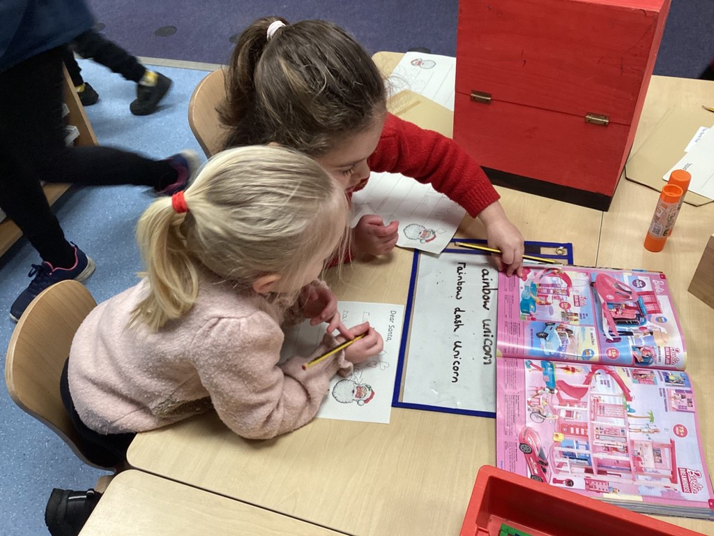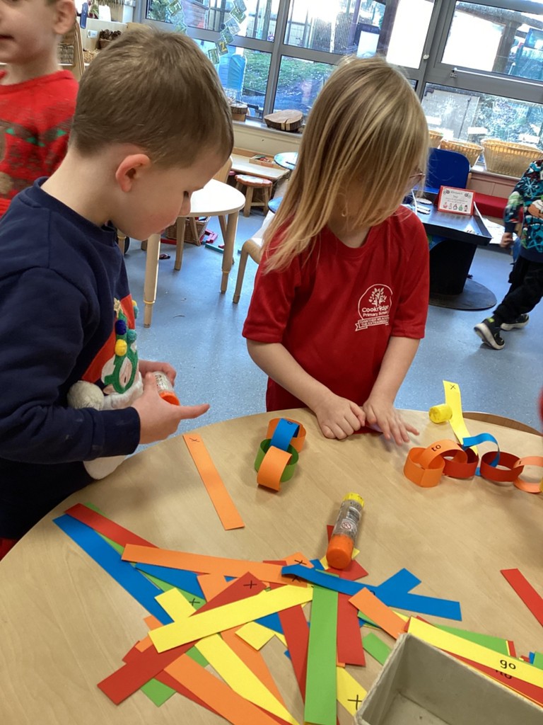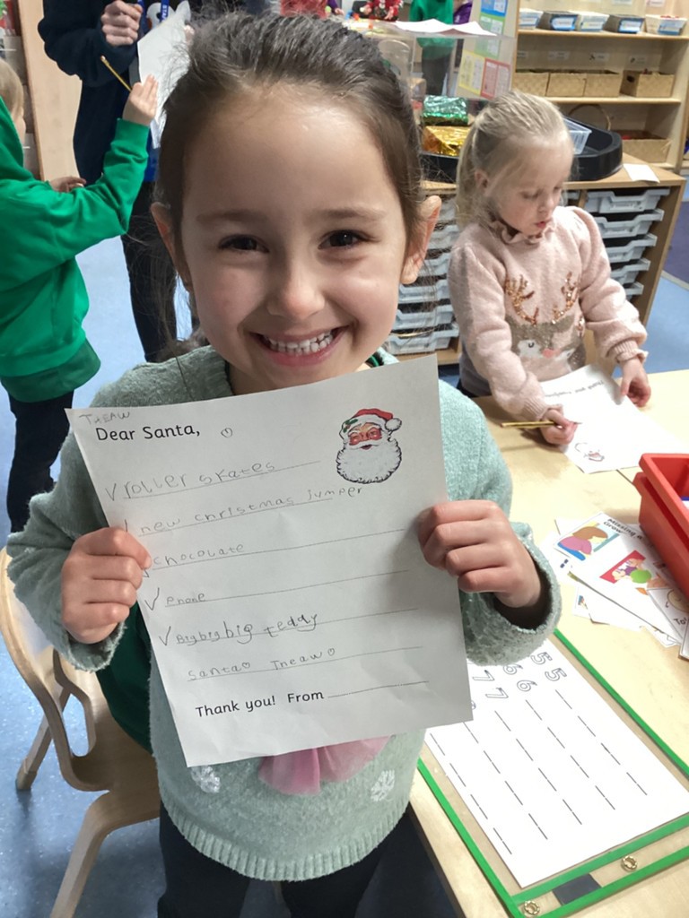 Christmas has also well and truly taken told in Reception, with many children having a go at writing wish lists of letters to Santa Claus at our writing table. There have been many children practising to write their name accurately this week, to help them be in with a shot of winning the mystery wrapped toy this week. And we’ve brightened up the classroom with some colourful paper chains, with each link printed with one of our tricky words, to help expose the children to these and help build their reading fluency as a result. Our Reception elves have also been busy again working away in the DT area to build robot toys to delivered by Santa – with some great workmanship!
