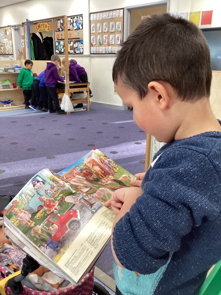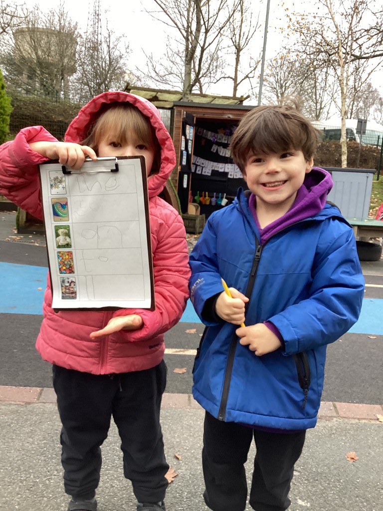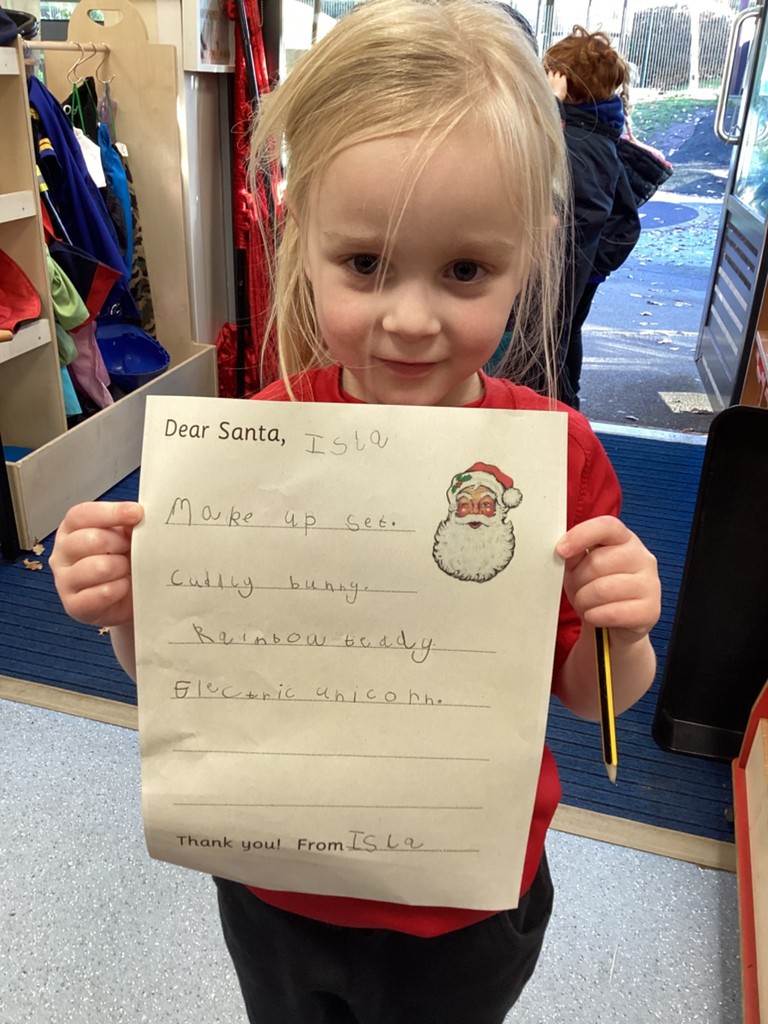 Even more excitingly, on the Christmas front, has been the arrival on Monday of a very cheeky elf! Upon finding a mysterious envelope in class, we followed a series of clues that lead us to a very special delivery from the North Pole. Inside the box was an elf and the accompanying letter explained that he had been dispatched to keep an eye on the children and ensure they are continuing to show how kind and helpful we all are – and report back to Santa. The children have been very giddy to find the silly little elf in different places each day and are keen to teach him the ways we look after our classroom as he has been caught out making a bit of a mess some mornings!