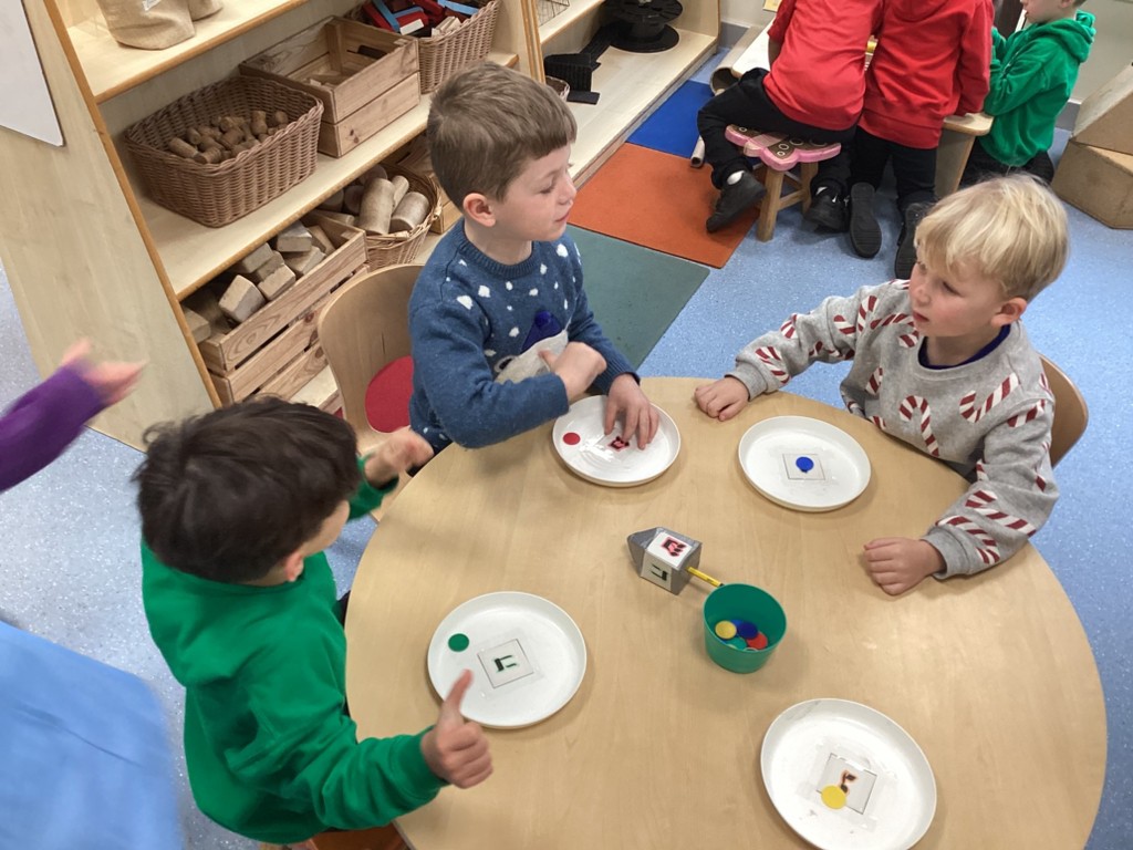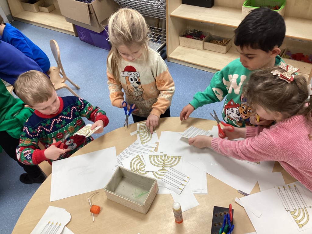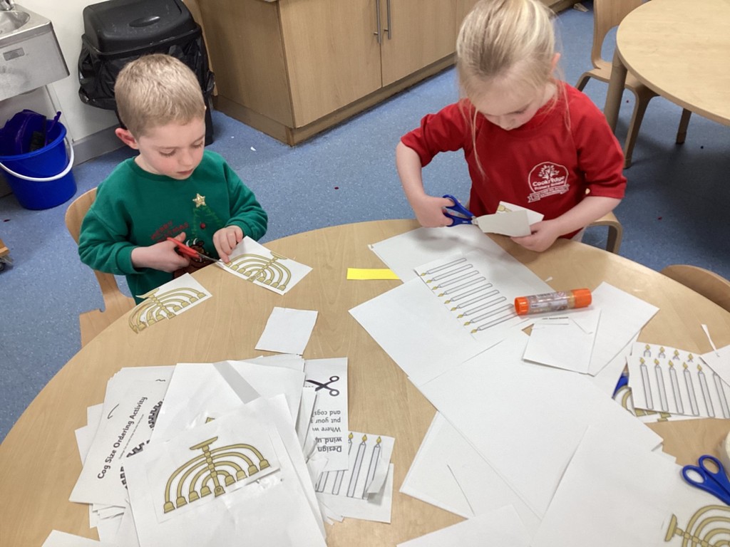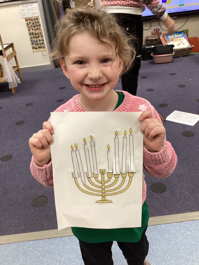 As we have been thinking a lot about Christmas, and practising our Christmas songs, we have also learned little about another religious festival that will soon be taking place – Hannukah! The children have been rehearsing a song about Hannukah, so we talked a bit about how this is a special time for Jewish people and we learned about the tradition of lighting candles on the Menorah as the festival progresses. Some children challenged themselves to have a go at cutting out candles to put on a menorah picture, whilst others enjoyed playing with a traditional dreidel (or sivivon).