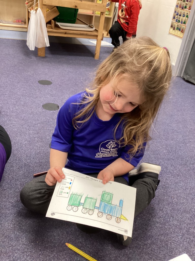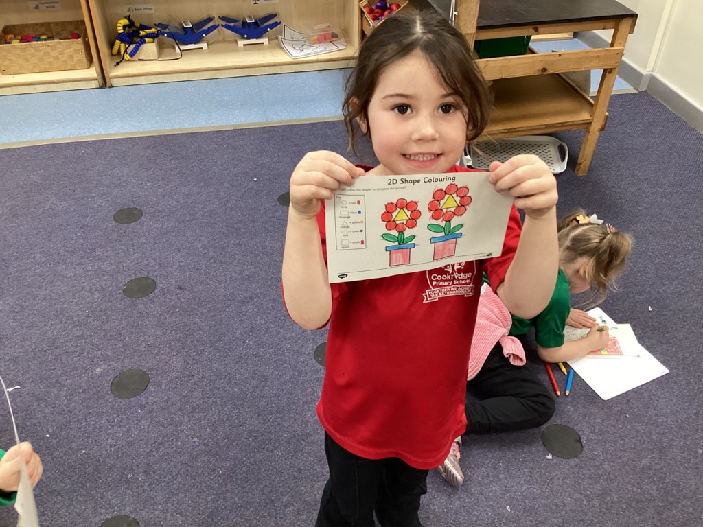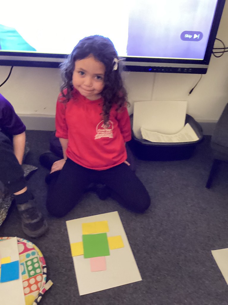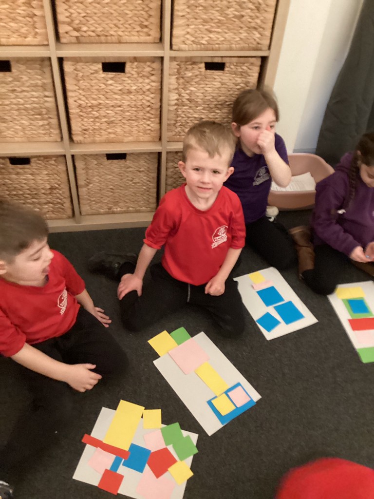 Maths sessions this week have seen us investigating shapes with four sides. We introduced the children to lots of shapes that have four sides, but we focused on rectangles and the most regular rectangle of all – the square! While also recapping our previous learning on circles and triangles, one activity found the children colouring shape pictures according to their properties – could the children identify a square from a rectangle? The children also enjoyed the challenge of using these 2D shapes to make their own shape pictures, such as robots or houses. Another activity took us on a big shape hunt all over school, trying to spot these shapes in everyday objects around the building and playgrounds.