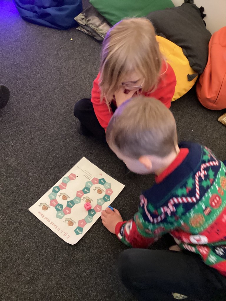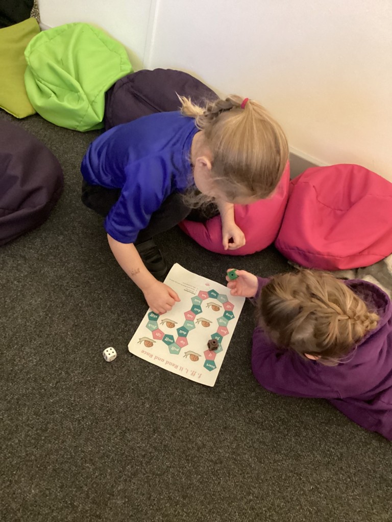 In our phonics sessions this week we have introduced the digraph phonemes ‘ff’ (as in off) and ‘ll’ (as in bell). These digraphs have two letters to represent one sound and are usually found in the middle or at the end of words. The children practised writing these digraphs and trying to identify whether a word would use a single letter ‘f’ or ‘l’ and where a ‘ff’ or ‘ll’ digraph would be appropriate. To further practise blending skills, the children had a go at a board game where they were challenged to read words containing these digraphs to win.