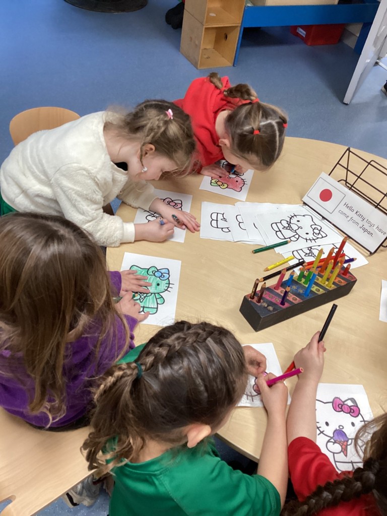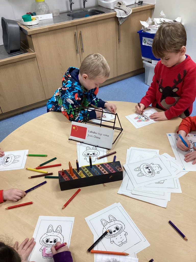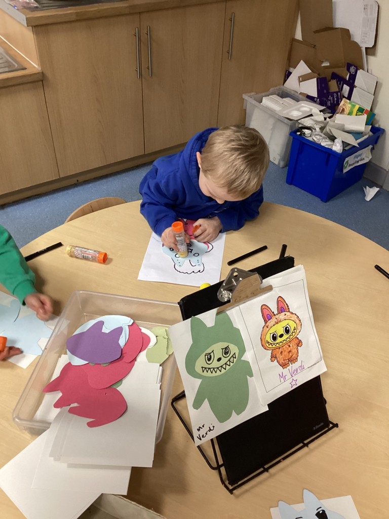 At the end of another busy week, Reception class have got lots to share with you again. Our ‘Toytown’ topic has this week continued by looking at different toys from around the world. At the start of the week, we looked at the phenomenon of ‘kawaii’ culture from Japan and it’s influence on ‘cute’ toys such as Hello Kitty and Labubu dolls. Some children had a go at sticking together their own Labubu doll pictures and adding the faces themselves. On Wednesday, Miss Bostock introduced the children to traditional ‘worry dolls’ from Guatemala. The children learned about how children make these simple little dolls to tell their worries to and then leave them under their pillow to help take away their anxieties. Many took up the challenge to make their own worry dolls from lolly sticks and fabric scraps. Finally on Friday we looked at the traditional Jewish toy, the dreidel (or sivivon) which has its origins in eastern Europe. The children loved playing with a version of this toy and trying to guess which of the four Hebrew letters it would land on when spun.