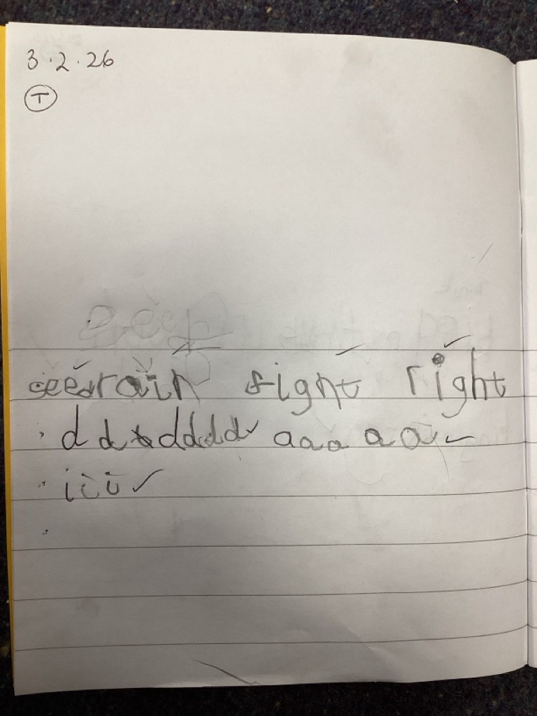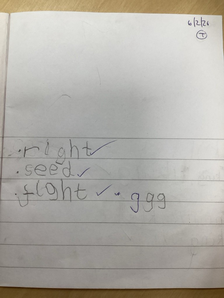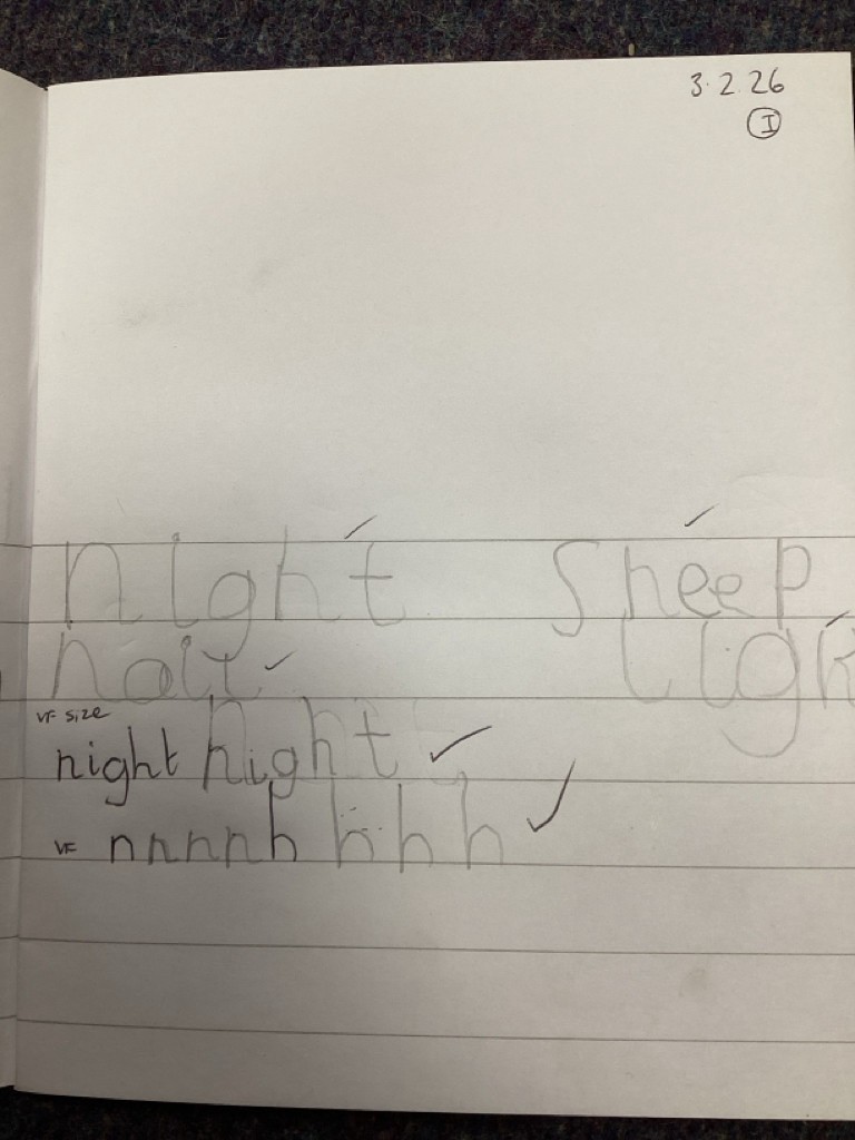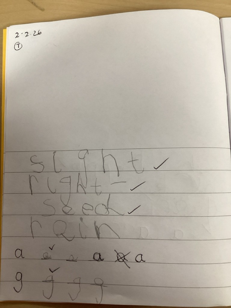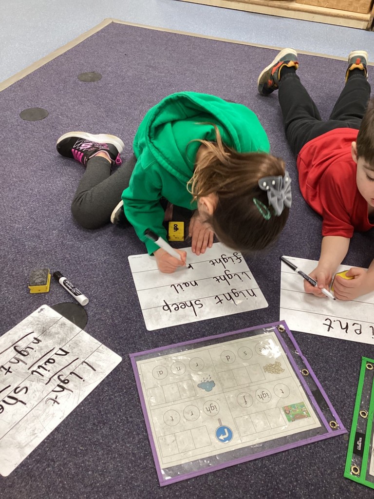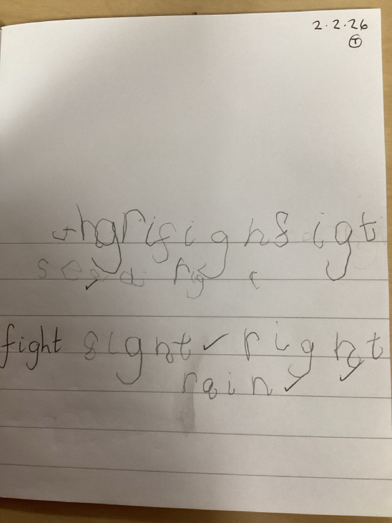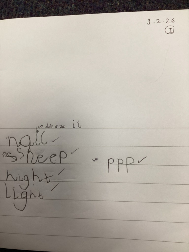 Phonics sessions this week have introduced the long vowel phonemes ‘ai’ (as in snail) ‘ee’ (as in cheese) and igh (as in knight). The children have all taken part in activities to rehearse recognising these sounds when segmenting to spell and in blending these sounds when reading words and phrases. Particularly enjoyable was a word hunt game that required the children to seek out picture cards around school and write labels for those they found.