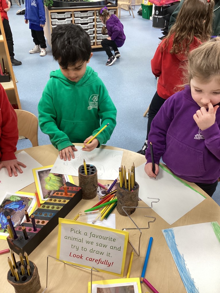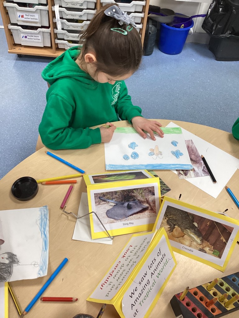 As each day on Tuesday, Wednesday and Thursday we had a group out at Tropical World, the children who remained in school took the opportunity to refine their drawing skills with some of our ever-popular drawing tutorial videos. As they carefully followed along the step-by-step instructions, Reception have managed to produce some fabulous snowy owl, cougar, and bald eagle drawings – as you can see below!