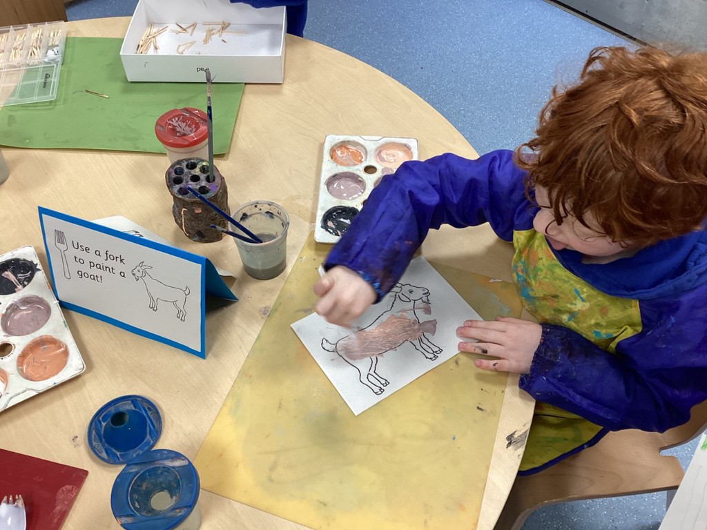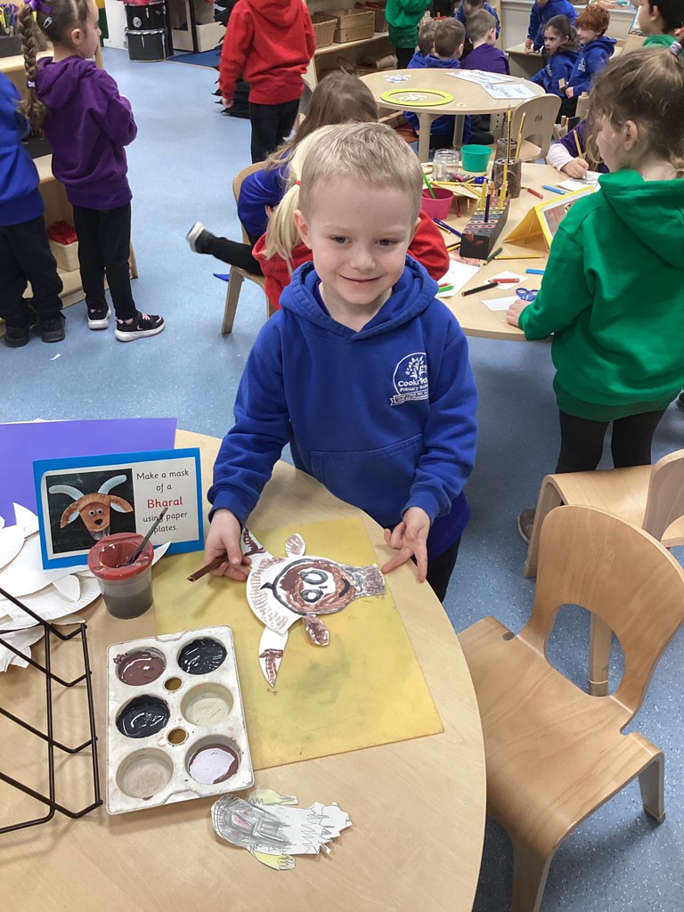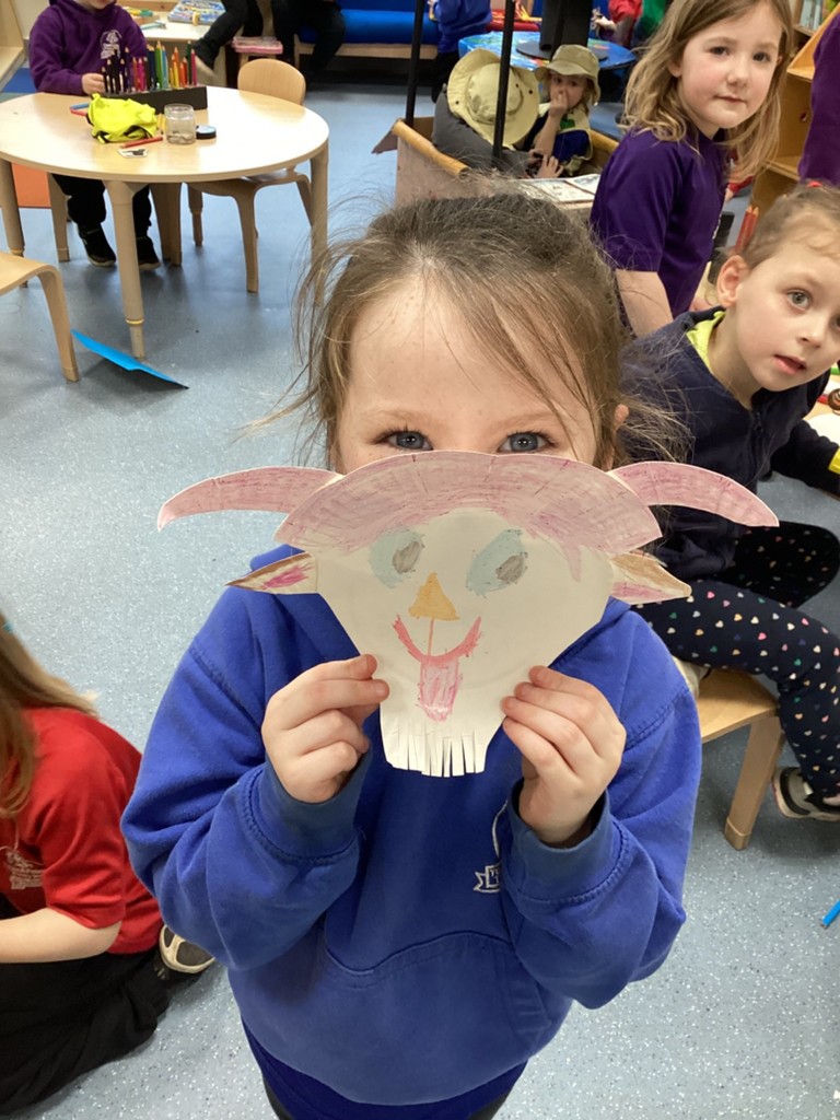 What awful weather we’ve been having again all week! So it’s kind of fitting that we’ve carried on our Amazing Animals topic by looking at the hardy animals that live in mountainous terrain. On Monday we took a look at some of these animals such as bharal sheep, bald eagles and snow leopards and learned a little about how they have adapted to live in such challenging environments. We saw together how there are mountainous regions all over the world and how inhospitable they are for humans and most animals. The children have loved doing some art activities this week around these animals, including making some fantastic goat masks.