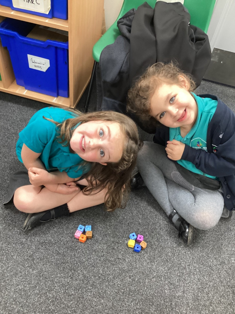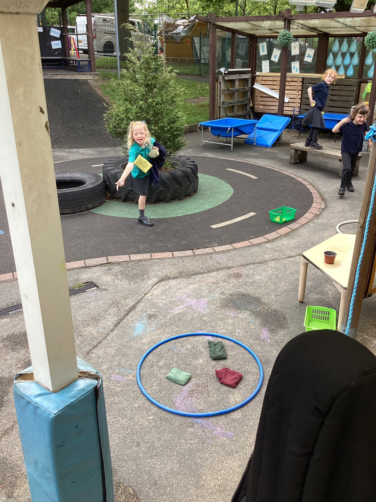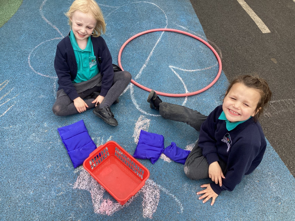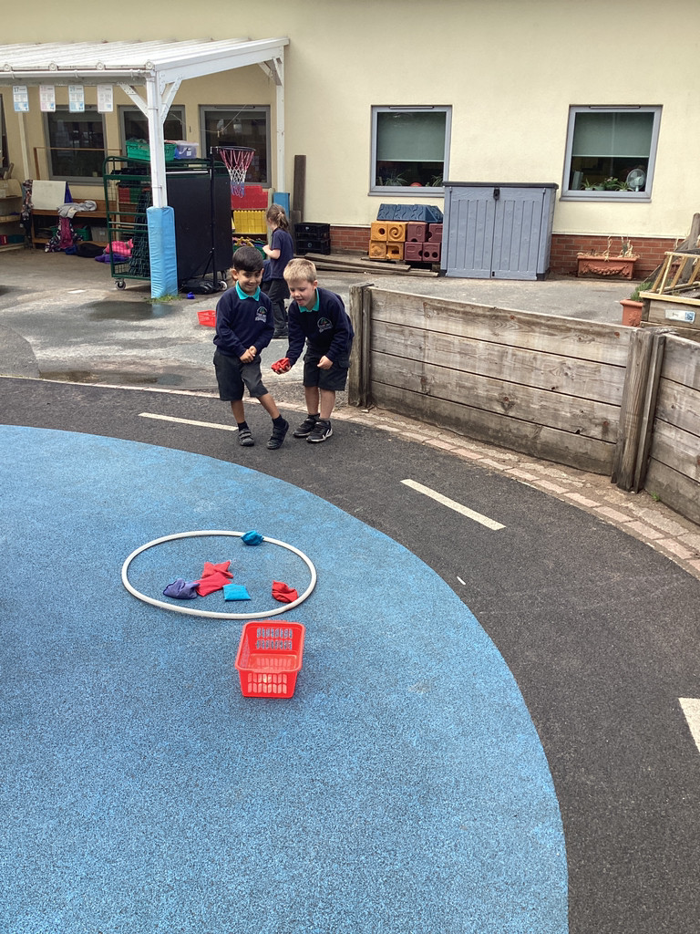 Maths sessions this week have introduced the concept of division via sharing activities. We discussed how when sharing out an amount it must be divided equally so that all groups are the same size. The children explored this practically through a forest-themed treasure hunt, acting out a sharing story called ‘The Doorbell Rang’ which involved sharing out a batch of cookies between friends. Outside the children played a throwing game but first had to share out the beanbags fairly between the group.
