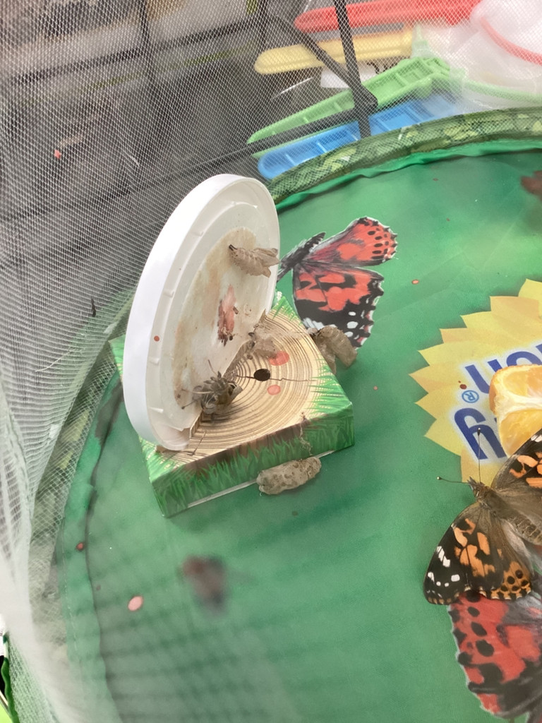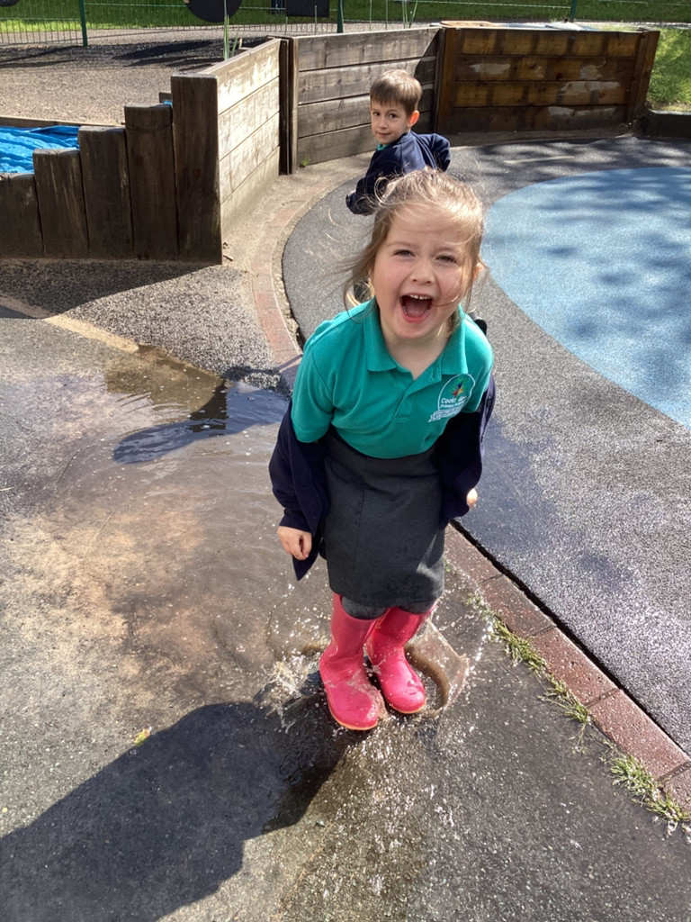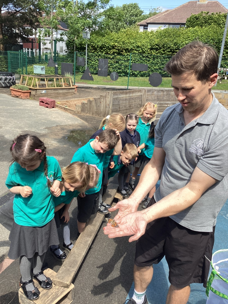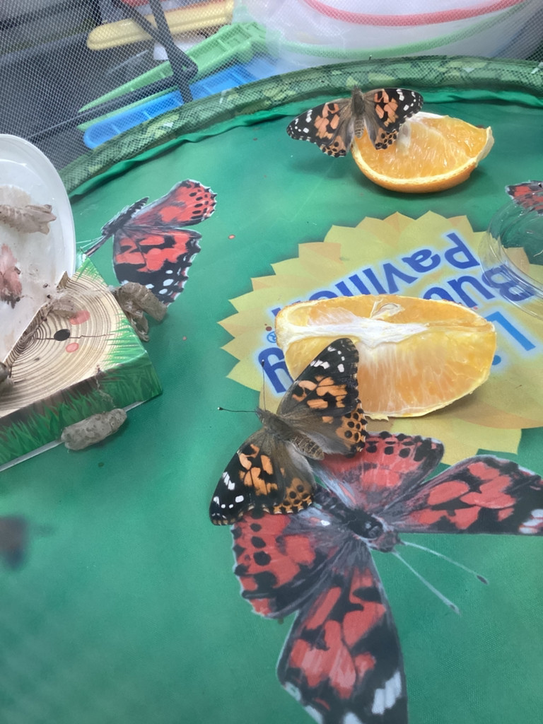 A rather damp first week back for the last of Summer Term but we’ve tried to make the most of it! The rain and especially the puddles were very popular with many children having a great time splashing about. It was also a rather wet welcome for our butterflies too! The caterpillars that we had been keeping an eye on in Reception had been tucked away in their chrysalises all throughout the half-term break and then this week they have all emerged as beautiful Painted Lady butterflies. The children have loved having them in class within their netted enclosure and on Friday we released them out to the beautifully damp Cookridge garden where we are hoping they will enjoy their short lives (hopefully they’ll enjoy at least a little sun at some point!).
