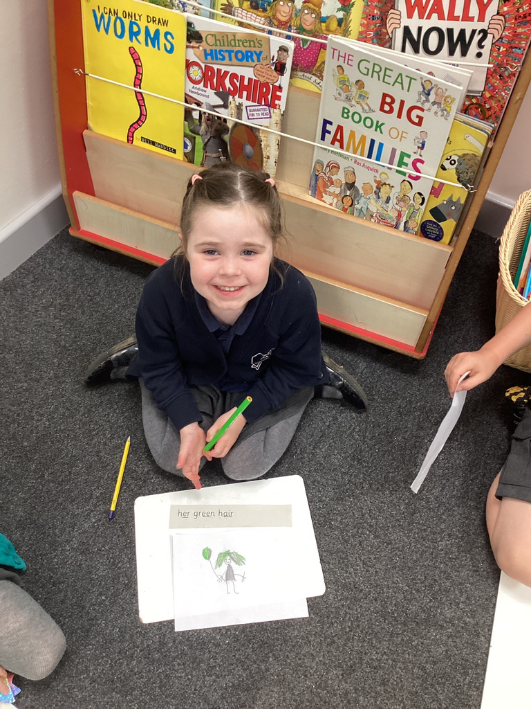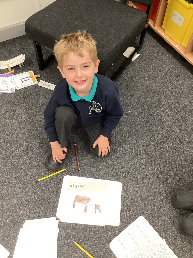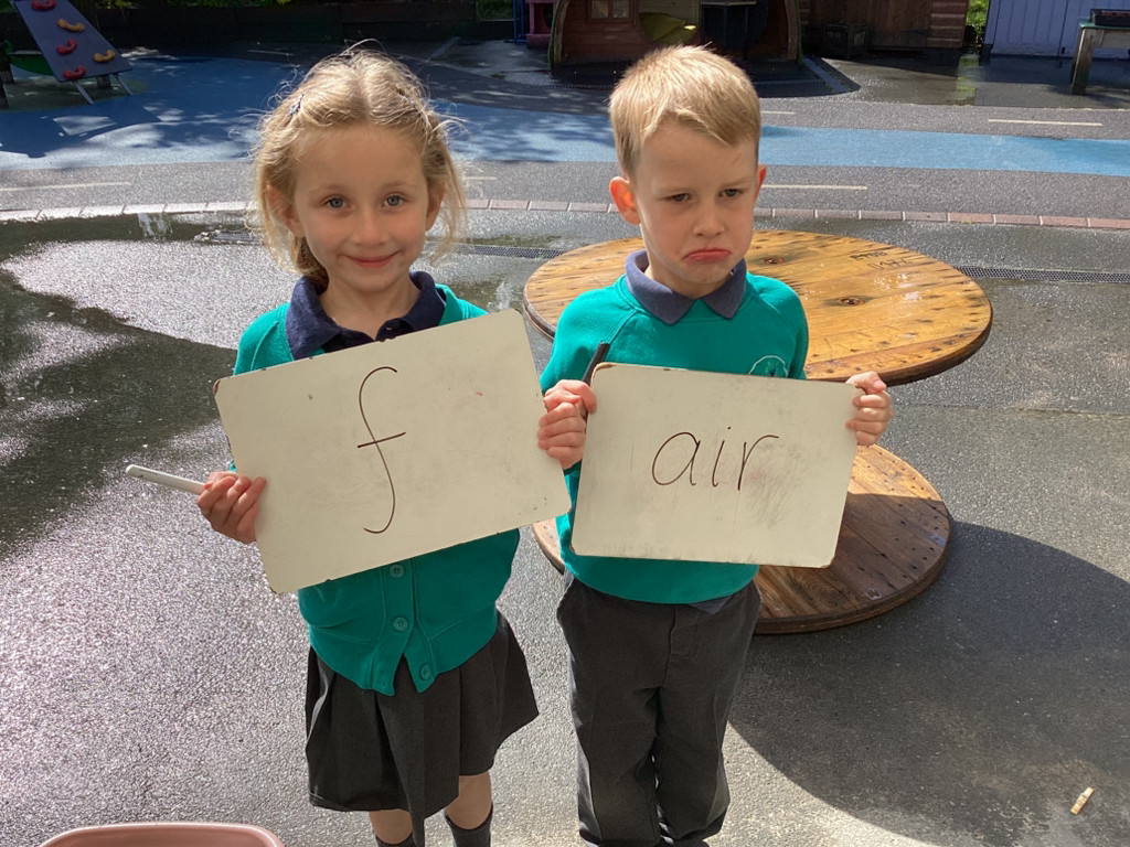 In Phonics we have recapped the three-letter ‘trigraphs’ ear (ear), air (chair) and ure (pure). We have had reading practise outside as children hunted down bug-themed word posters and had to read which each said to find all the answers on their sheet. Inside children were challenged to read a sentence and then draw a picture illustrating it to demonstrate their comprehension of what they had read. Sentence writing in books is also coming on so well – all the teachers have been so impressed by children using their phonics knowledge to spell carefully and remembering all our sentence rules to write more independently.