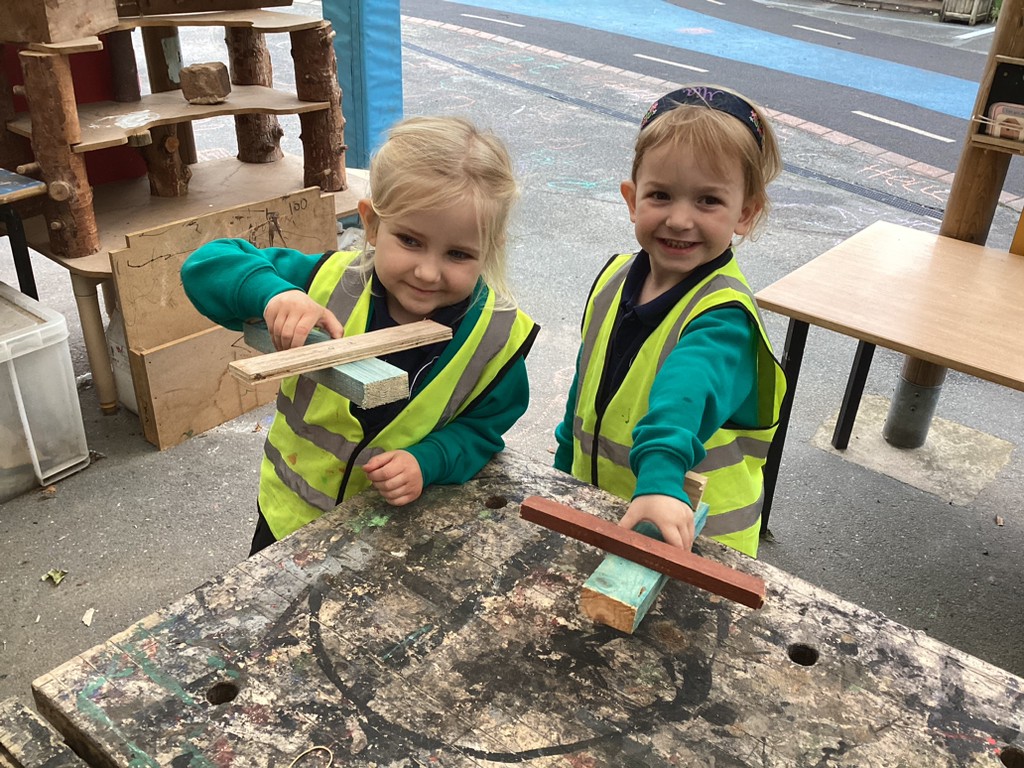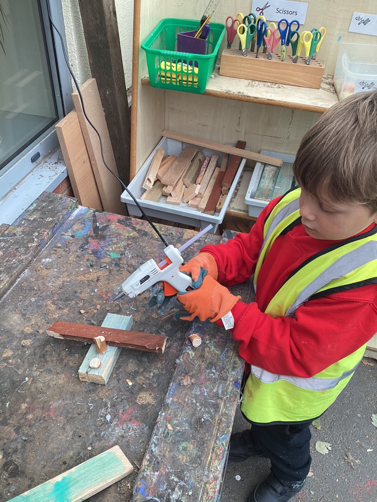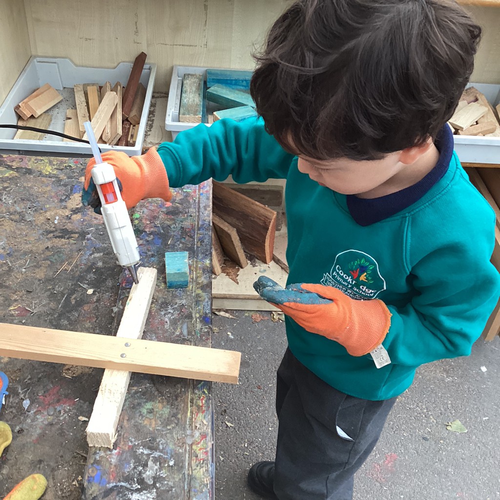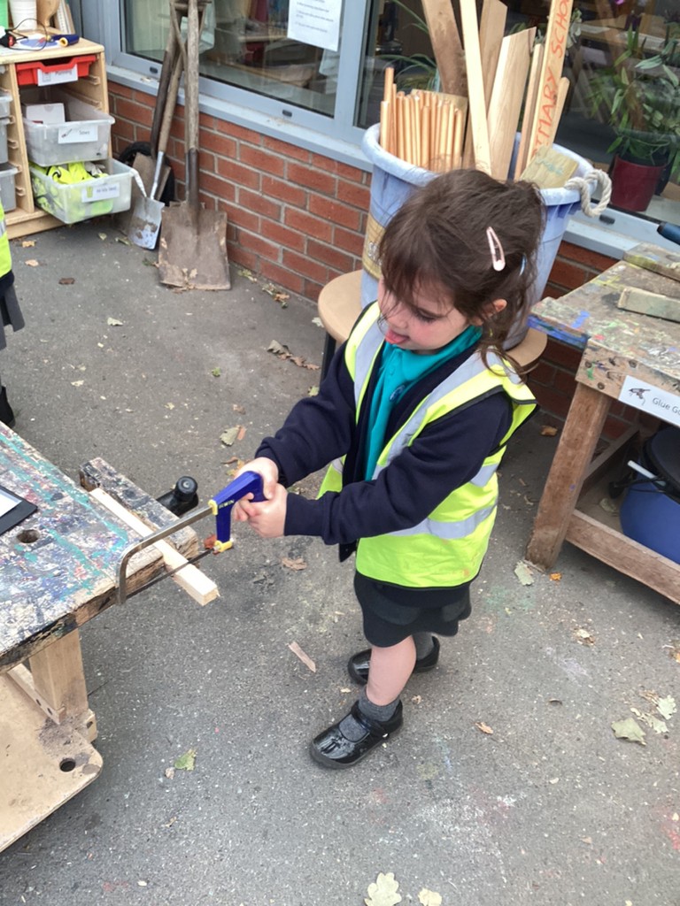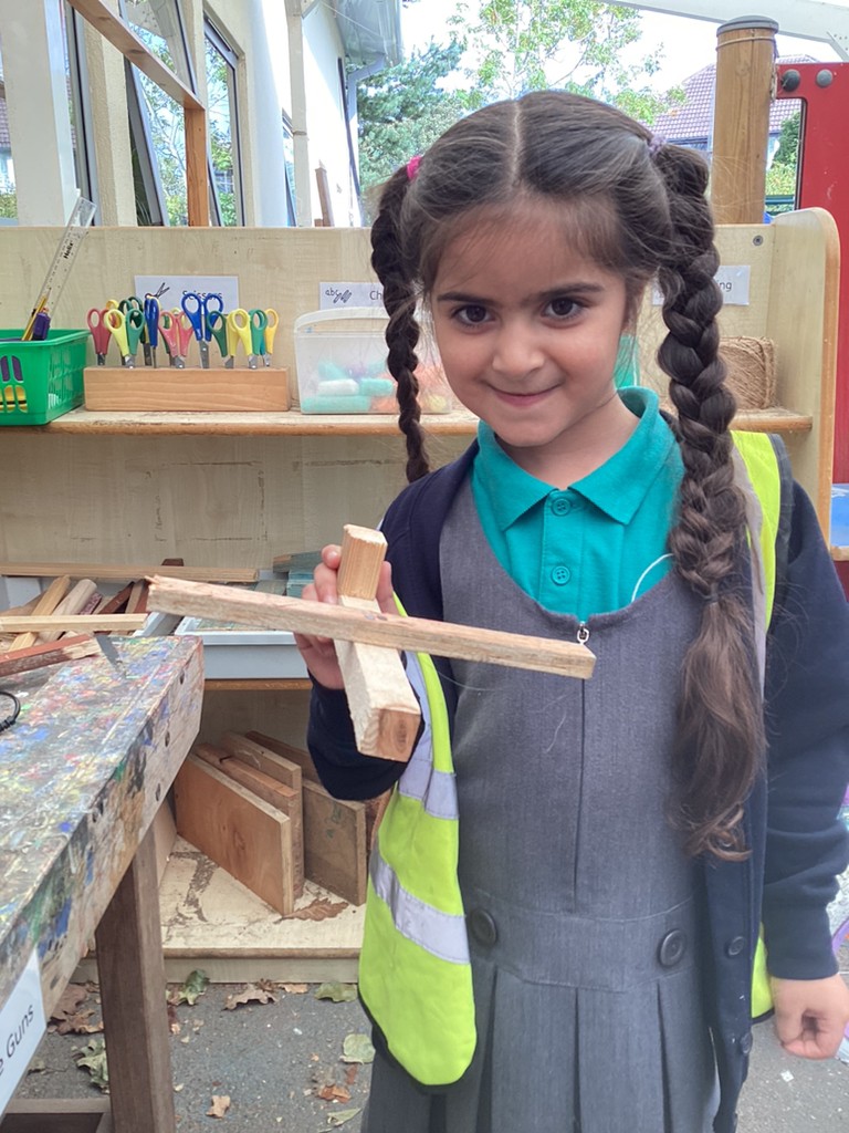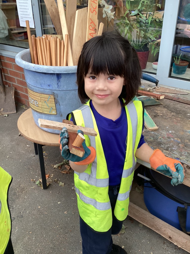 This week, we have continued to give all the children an opportunity to use our DT construction area to build with an adult. This has proved very popular with many children itching to get another go at sawing, hammering and gluing to make another masterpiece (prepare to accommodate lots of wooden delights in your homes, folks!). We’ve had lots of success and many proud children taking home their cars and aeroplanes!