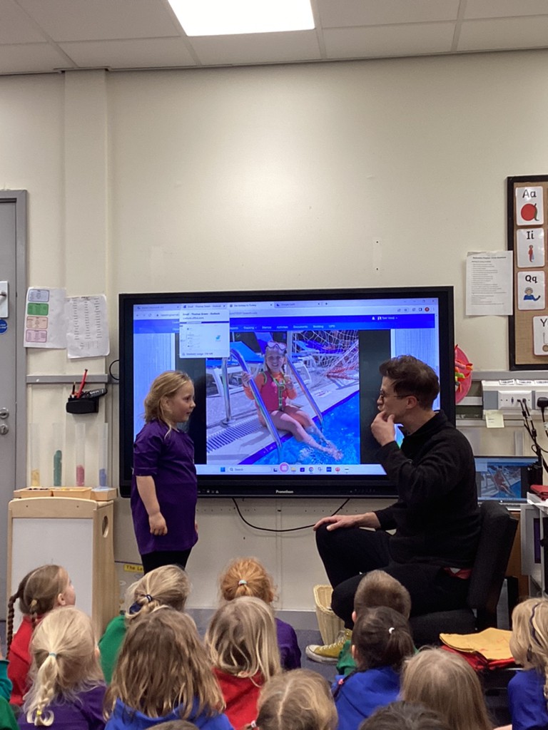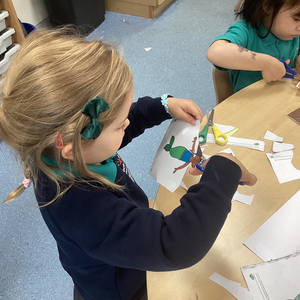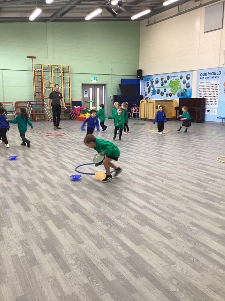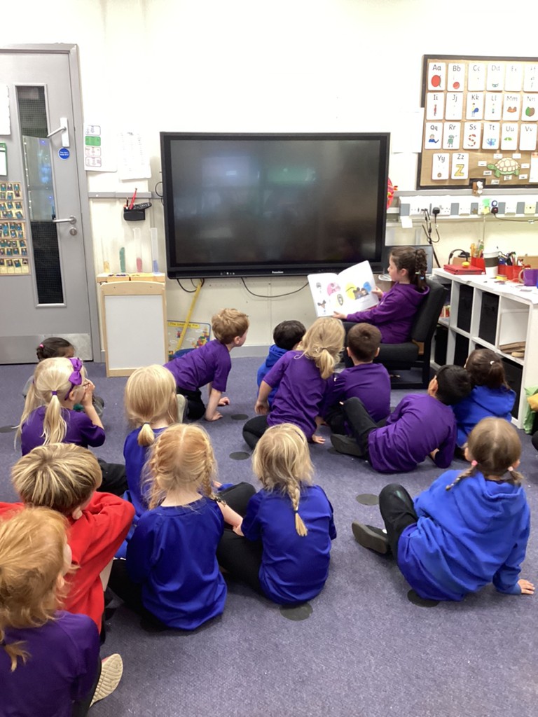 Wednesday morning saw all the children take part in a P.E. session, getting everyone moving in a variety of ways and having fun with all manner of games. On Wednesday afternoon, the children enjoyed another visit from their Class 6 reading buddies, where they shared a story and talked about it with the older children.