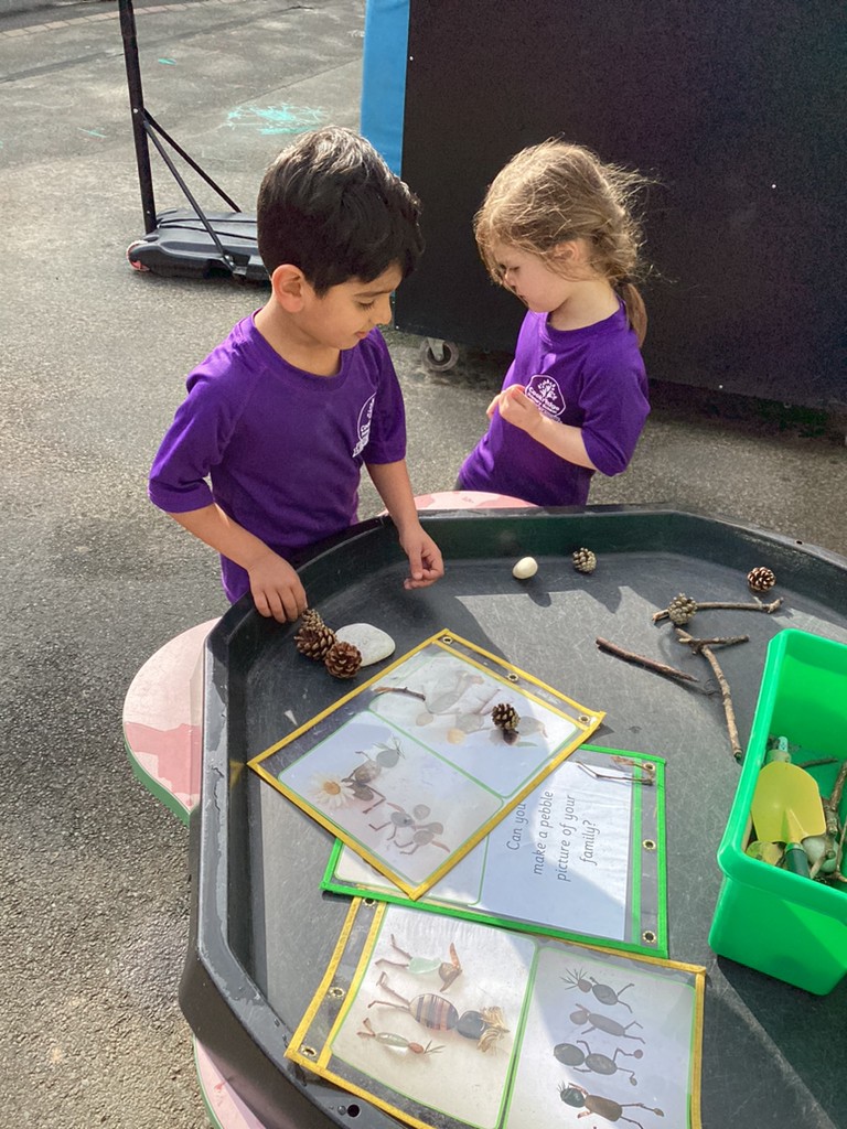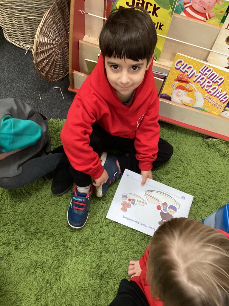 In Maths this week, the children have loved exploring concepts of measure and comparison. In these sessions, they have compared objects by size, by weight and by capacity with lots of practical engagement in finding things to compare inside and out. Again, these concepts are easy to explore at home, with children encouraged to use vocabulary of comparison (bigger, smaller, longer, shorter, heavier, lighter etc.).