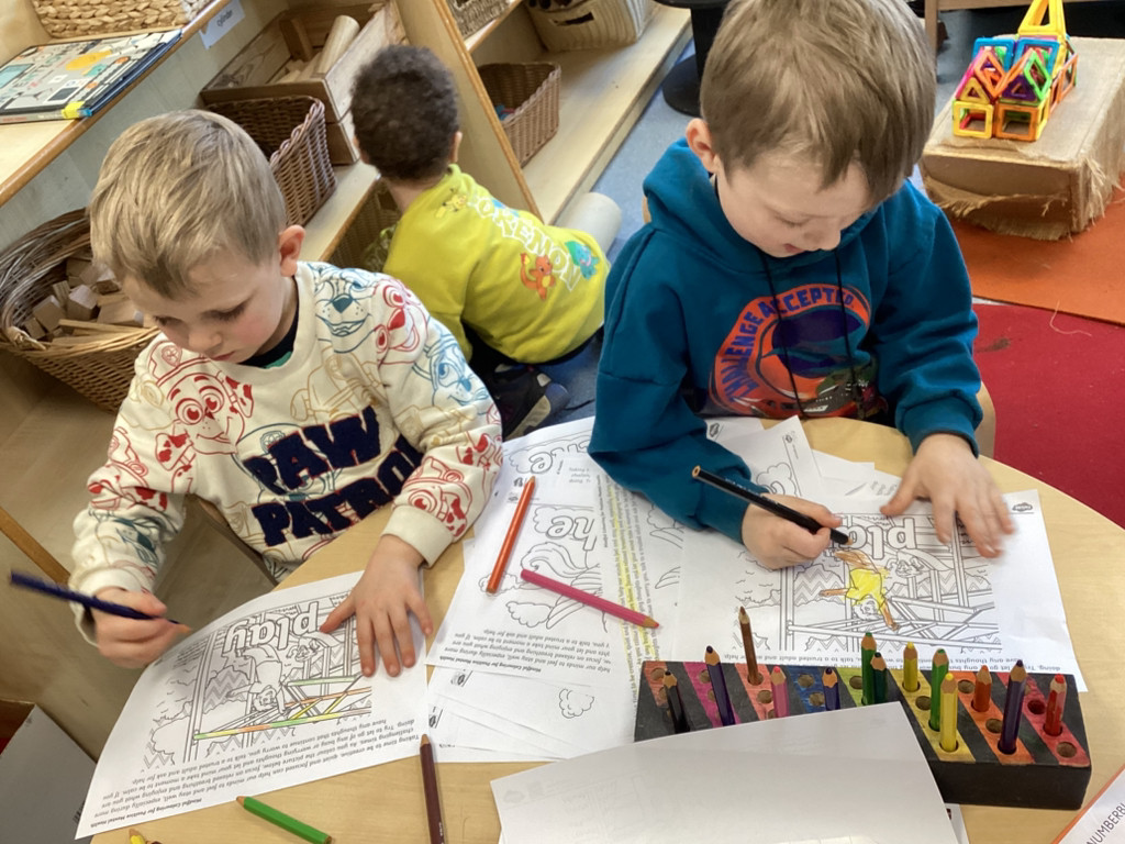 We’ve had some lovely sunshine this week and as such our outdoor space was very popular, with lots of fun had building and navigating obstacle courses; basketball and catching games; writing in the shed; and as ever there has been lots of singing and dancing on the music stage.
