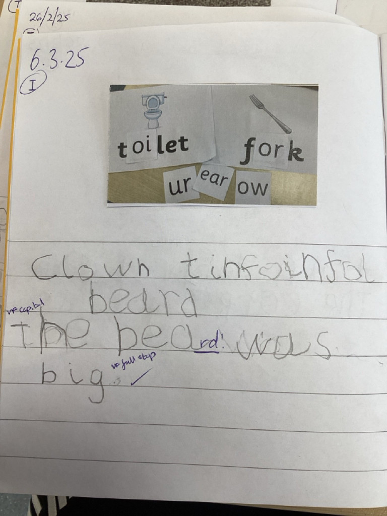 Phonics this week has introduced the new phonemes ‘oi’ (as in coin) ‘ow’ (as in clown) and ‘ear’ (as in, well – ear!). The children have engaged brilliantly in this new learning and are applying their skills to read and write with increasing confidence and independence.