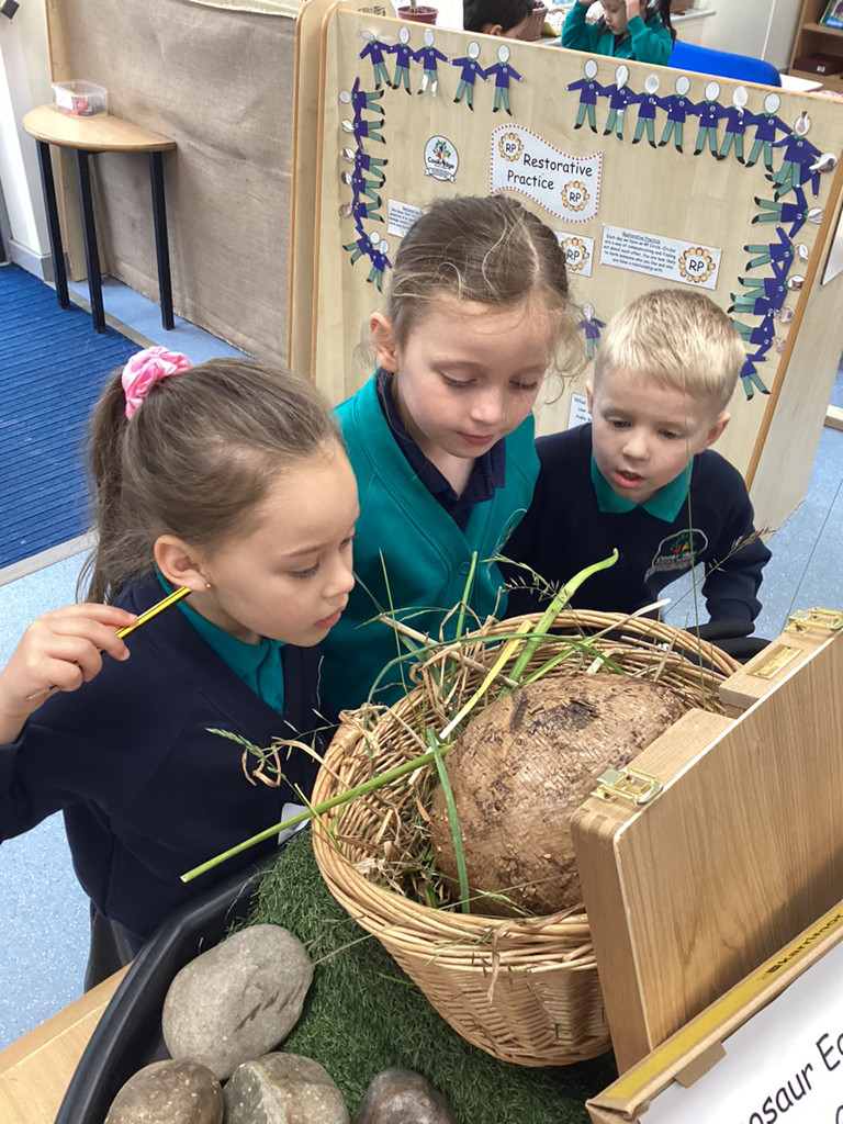 We have discussed what we already know about Dinosaurs and what we would like to know more about. The children have shared their favourite dinosaurs and we’ve begun discussing the habitats and diets of different dinosaurs. The children have taken advantage of lots of dino-themed activities around Reception this week, with dinosaur artworks, puzzles, egg-sharing and commerce in our dino-toy shop!
