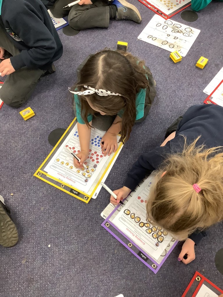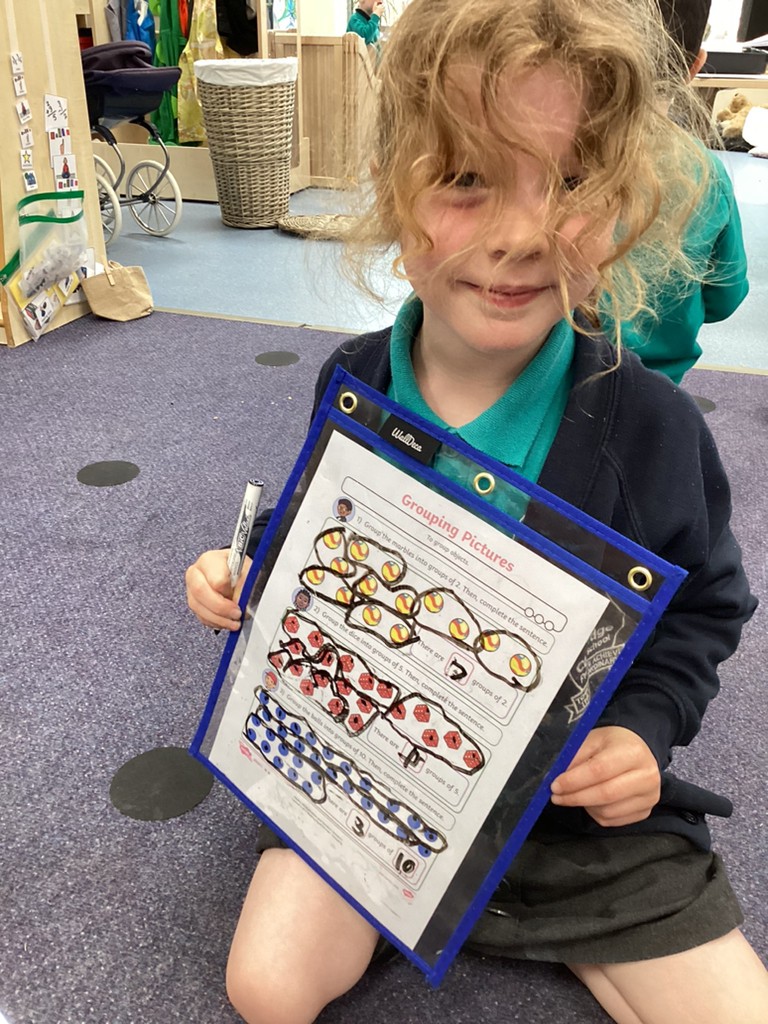 In Maths this week, we have been learning to group and share sets of objects evenly. The children were given objects to share fairly and learned how to systematically distribute them in turn until all objects were placed. There was also opportunity to practice grouping objects and describing how many equal groups could be made.