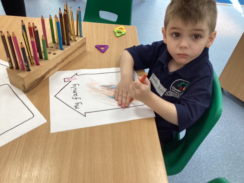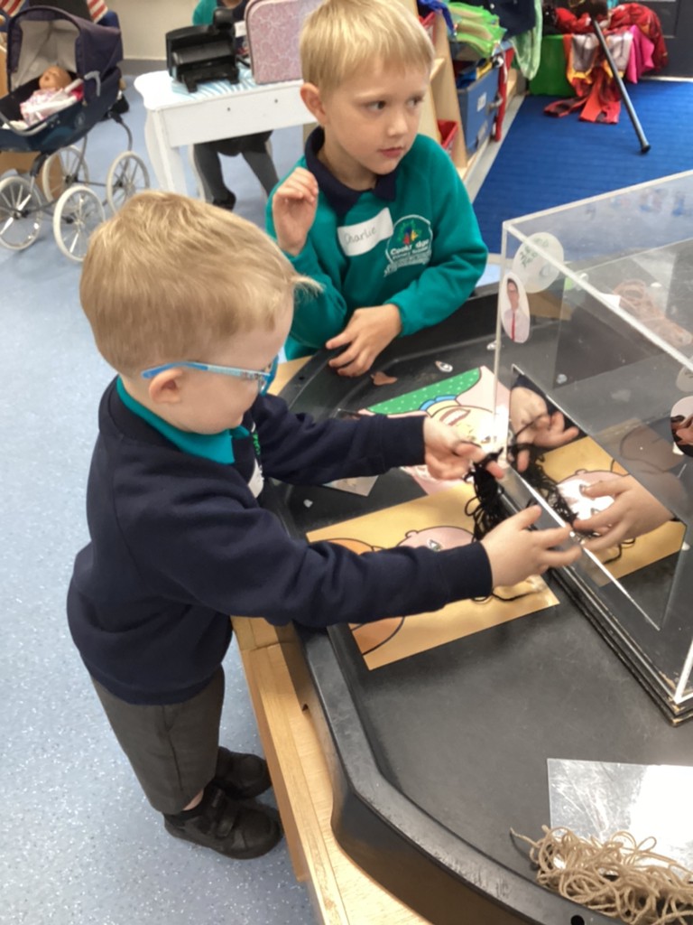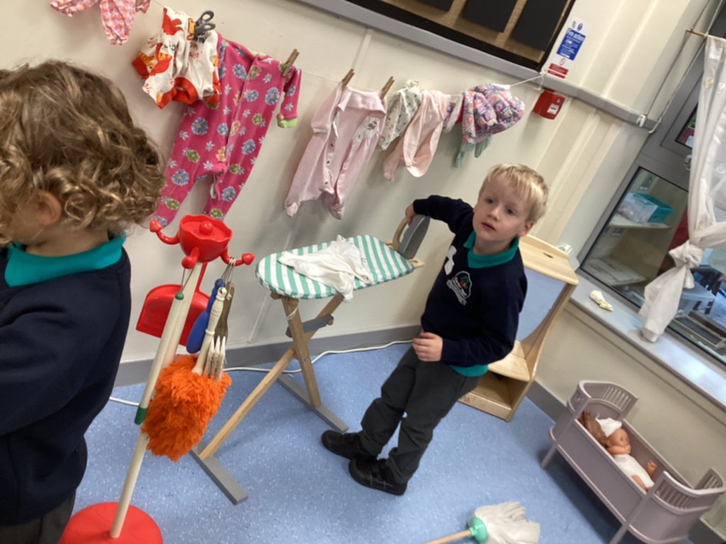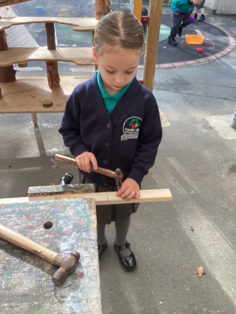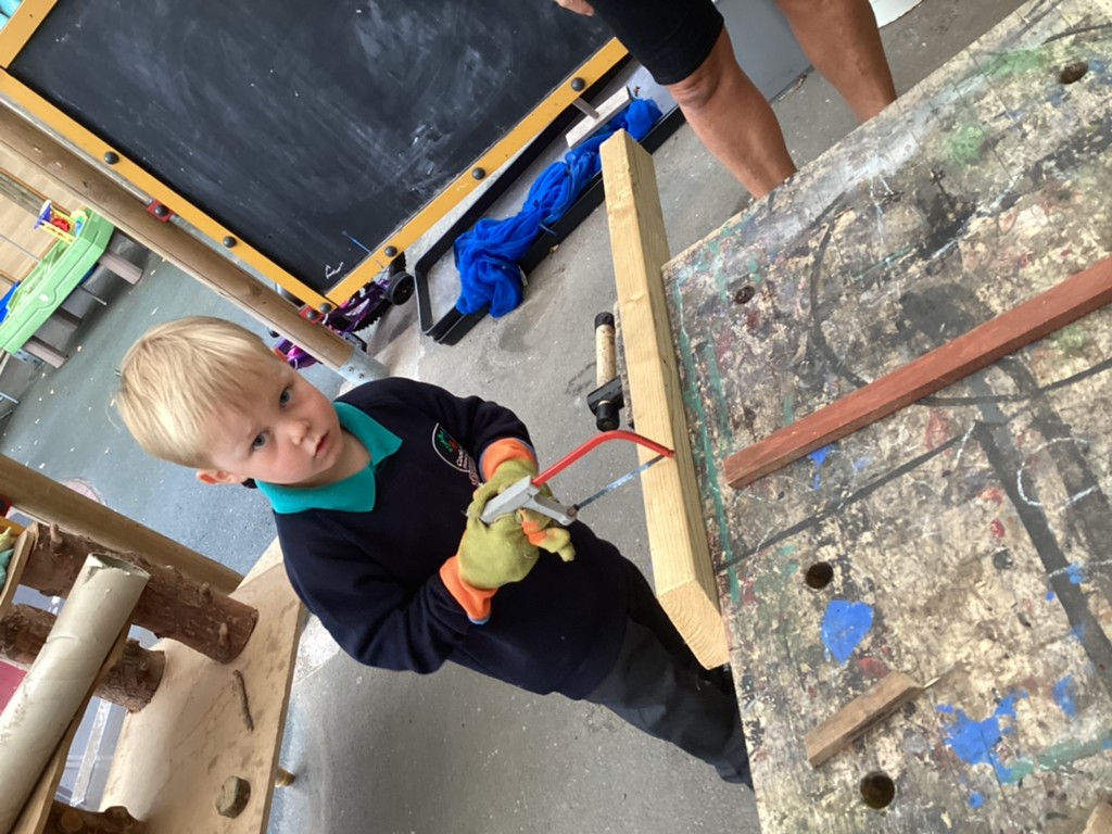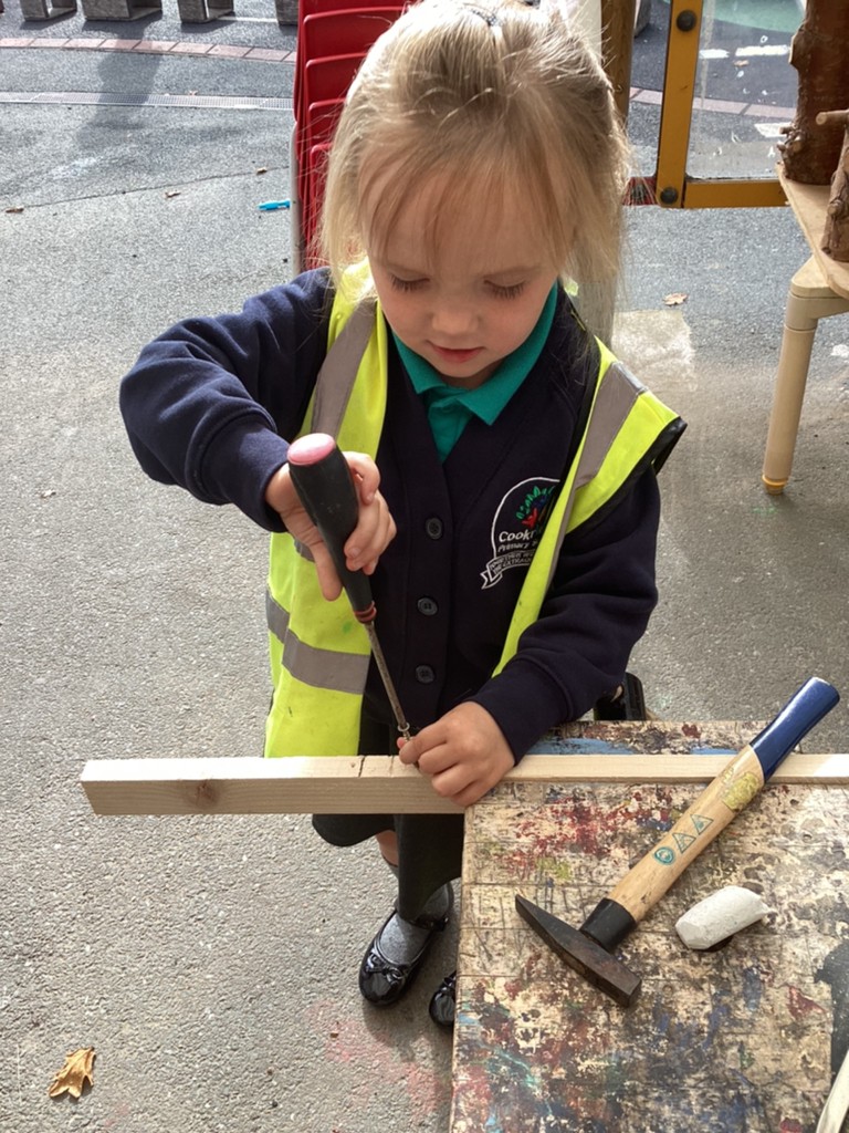 All areas of the classroom have been well used, with children having a go at making their own faces from a selection of features; drawing the people and pets that live in their home and singing their favourite songs on the stage! Our D.T. construction area has been particularly popular with many children choosing to learn safe techniques to cut and join wood to make models of their own.