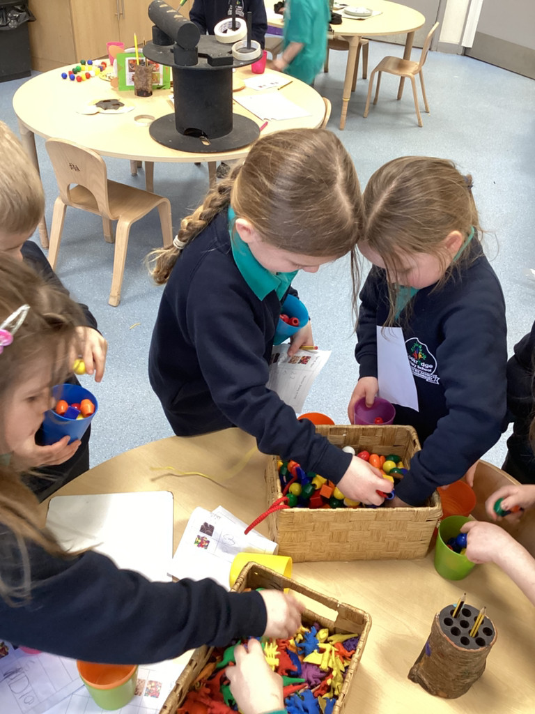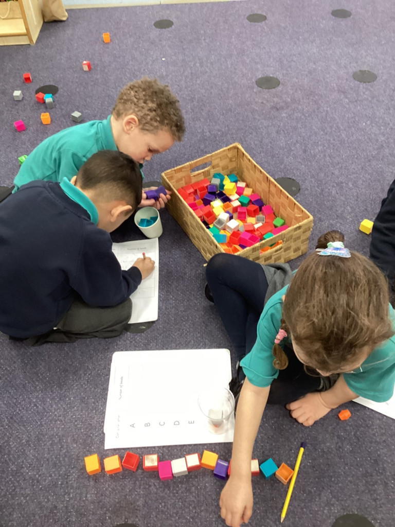 In Maths we have been looking at shape, space and measure. We have been exploring the concept of capacity and how it explains the space within a container. To investigate this concept the children have been filling different containers with the same object and also filling the same containers with different sized objects. The children have also been practising the use of balance scales to explore concepts of weight and mass.
