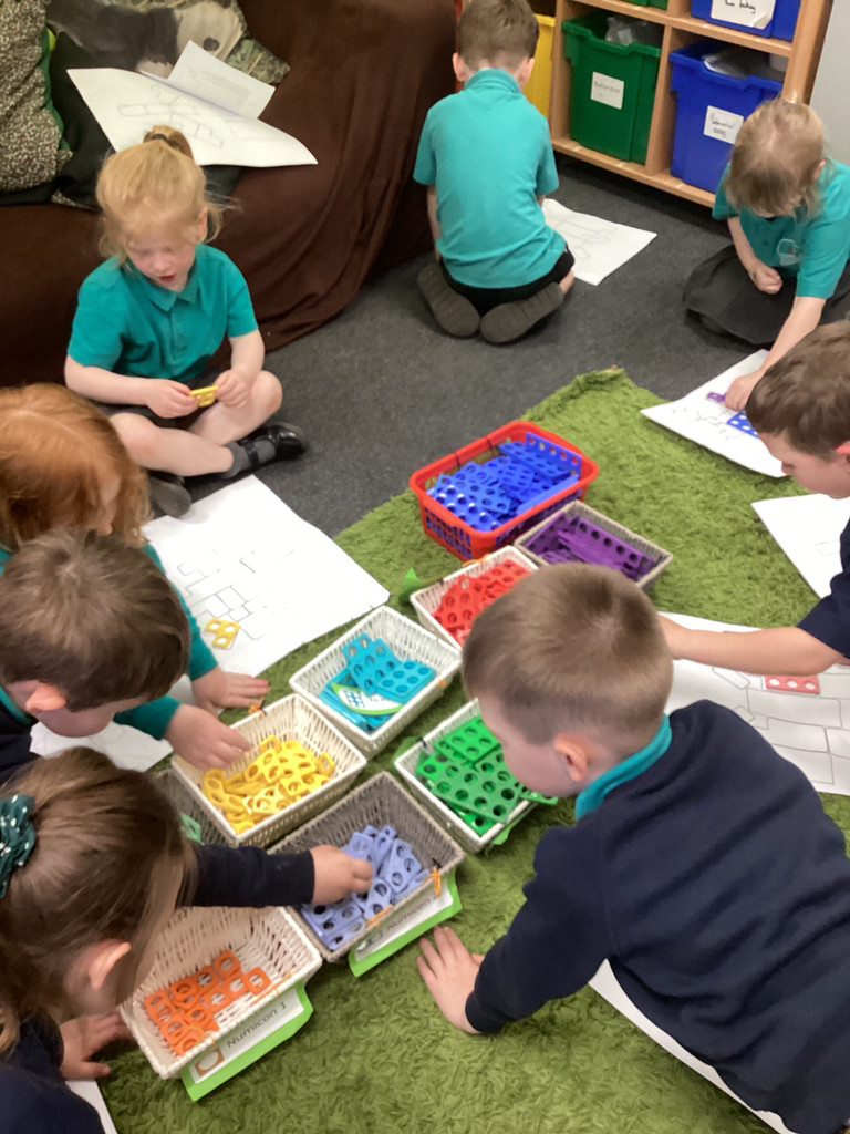 Maths sessions this week had us exploring flat 2D shapes. The children had opportunities to handle and discuss the properties of shapes and explore how to manipulate shapes for different effects. Many were perplexed by tangram puzzles, where they were challenged to fit shapes within a larger shape exactly. We were very impressed by the perseverance of the children in taking the time to finish their tangrams!