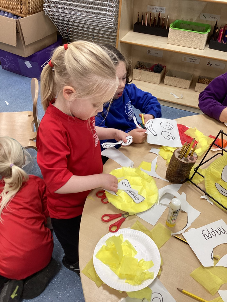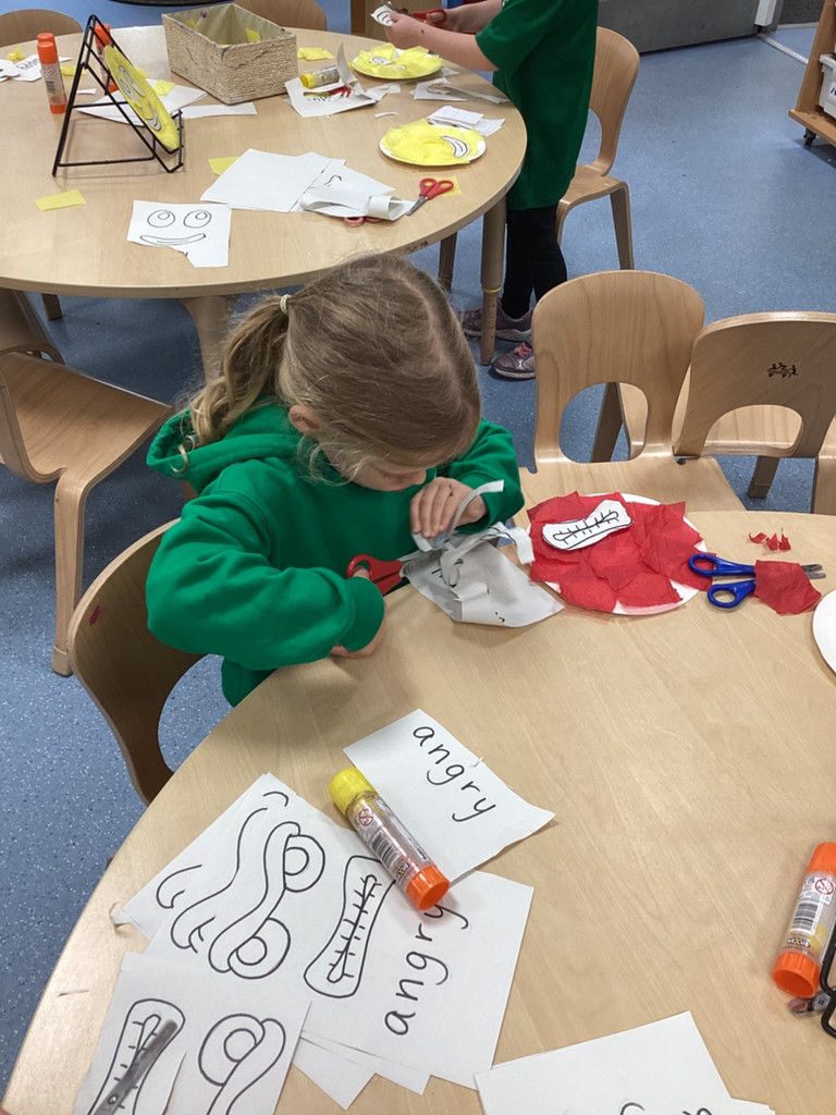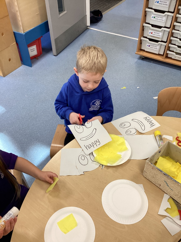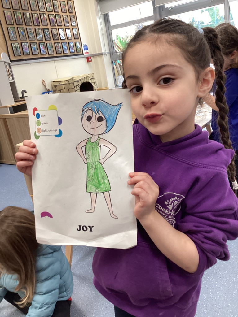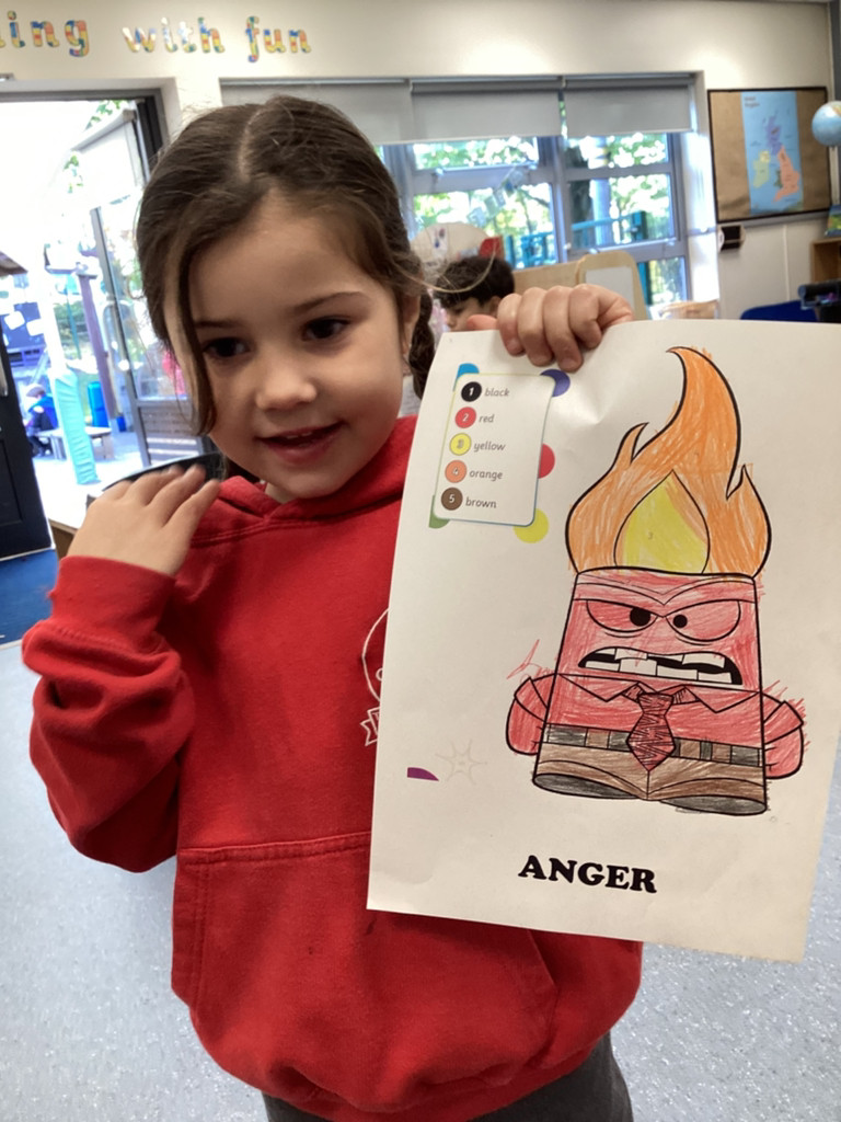 We’ve been enjoying our topic of ‘All About Me’ and as we’ve been thinking about mental health this week we spent time thinking about our emotions. The children have thought about different feelings and how we can recognise in ourselves and others. The children discussed different scenarios and how they might feel, using some new vocabulary such as envious, embarrassed and anxious. Lots of children enjoyed cutting and sticking facial features to represent different emotions on a paper plate face. Many others took the challenge to colour in the different emotions from the Pixar film ‘Inside Out’ using number cues to colour each section appropriately.