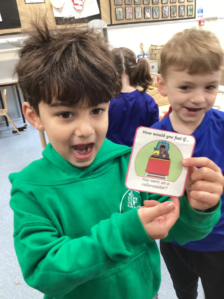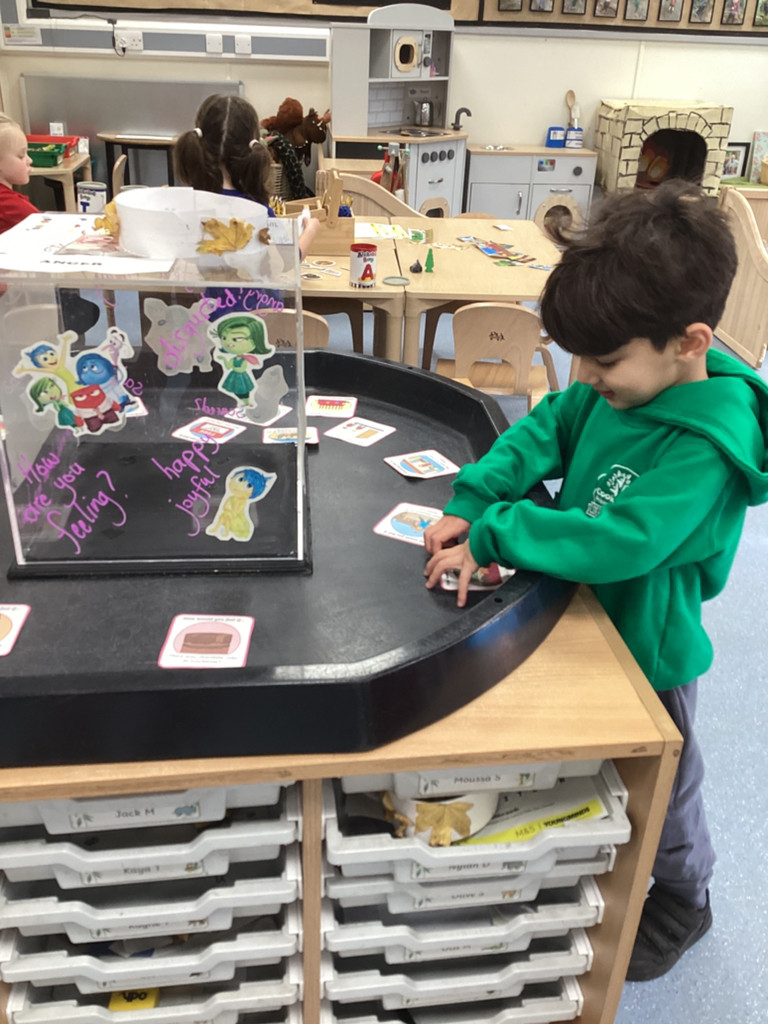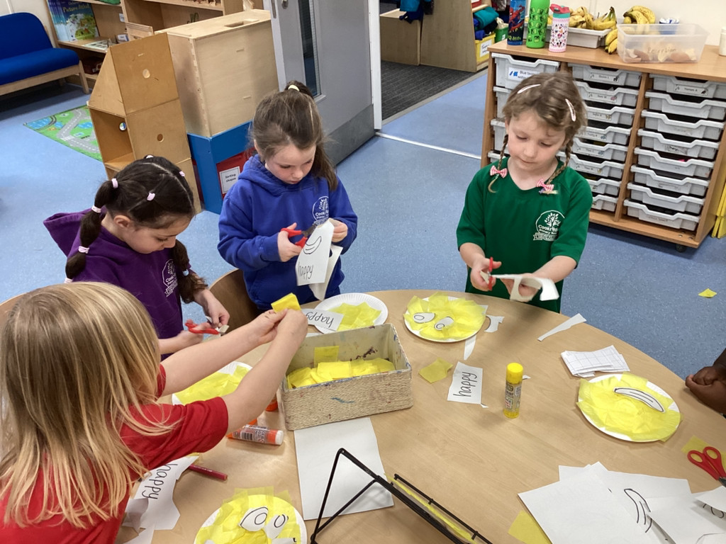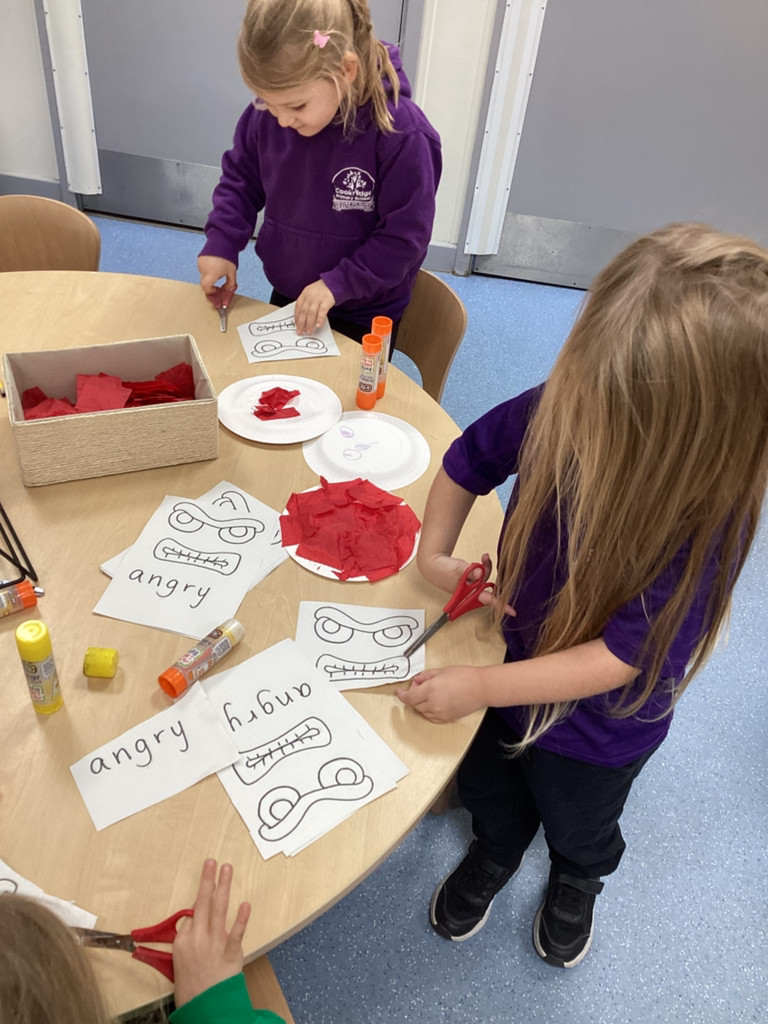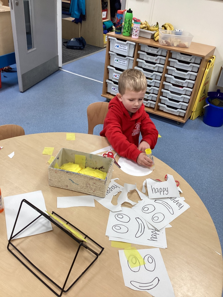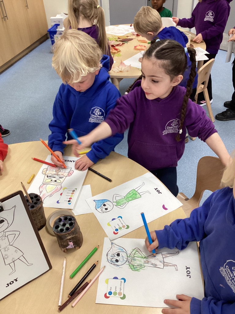 We’ve been enjoying our topic of ‘All About Me’ and as we’ve been thinking about mental health this week we spent time thinking about our emotions. The children have thought about different feelings and how we can recognise in ourselves and others. The children discussed different scenarios and how they might feel, using some new vocabulary such as envious, embarrassed and anxious. Lots of children enjoyed cutting and sticking facial features to represent different emotions on a paper plate face. Many others took the challenge to colour in the different emotions from the Pixar film ‘Inside Out’ using number cues to colour each section appropriately.